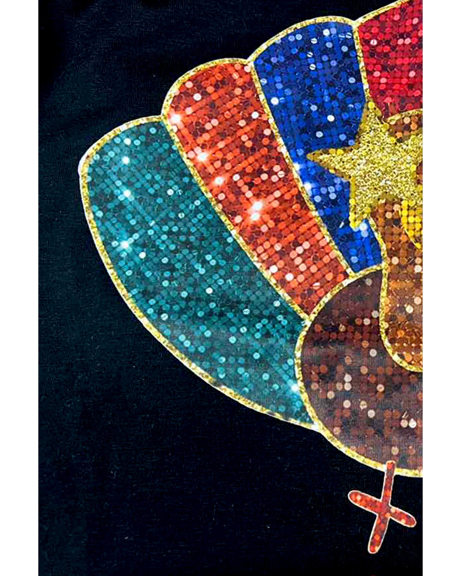 This festive T-shirt features a glitter turkey graphic, making it perfect for Thanksgiving celebrations. Designed with a classic crew neck and short sleeves, it offers a comfortable and relaxed fit suitable for various casual occasions. The shirt is crafted from a blend of polyester, cotton, and elastane, ensuring durability and comfort.