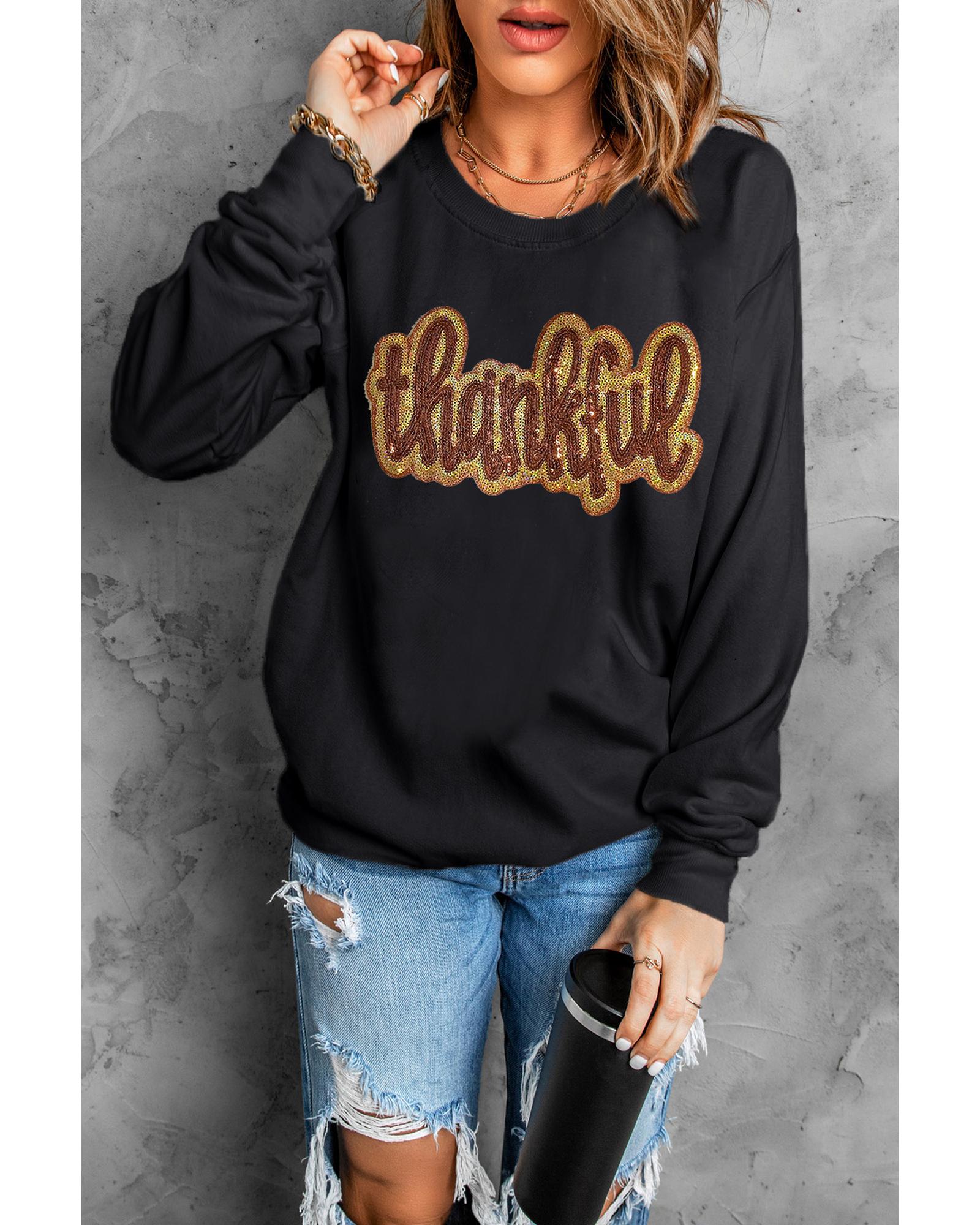 Black Glittering thankful Graphic Drop Shoulder Sweatshirt – XL