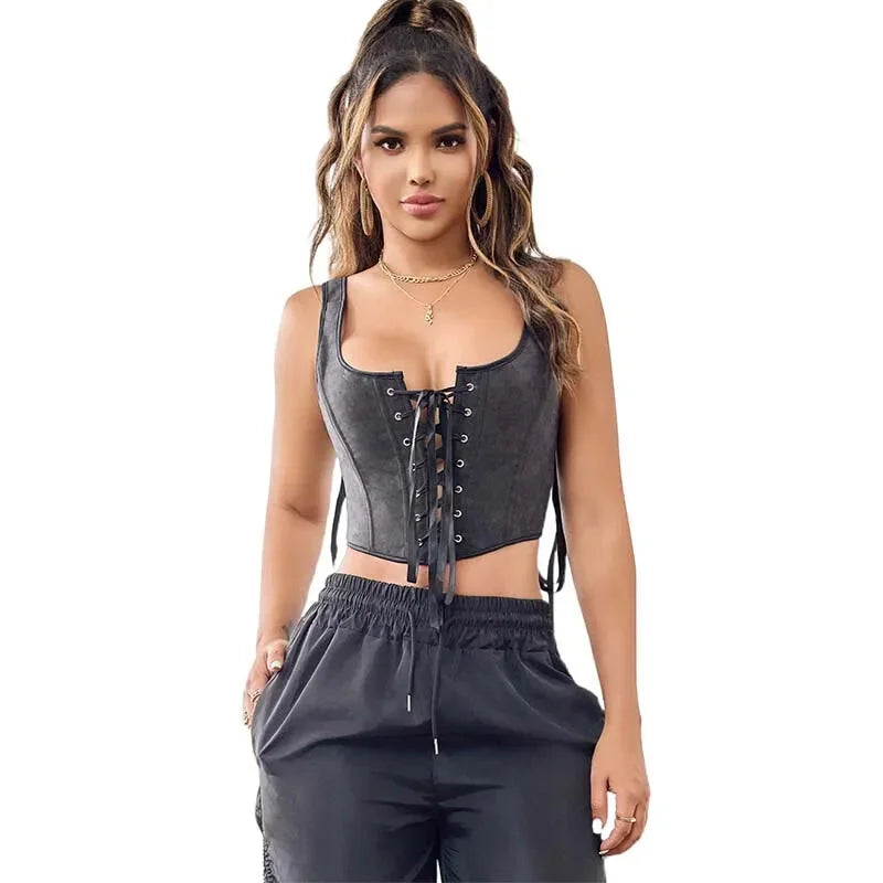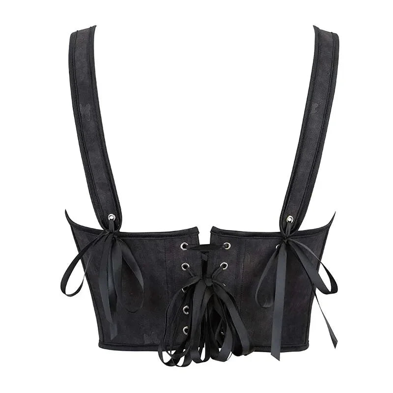 This black gothic slimming vest corset features a butterfly detail at the back and a backless, boned design with lace-up closure, combining a stylish and alluring look suitable for various occasions such as parties, dates, and dancing. Crafted with a knit weaving technique, it offers support and a comfortable fit while enhancing your silhouette.