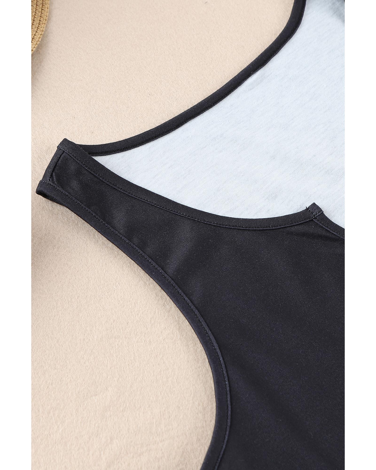 Black Gradient Leopard Split Neck Tank Top – M