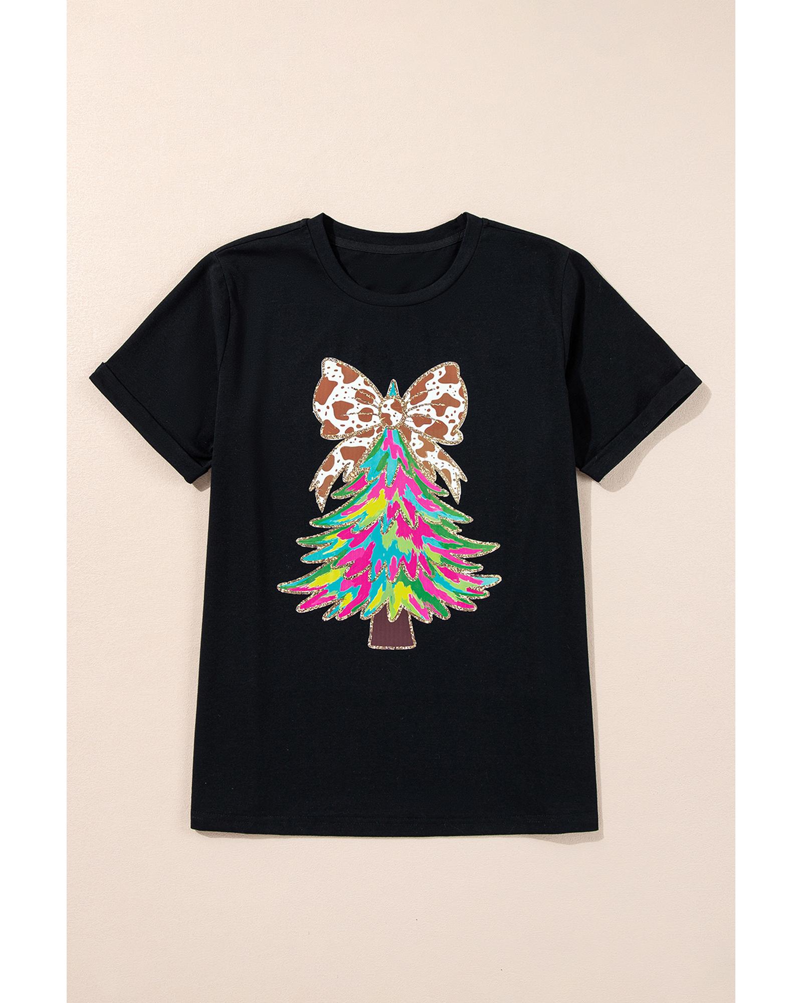 Black Heat Transfer Printing Christmas Tree Bowknot T-Shirt – M