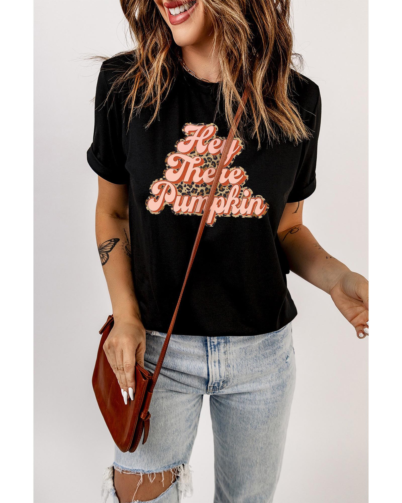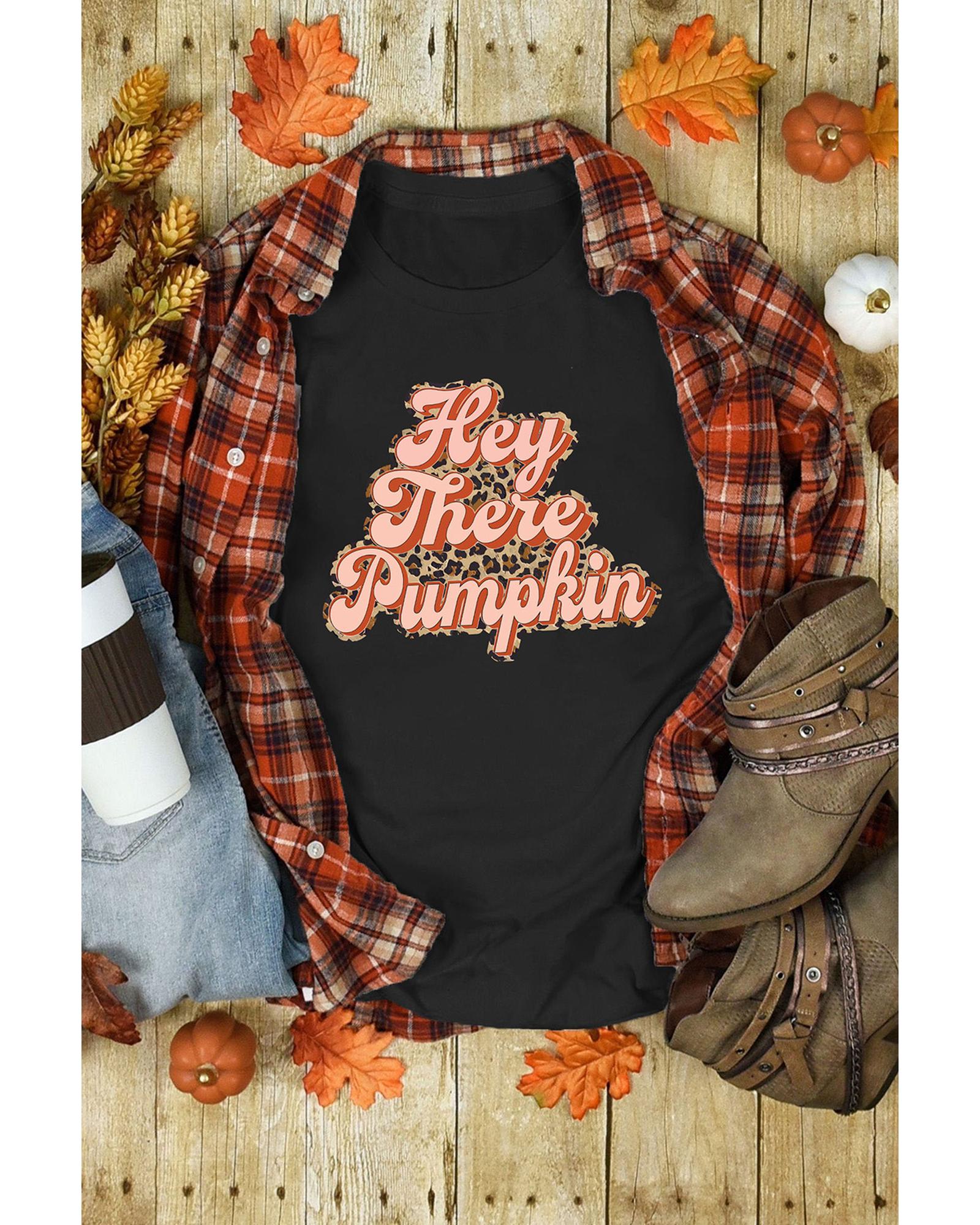 Black Hey There Pumpkin Leopard Graphic Tee – XL