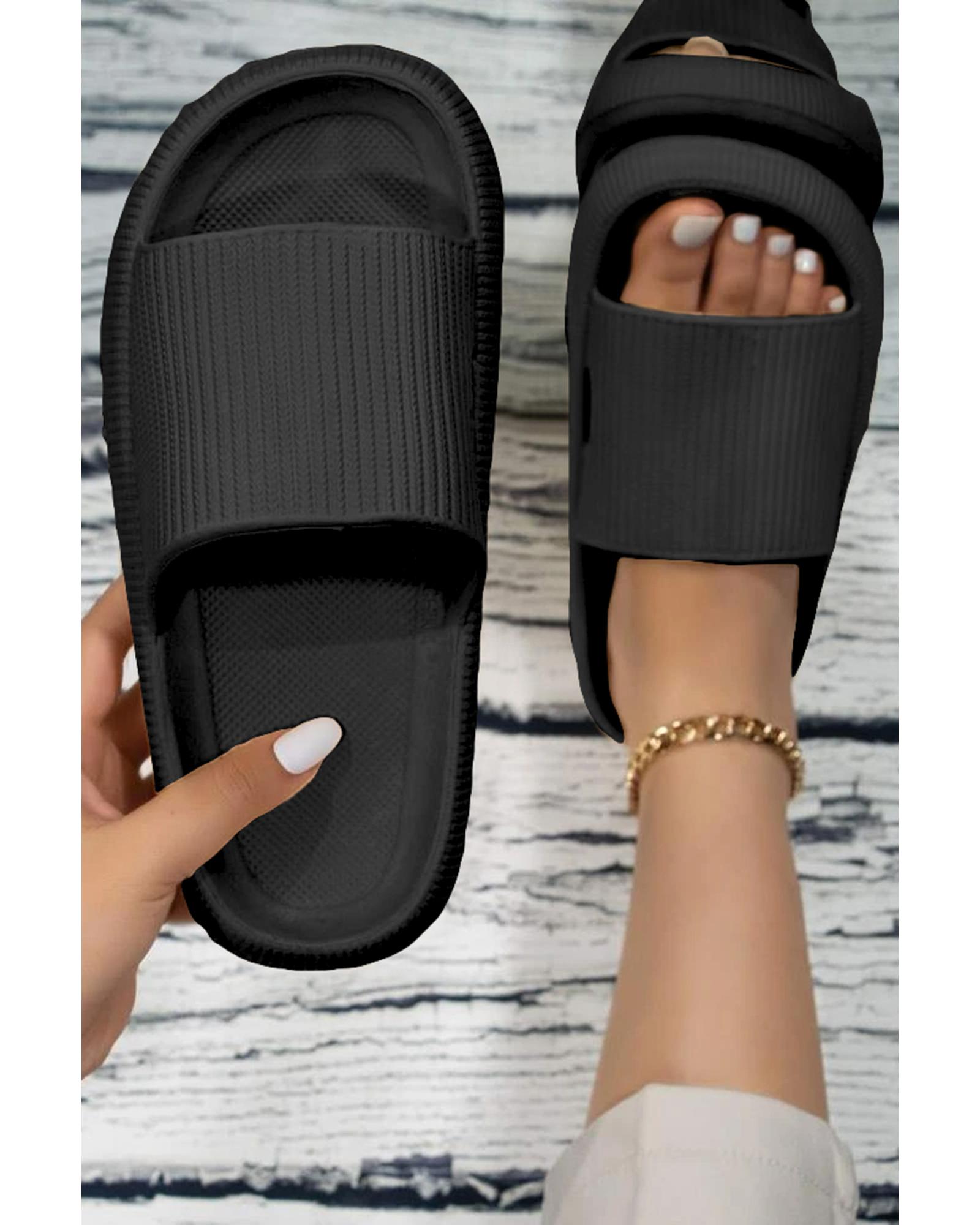 Black Hollow-out Thick Soled Slip On Slippers – 39 EU