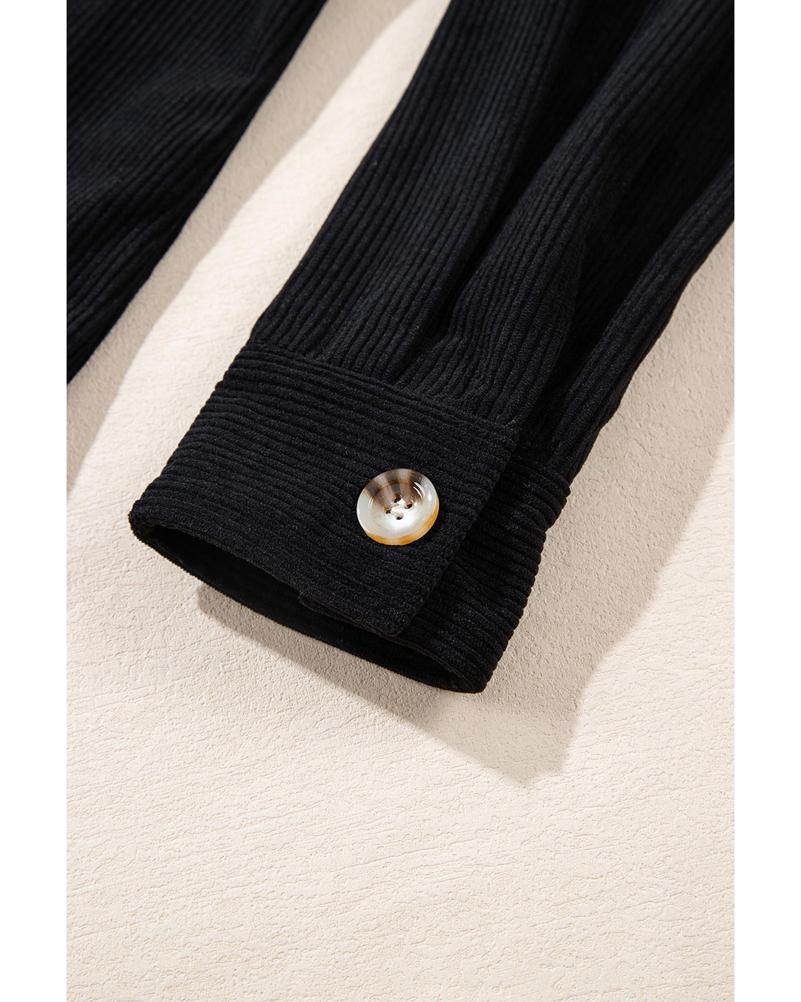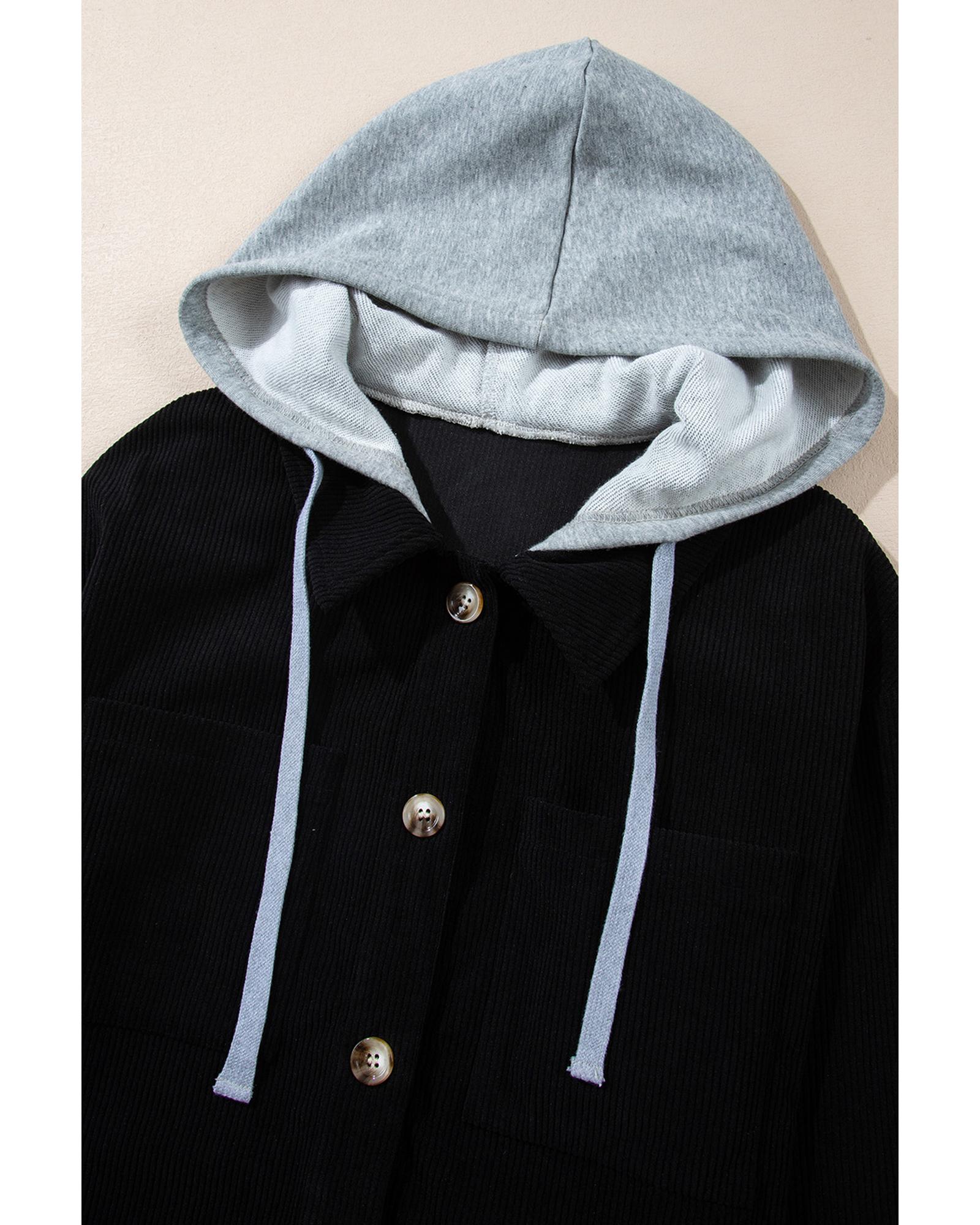 Black Hooded Drawstring Pockets Corduroy Shacket – L