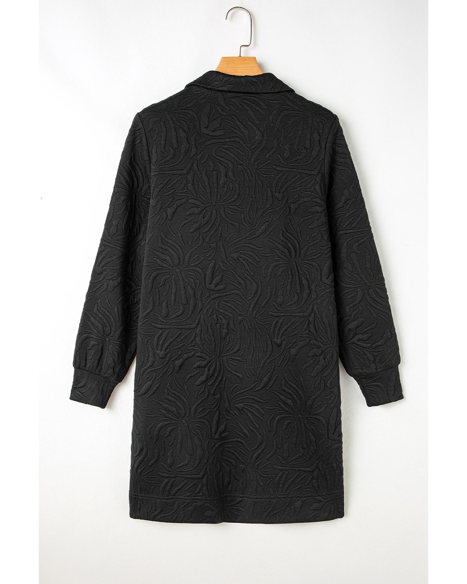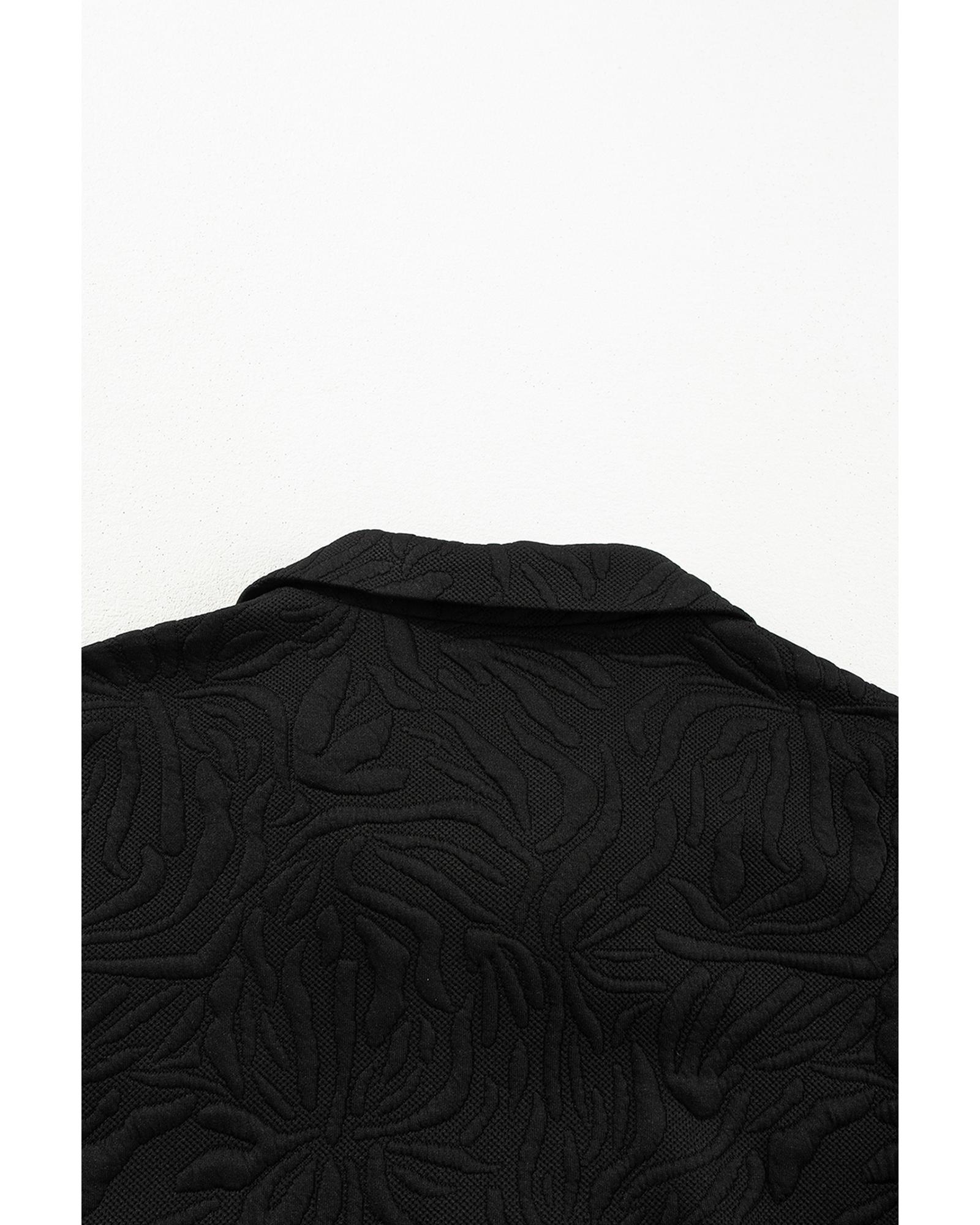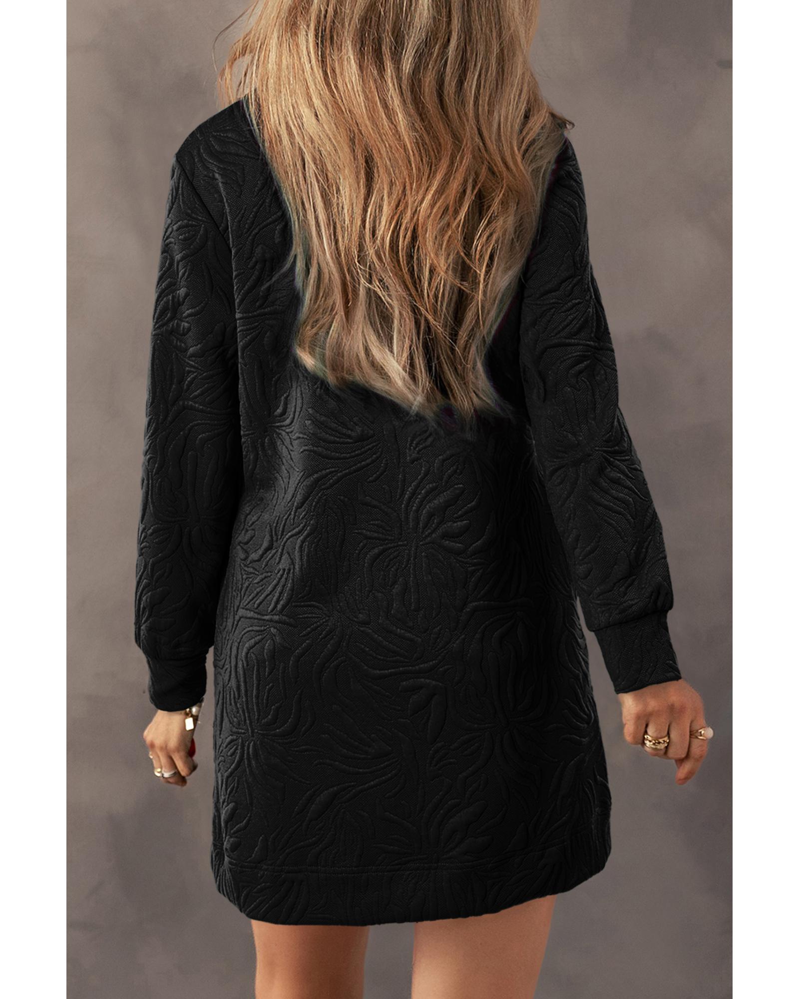 Black Jacquard Textured Quarter Zipper Shift Mini Dress – S