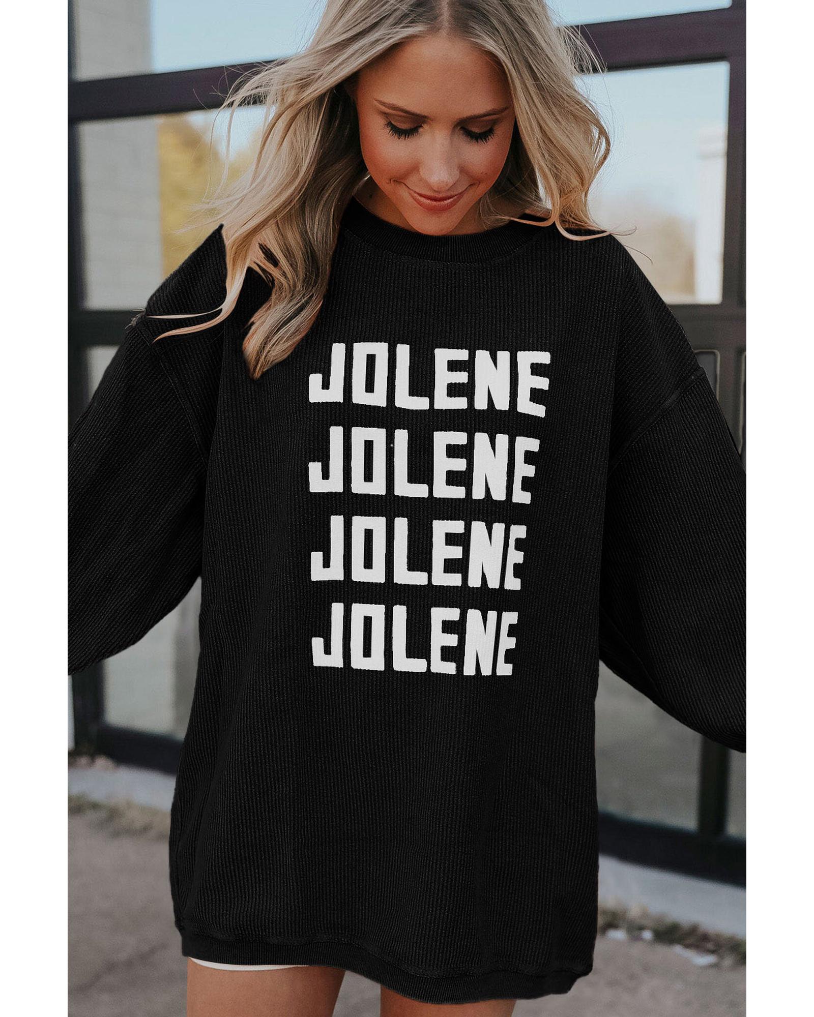 Black JOLENE Ribbed Corded Oversized Sweatshirt – L