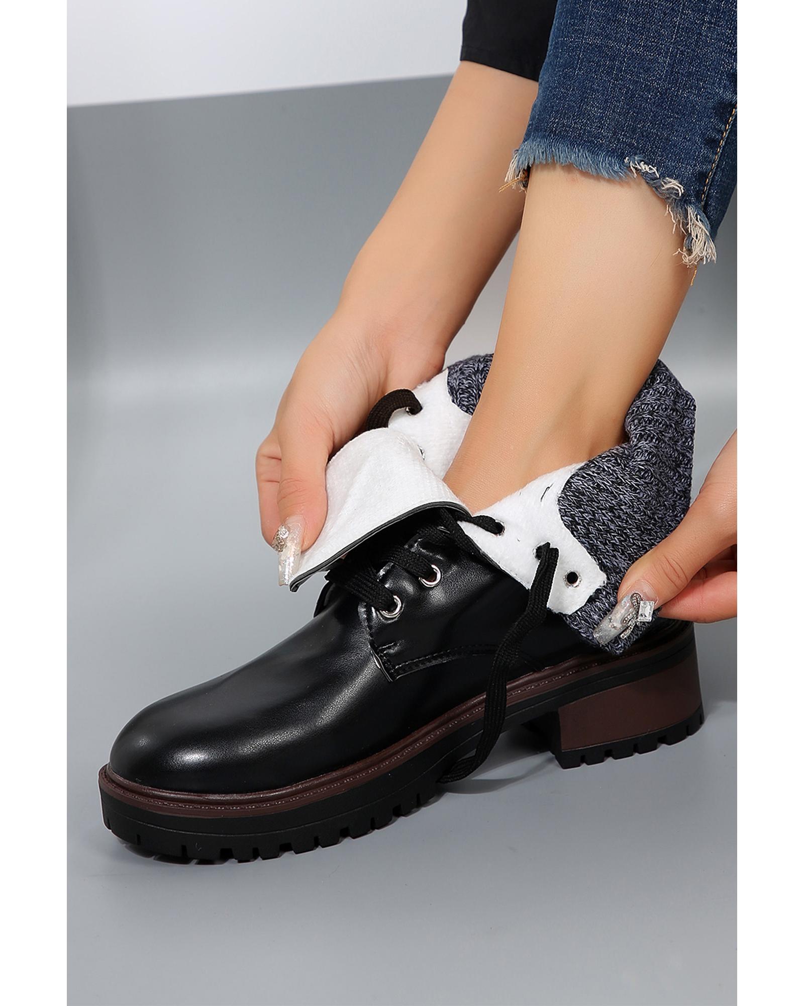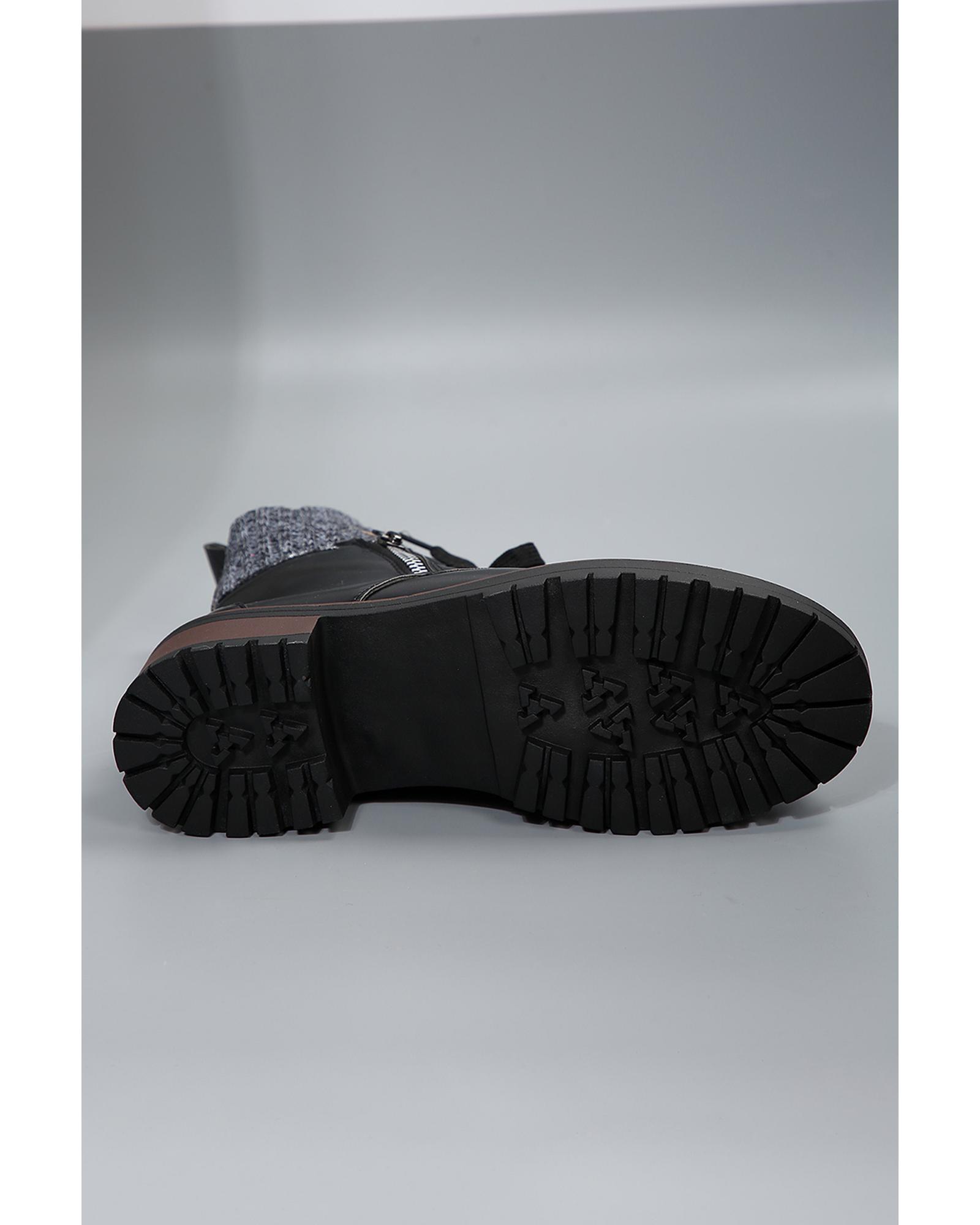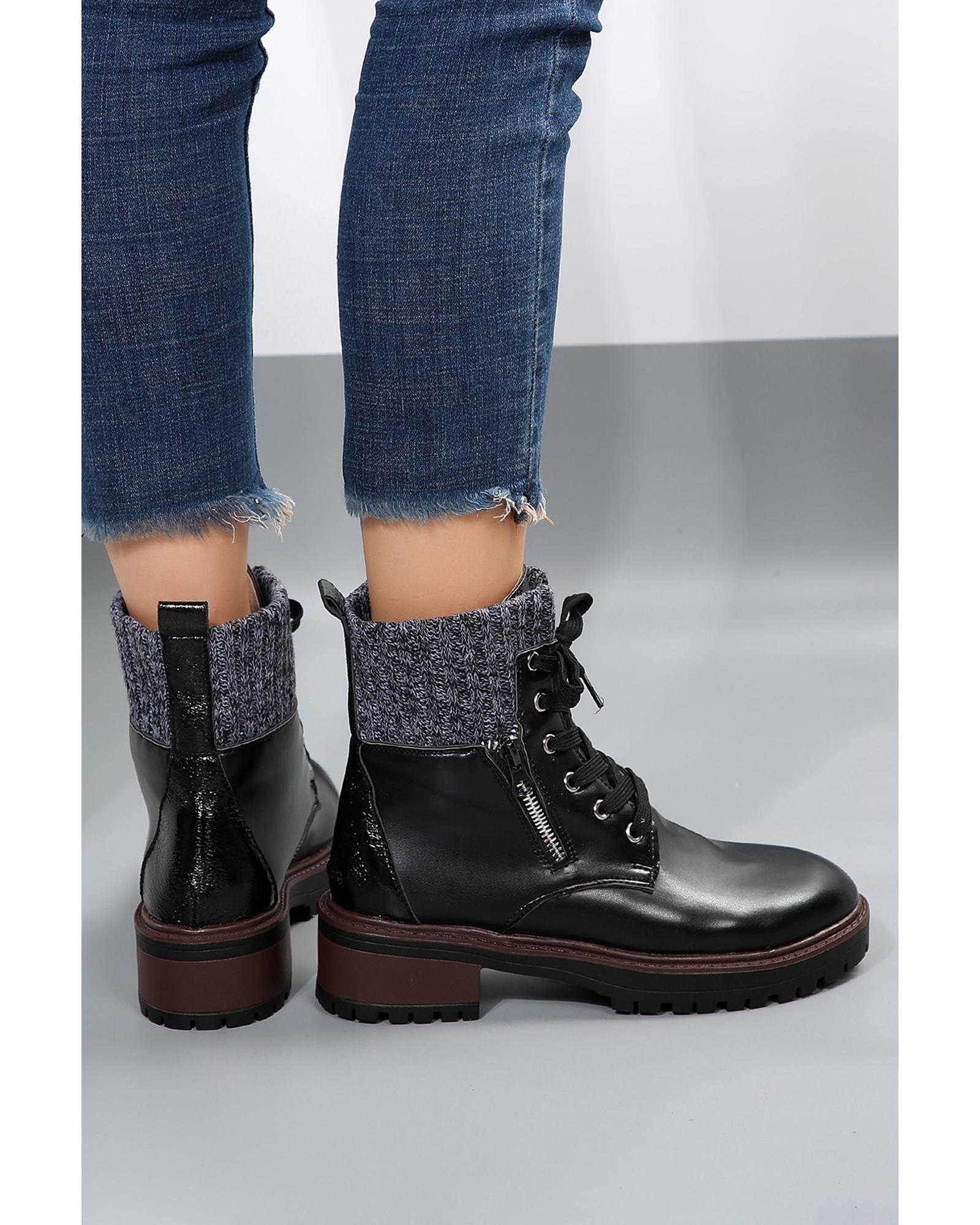 These black knitted ankle boots feature a stylish lace-up design with a comfortable heeled sole. Designed with a trendy fitted look, they are suitable for various outfits and occasions, offering both style and comfort.