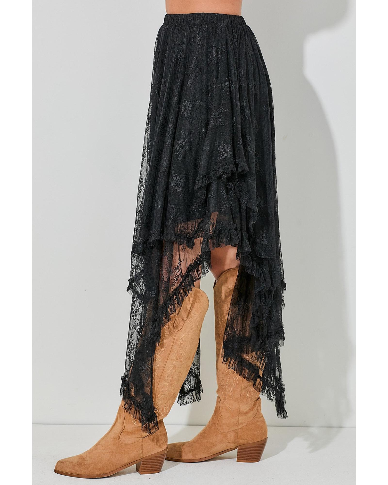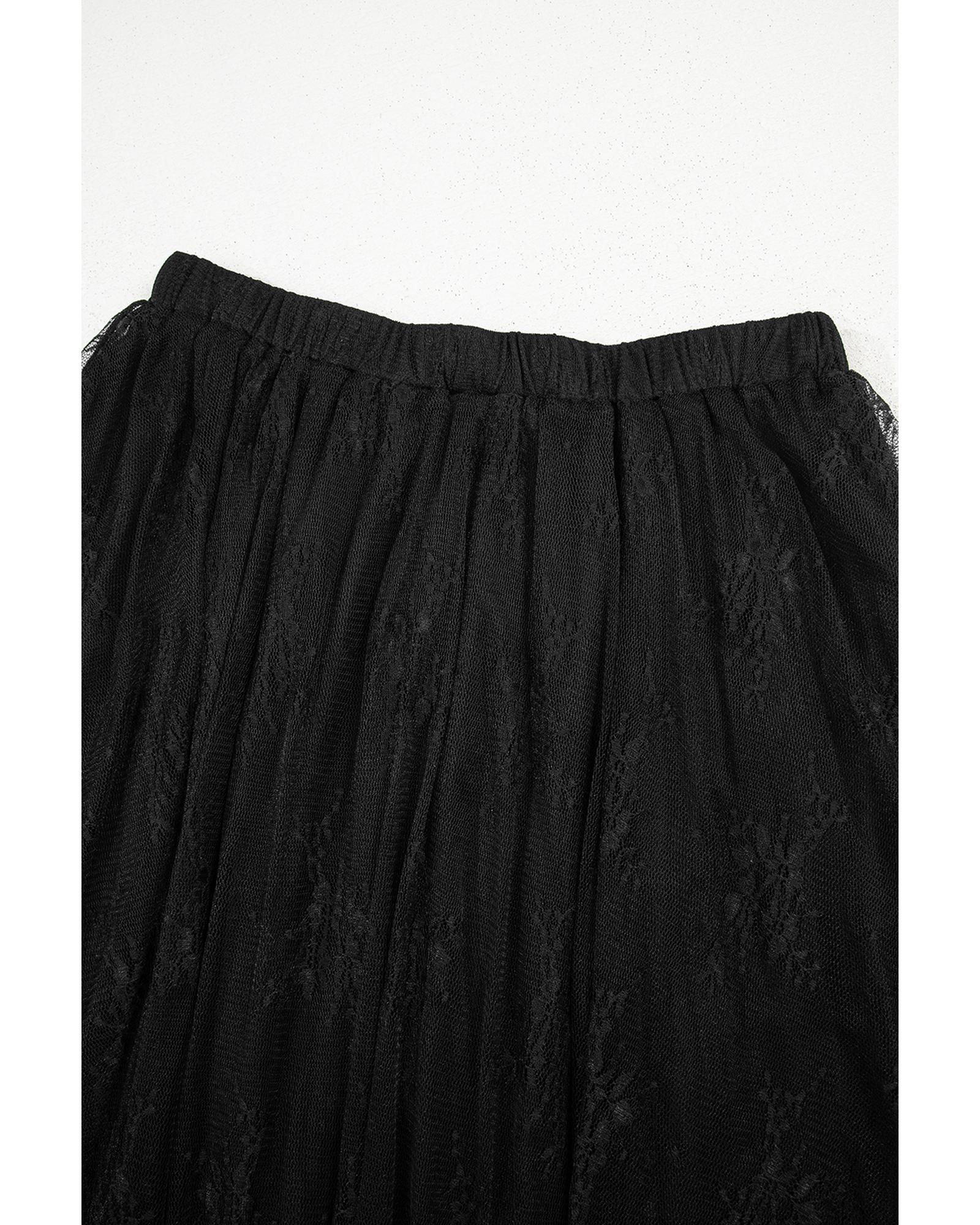 Black Lace Cascading Tiered High Waist Maxi Skirt – XL