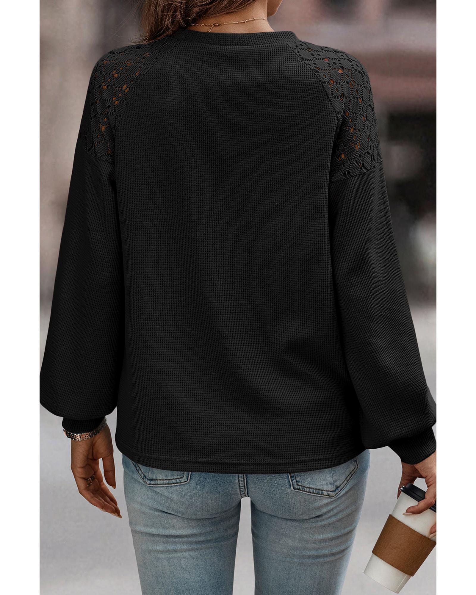 Black Lace Long Sleeve Textured Pullover – L