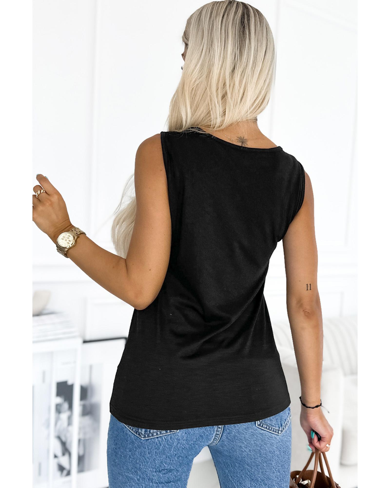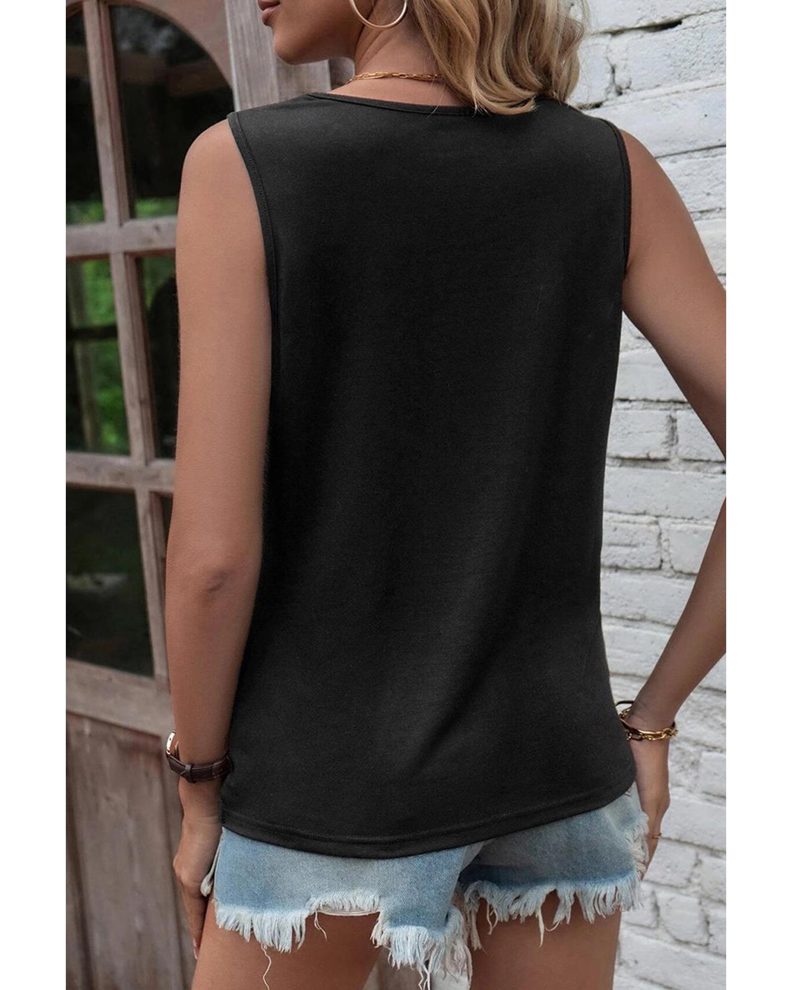 Black Ruffled Shoulder V Neck Shift Tank Top - M