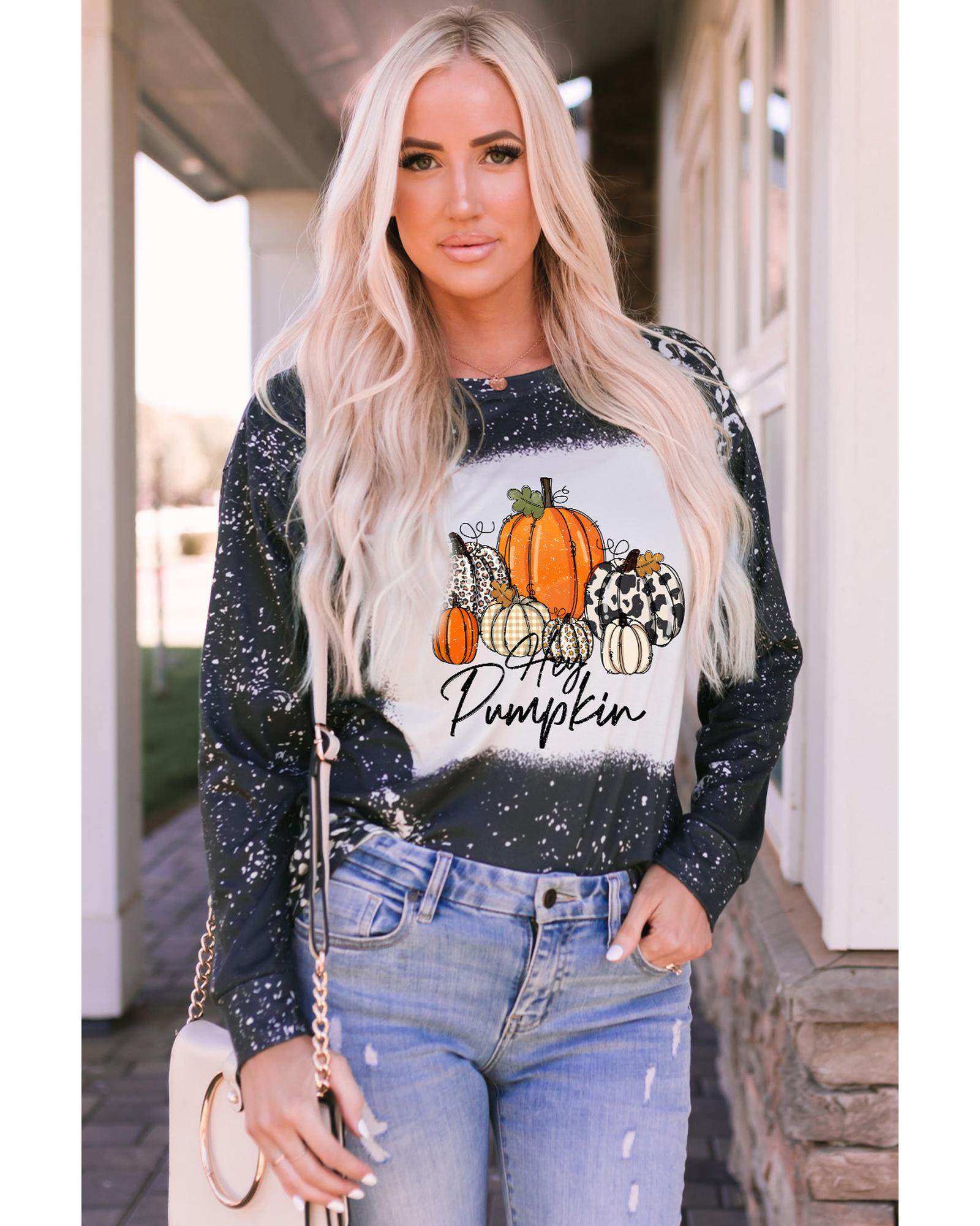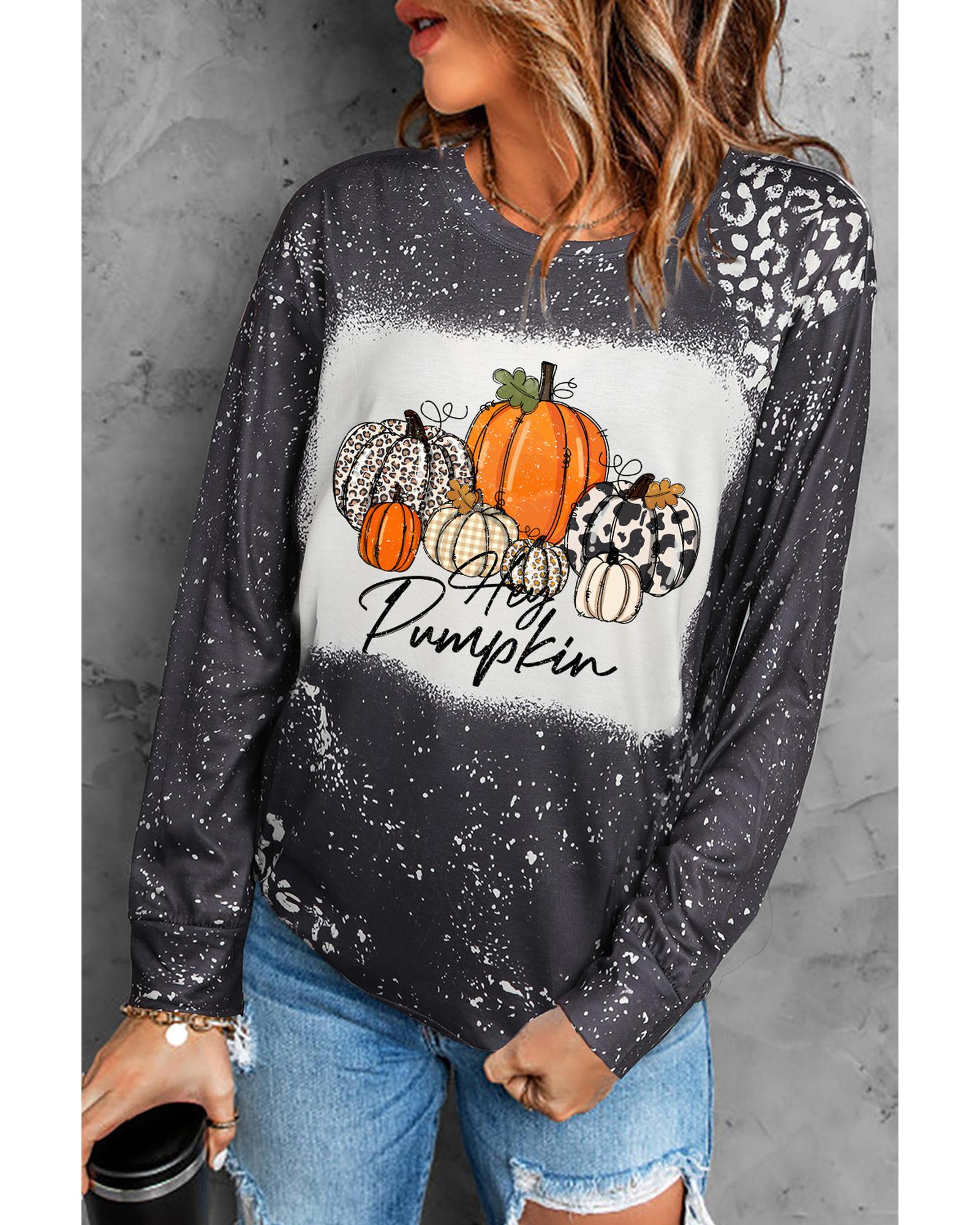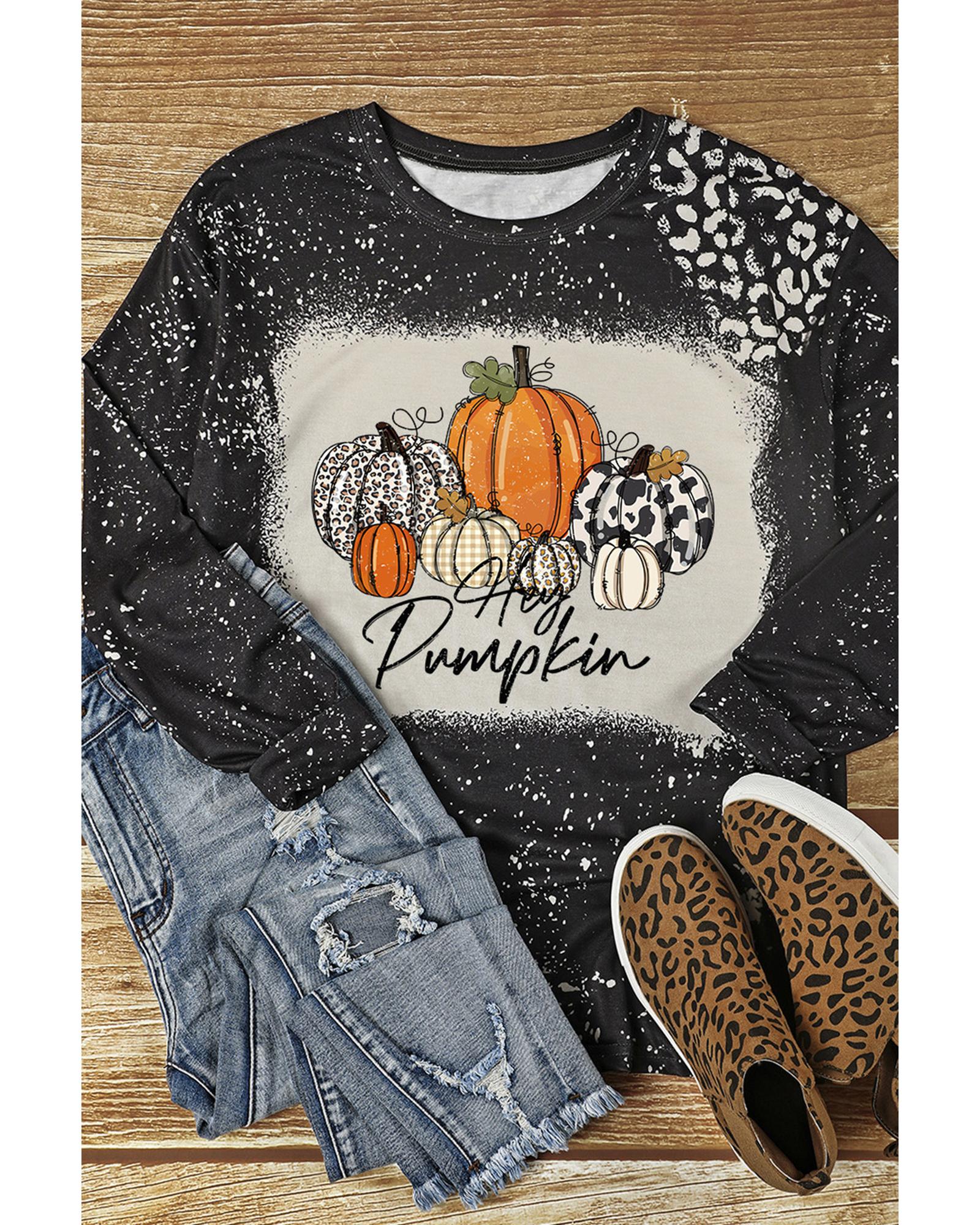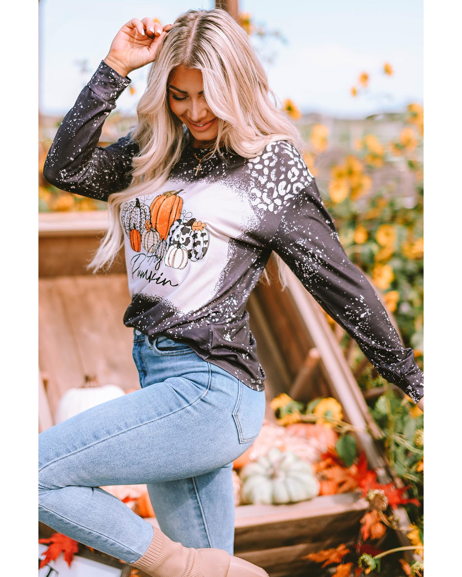 Black Leopard Bleached Pumpkin Graphic Long Sleeve Top – XL