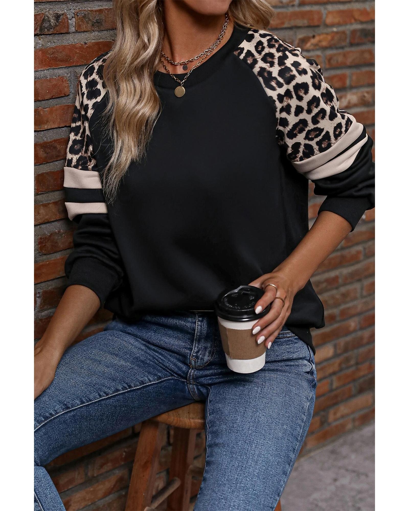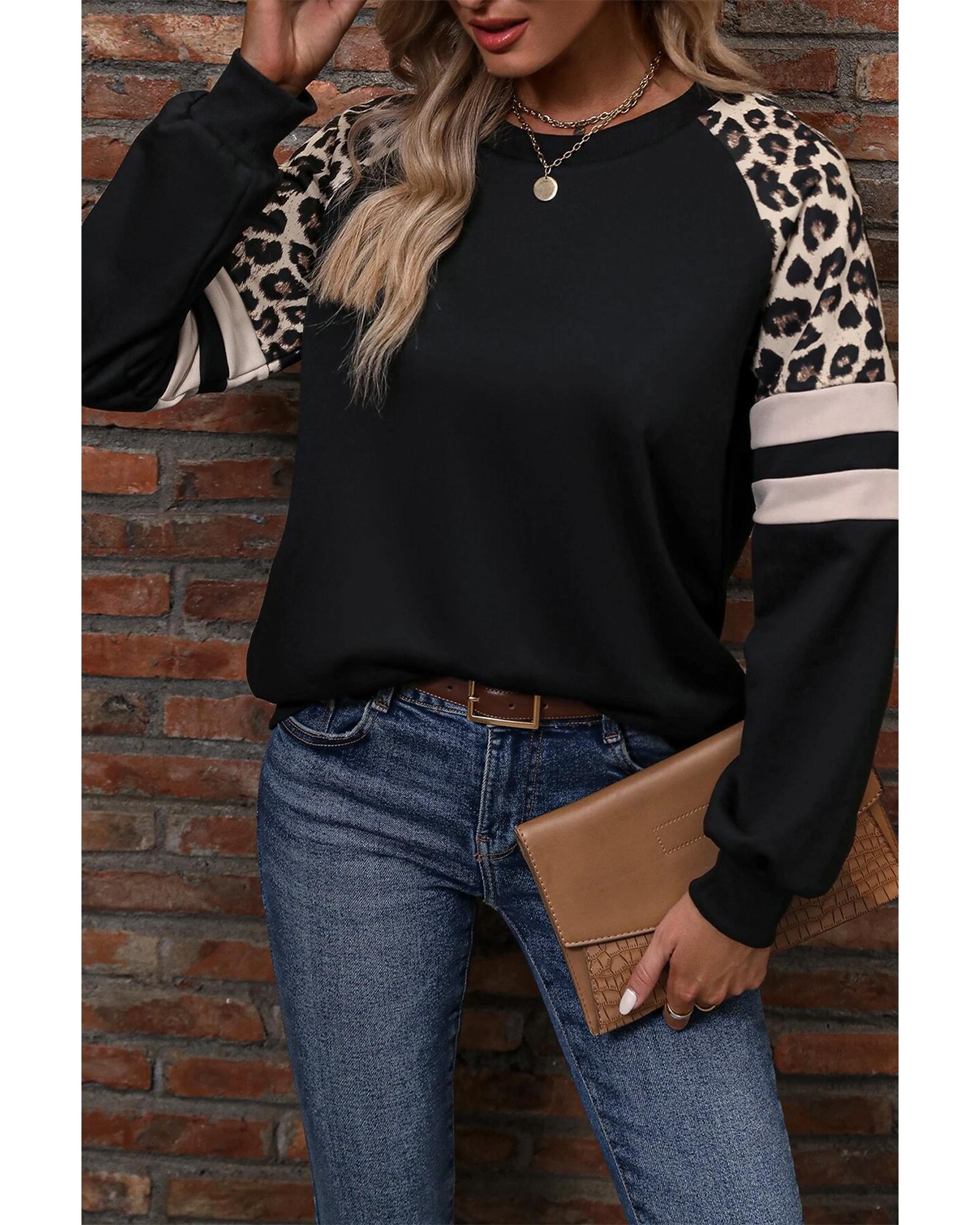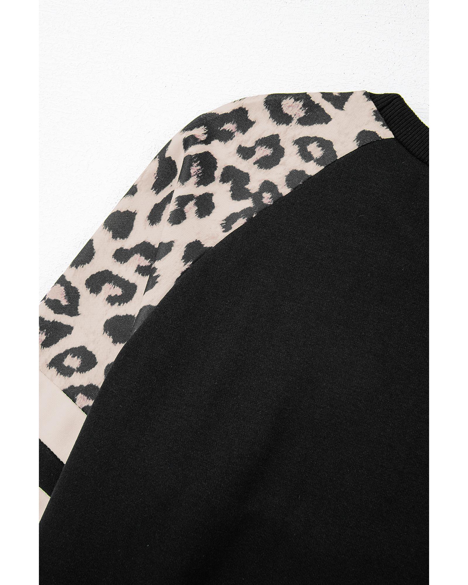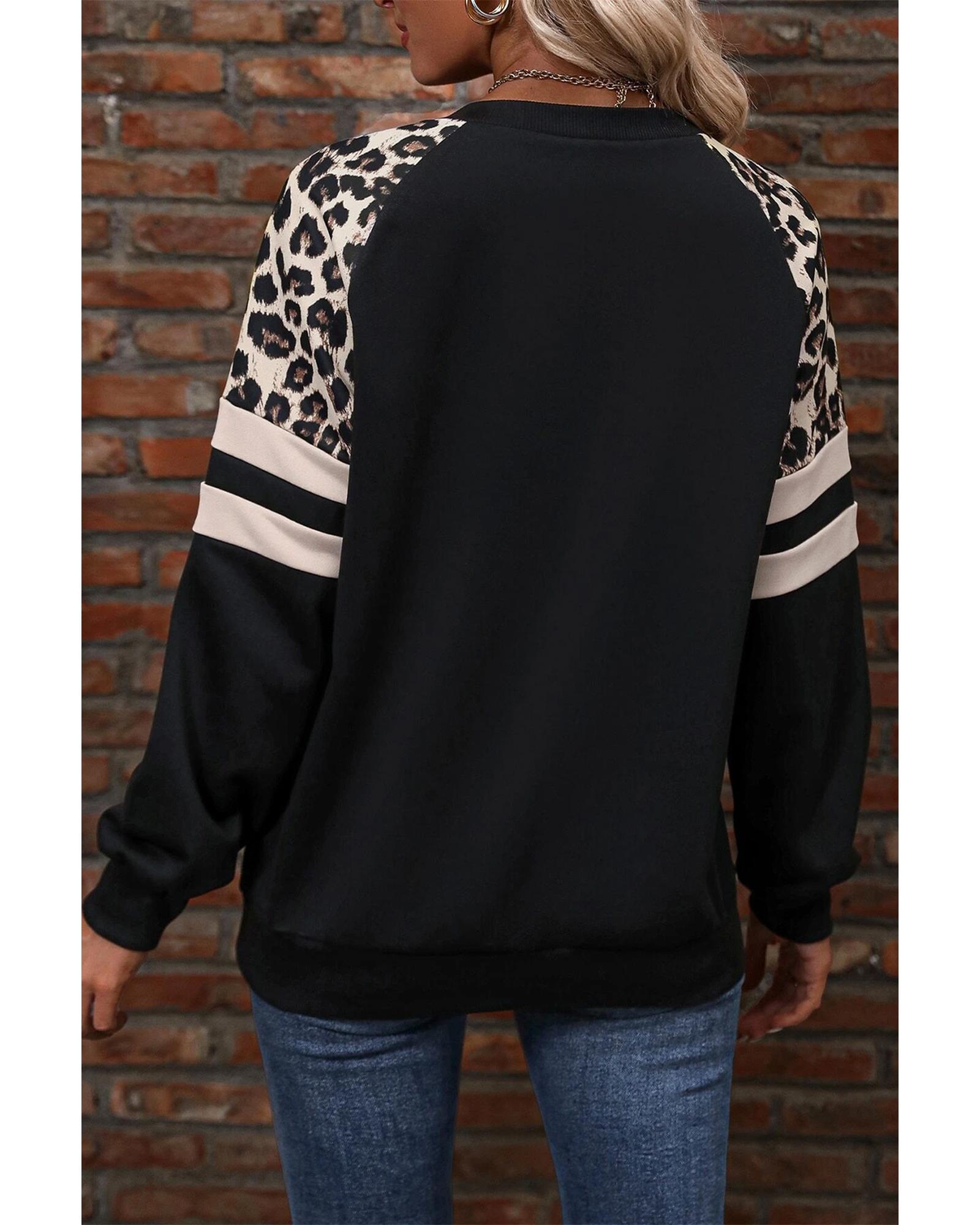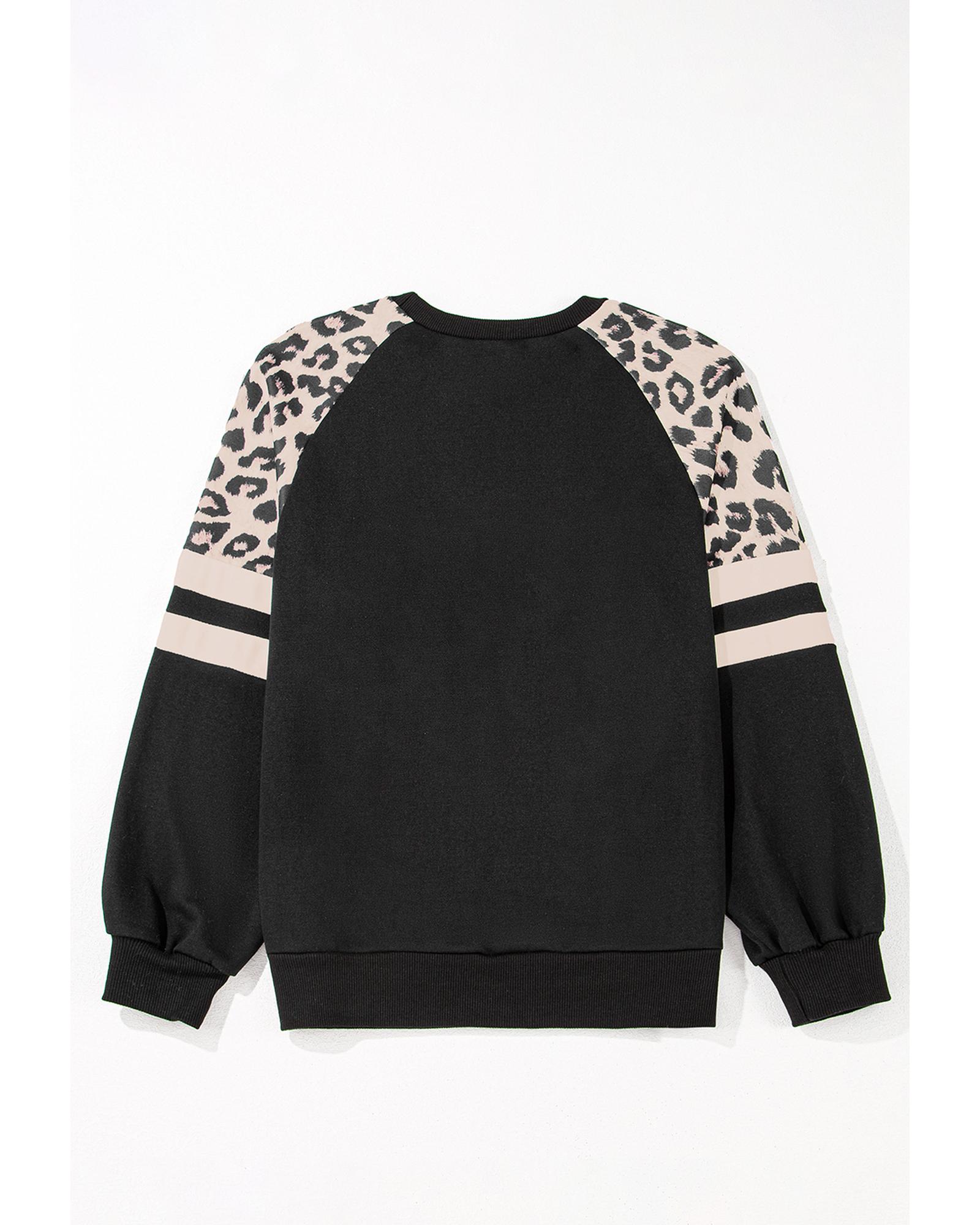 Black Leopard Print Colorblock Raglan Sleeve Sweatshirt – M