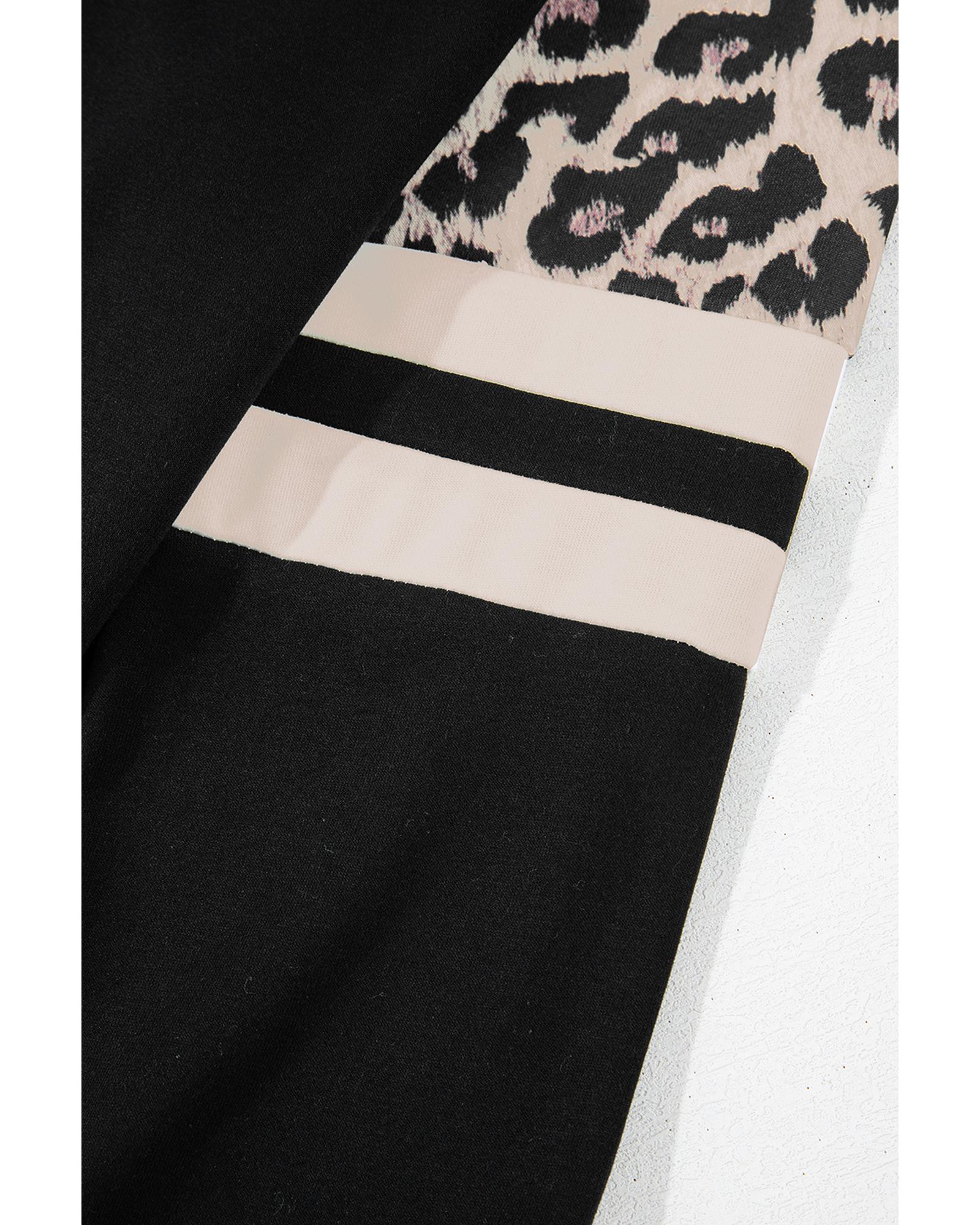 This sweatshirt features a trendy fitted design with a bold leopard print colorblock pattern. It combines sporty raglan sleeves with a stylish mix of leopard and striped prints, making it suitable for casual or lounge wear. Crafted from soft and warm materials, it offers comfort and a fashionable look for various casual to sporty styles.