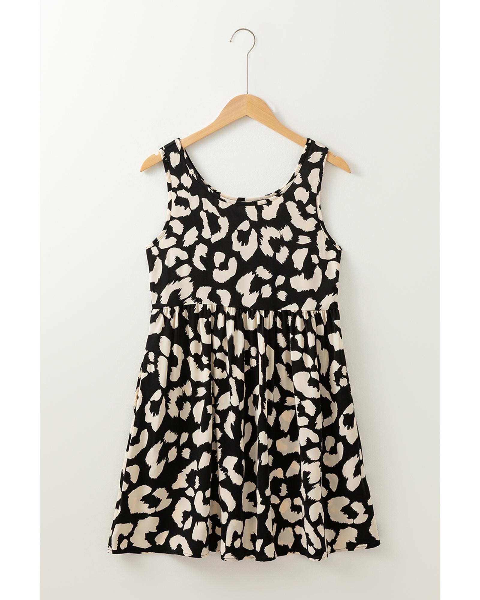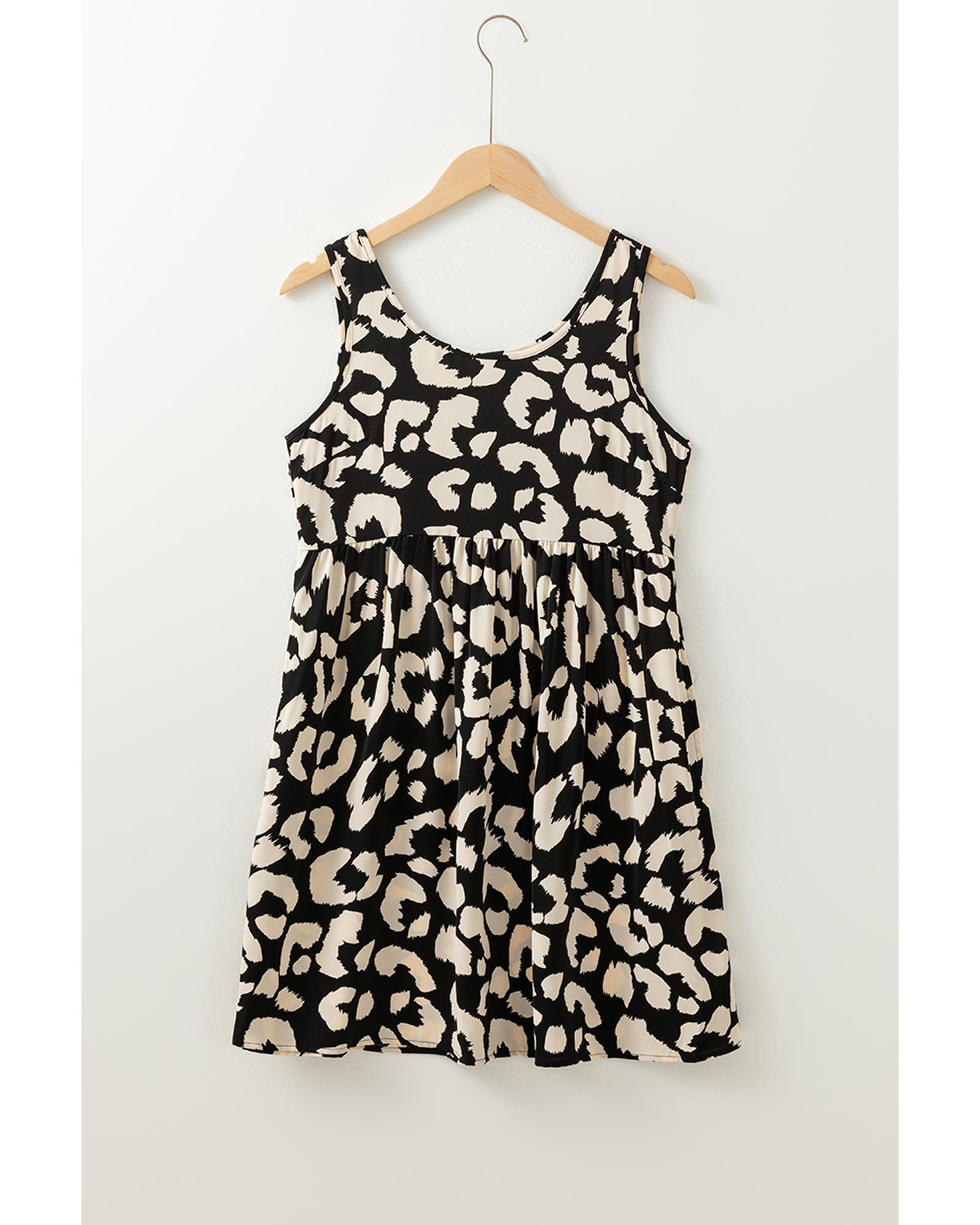 Black Leopard Print U Neck Sleeveless High Waist Dress - S Original price was: $60.99.Current price is: $32.99.