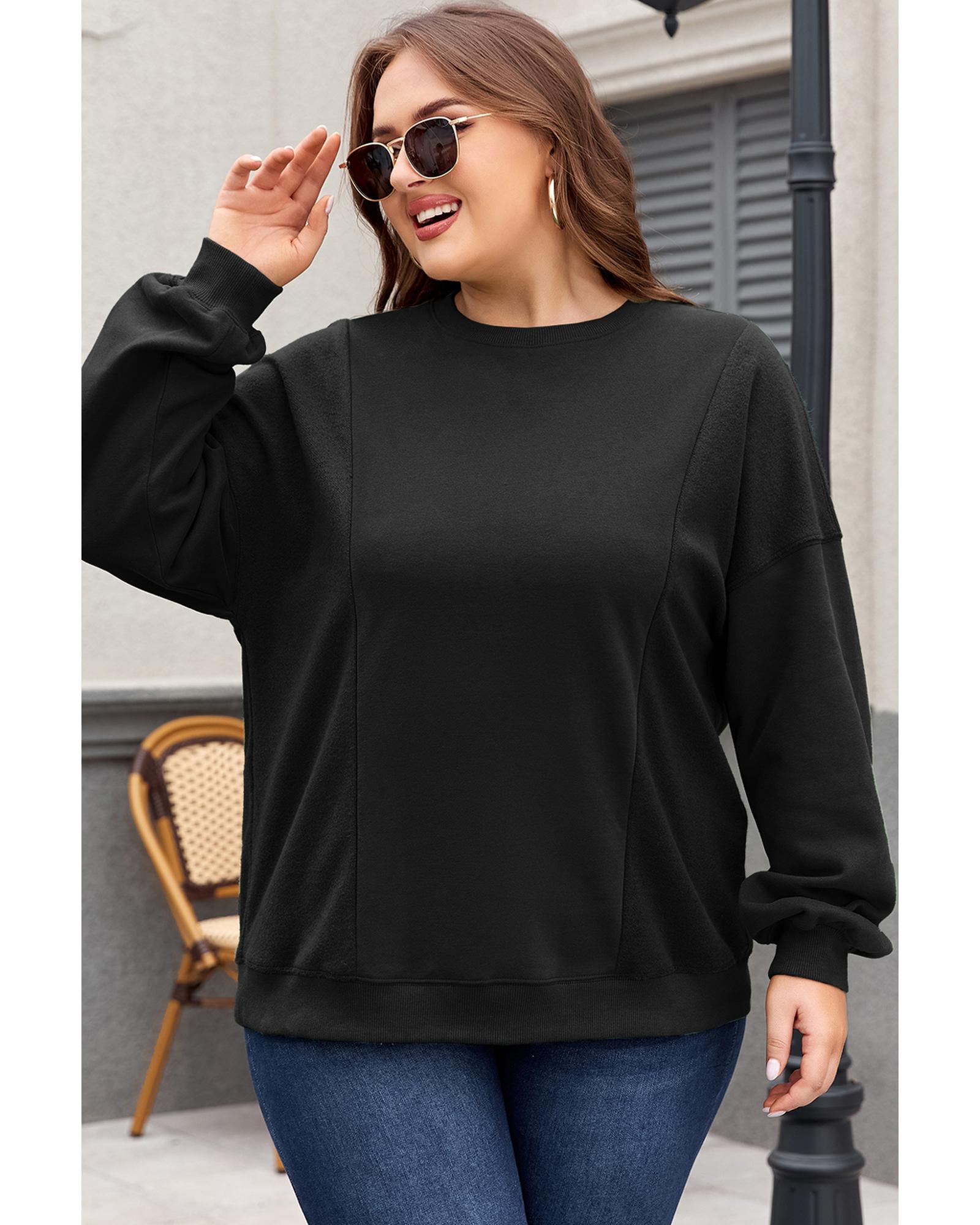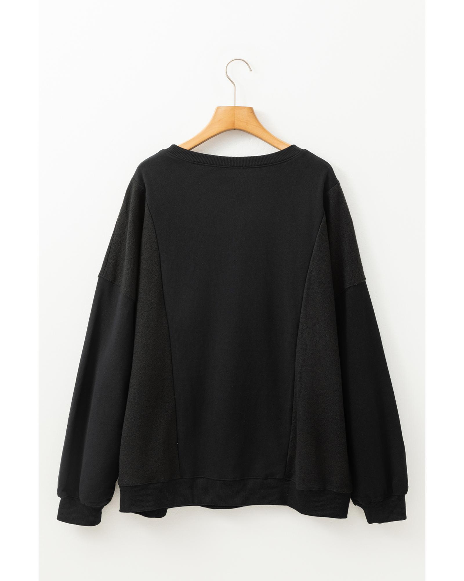 Black Loose Patchwork Crewneck Plus Size Sweatshirt – 1X