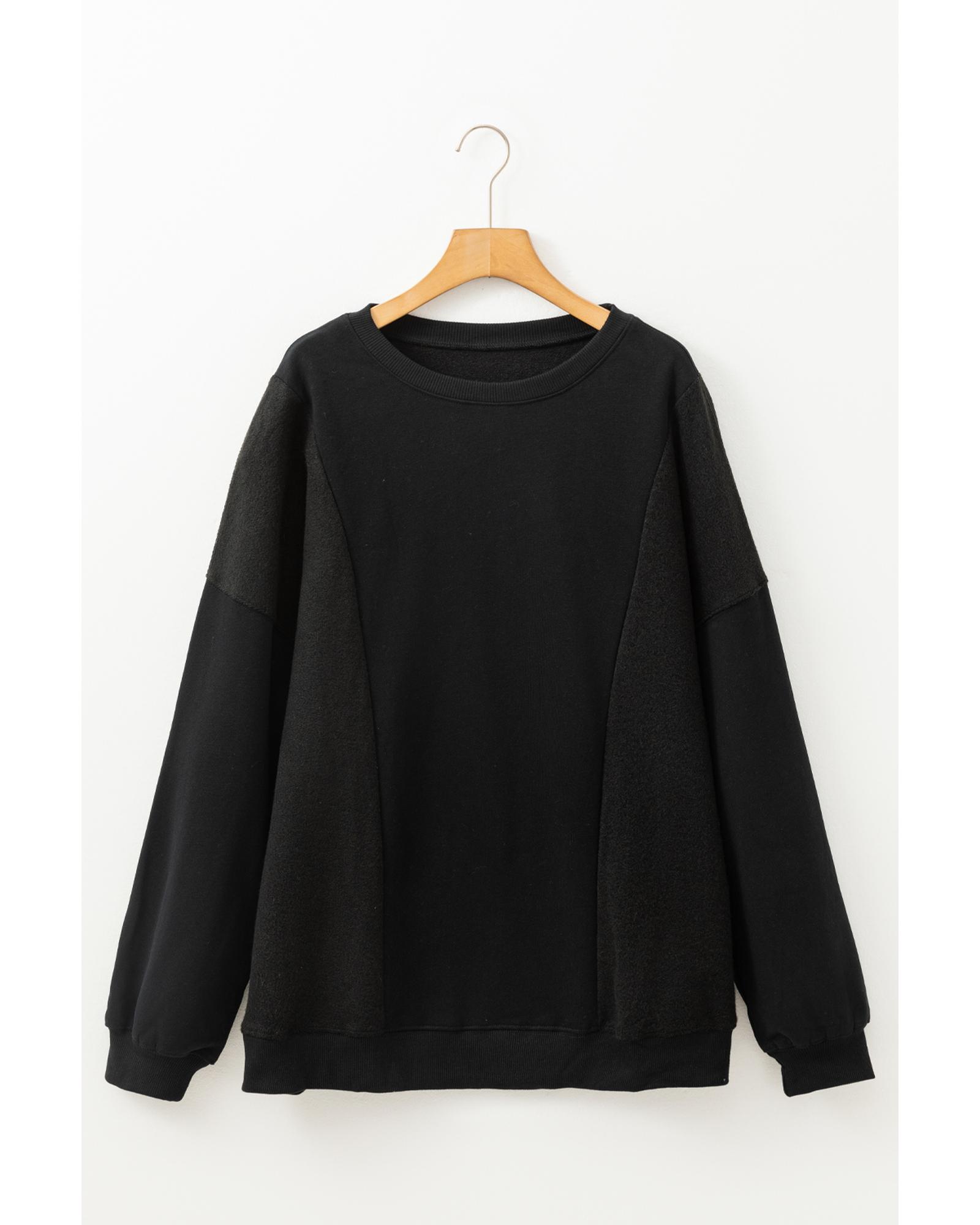Black Loose Patchwork Crewneck Plus Size Sweatshirt – 3X