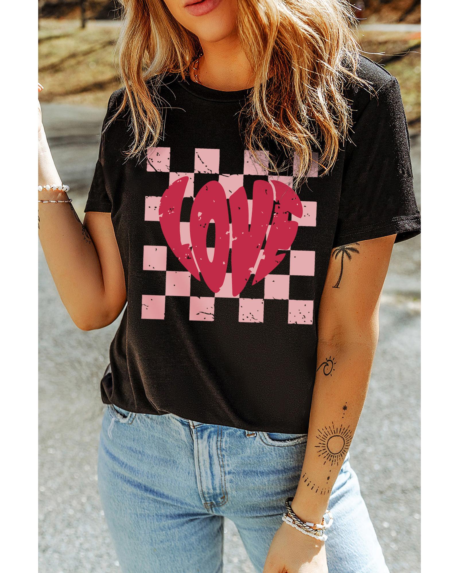 Black LOVE Checkered Graphic Valentine Tee – S