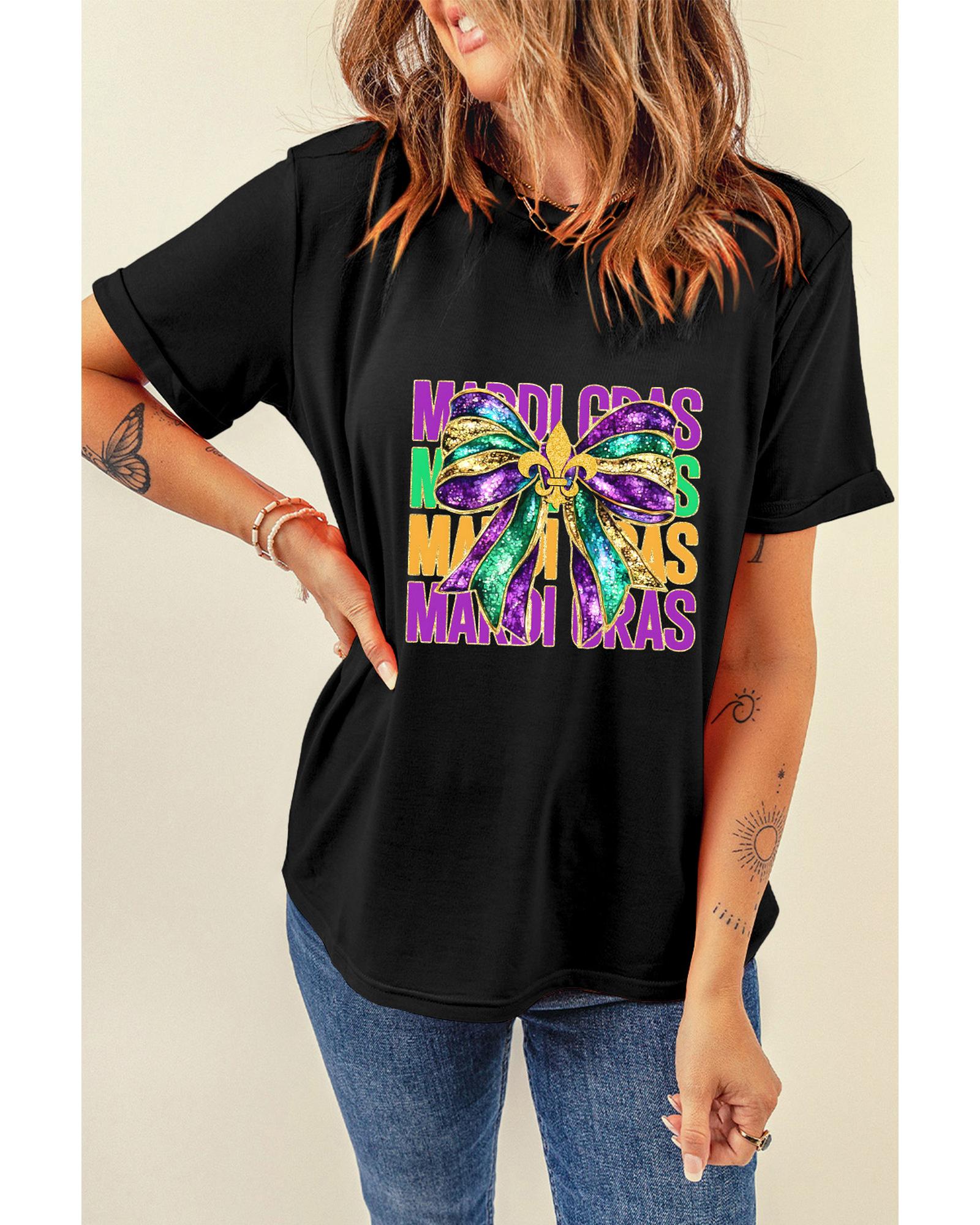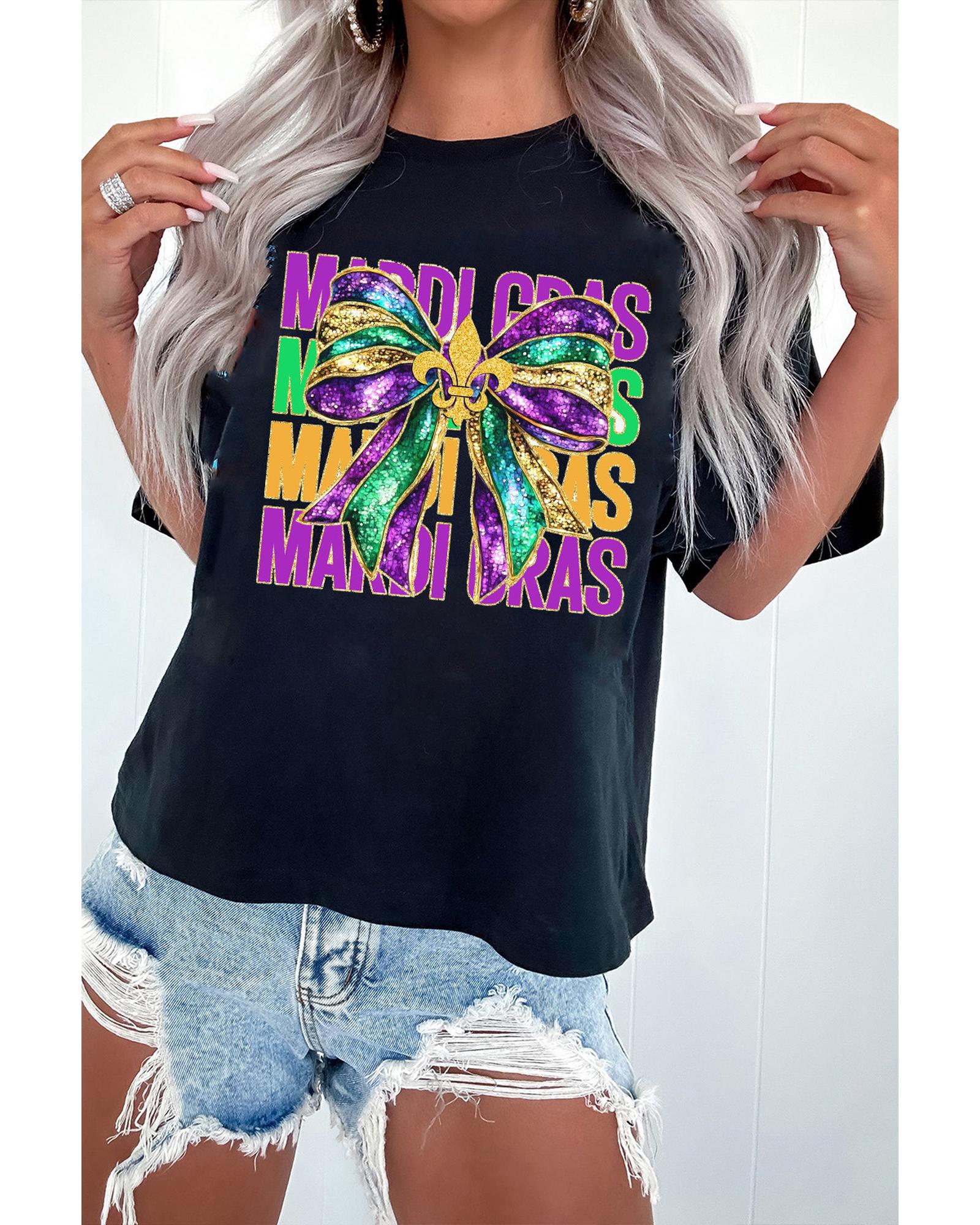 Black MARDI GRAS Fleur de Lis Bowknot Printed Crewneck Tee – 2XL