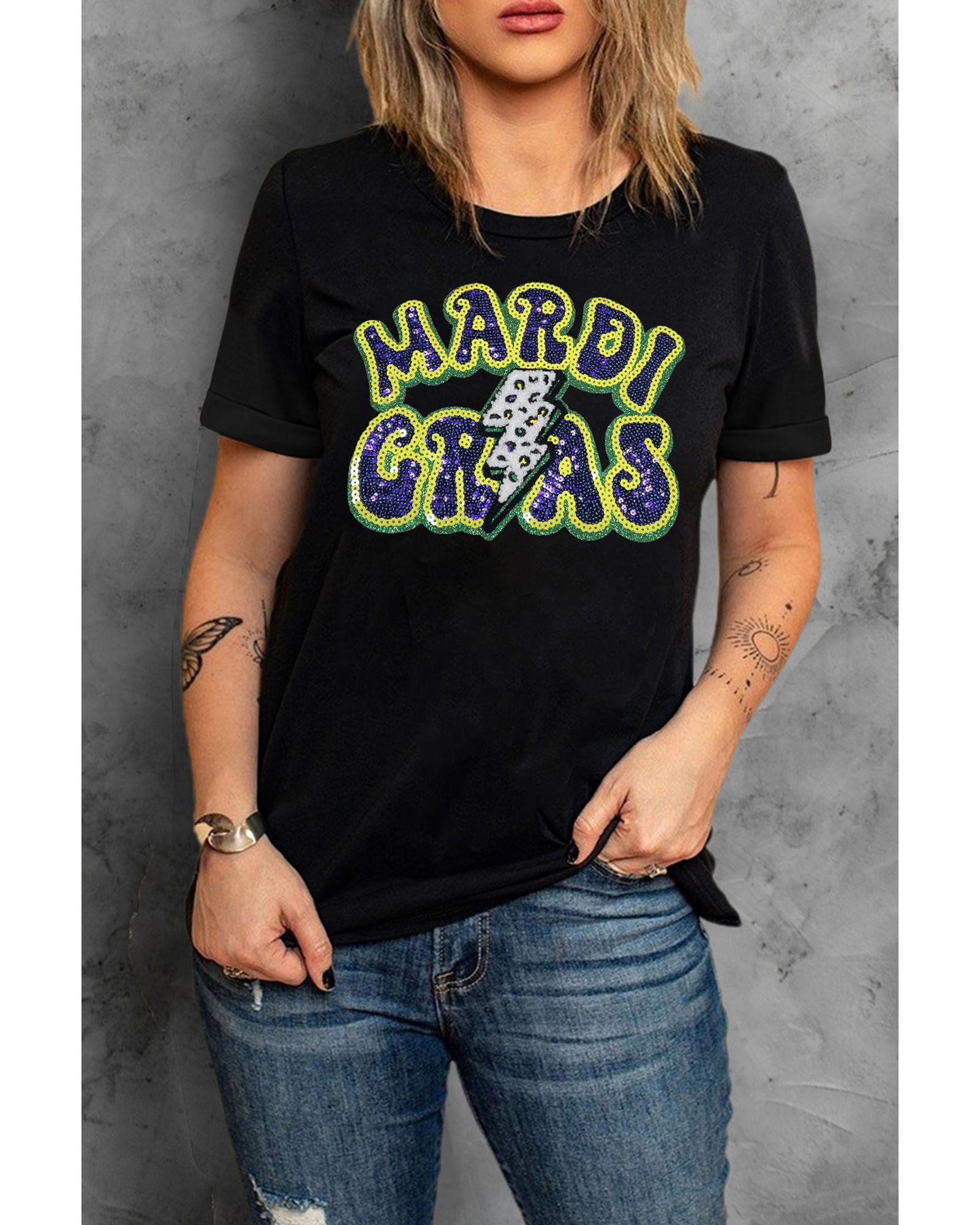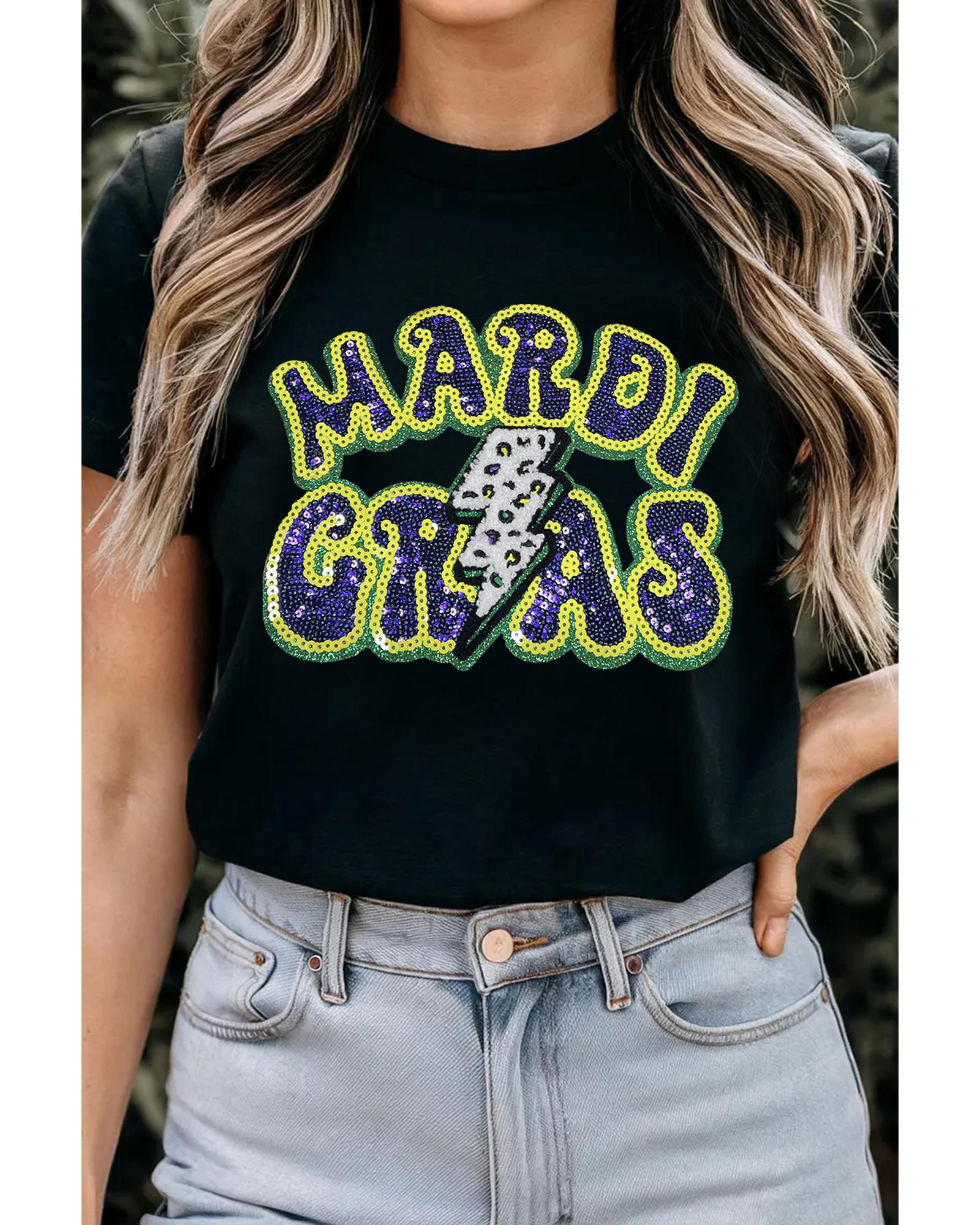 Black MARDI GRAS Lightning Graphic Short Sleeve Top – M