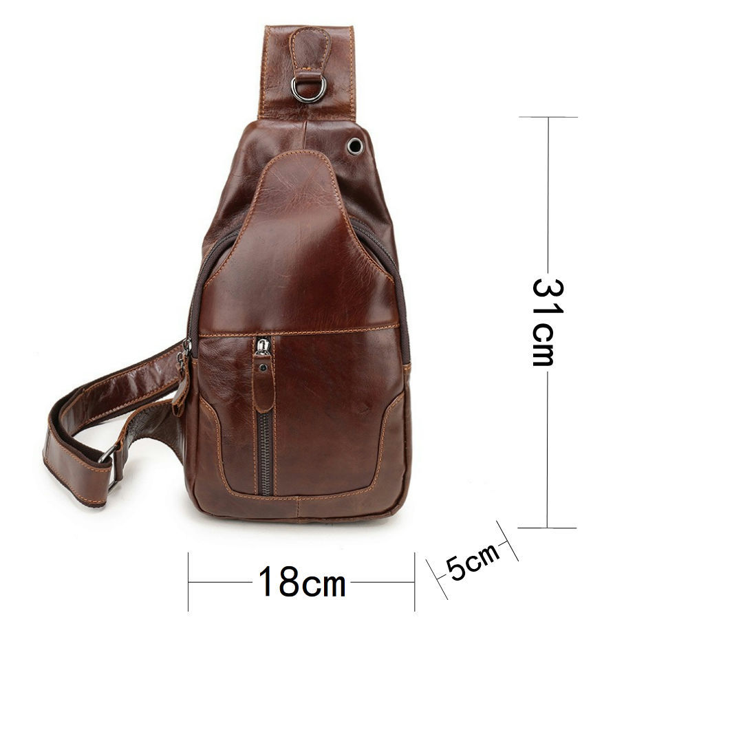 This men’s leather sling backpack offers a stylish, comfortable, and practical solution for daily use or travel. It features a compact design with multiple compartments, making it suitable for carrying essential items securely and conveniently.
