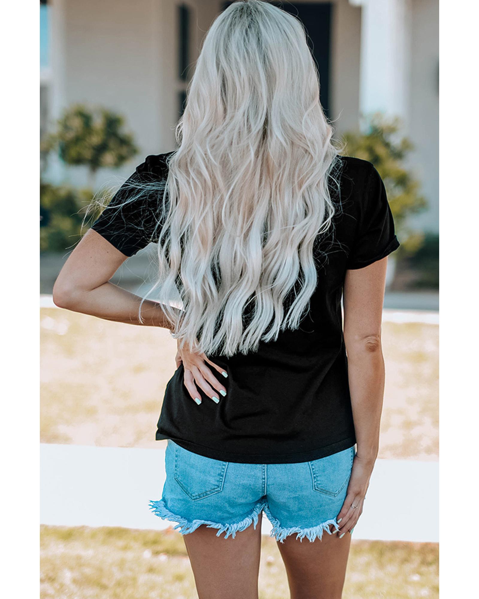 This Black MERRY and BRIGHT Crew Neck Graphic Tee combines style and comfort with its trendy fitted design and eye-catching graphic print. Made from high-quality materials, it offers durability and a comfortable fit, making it suitable for casual and fashionable outfits.