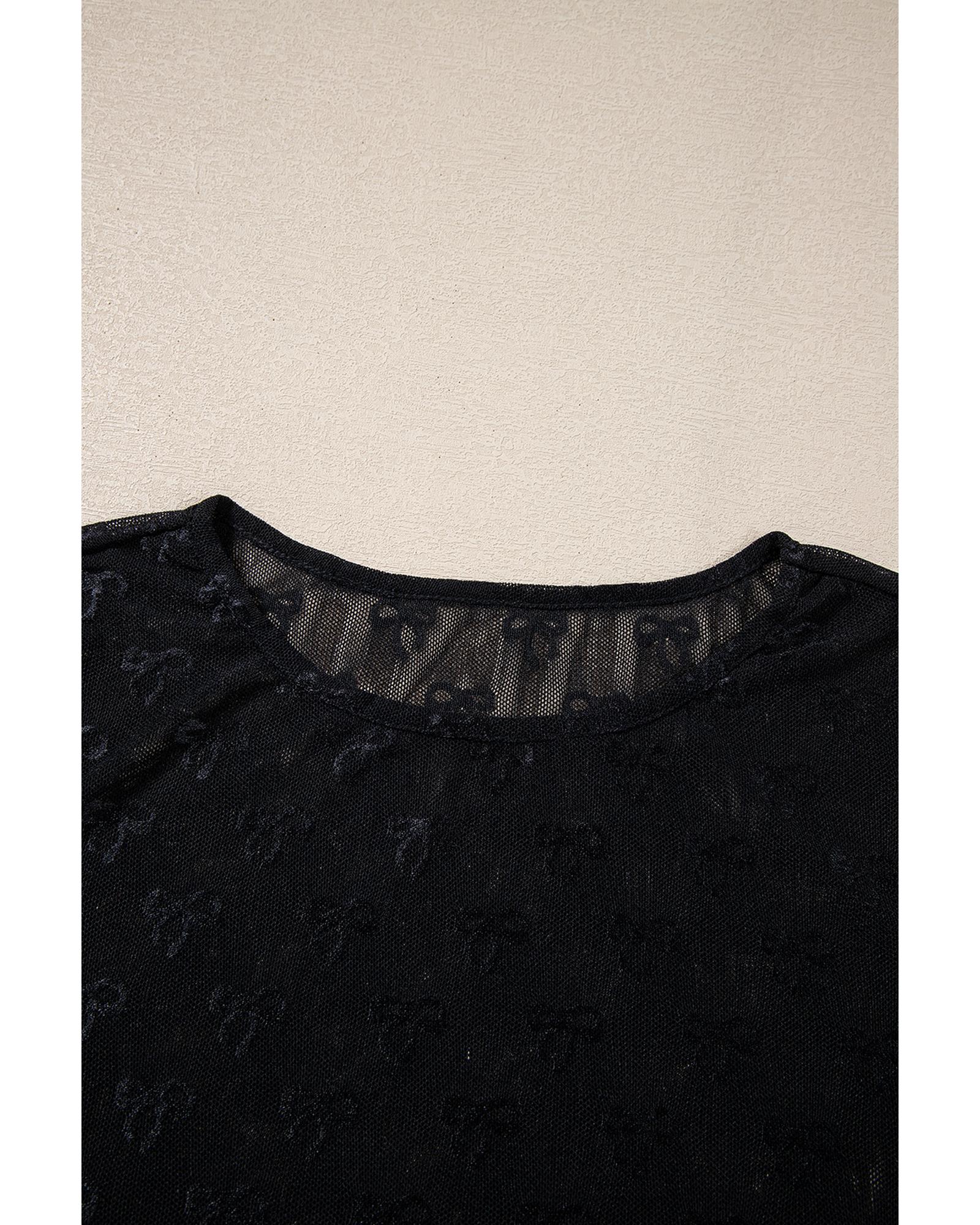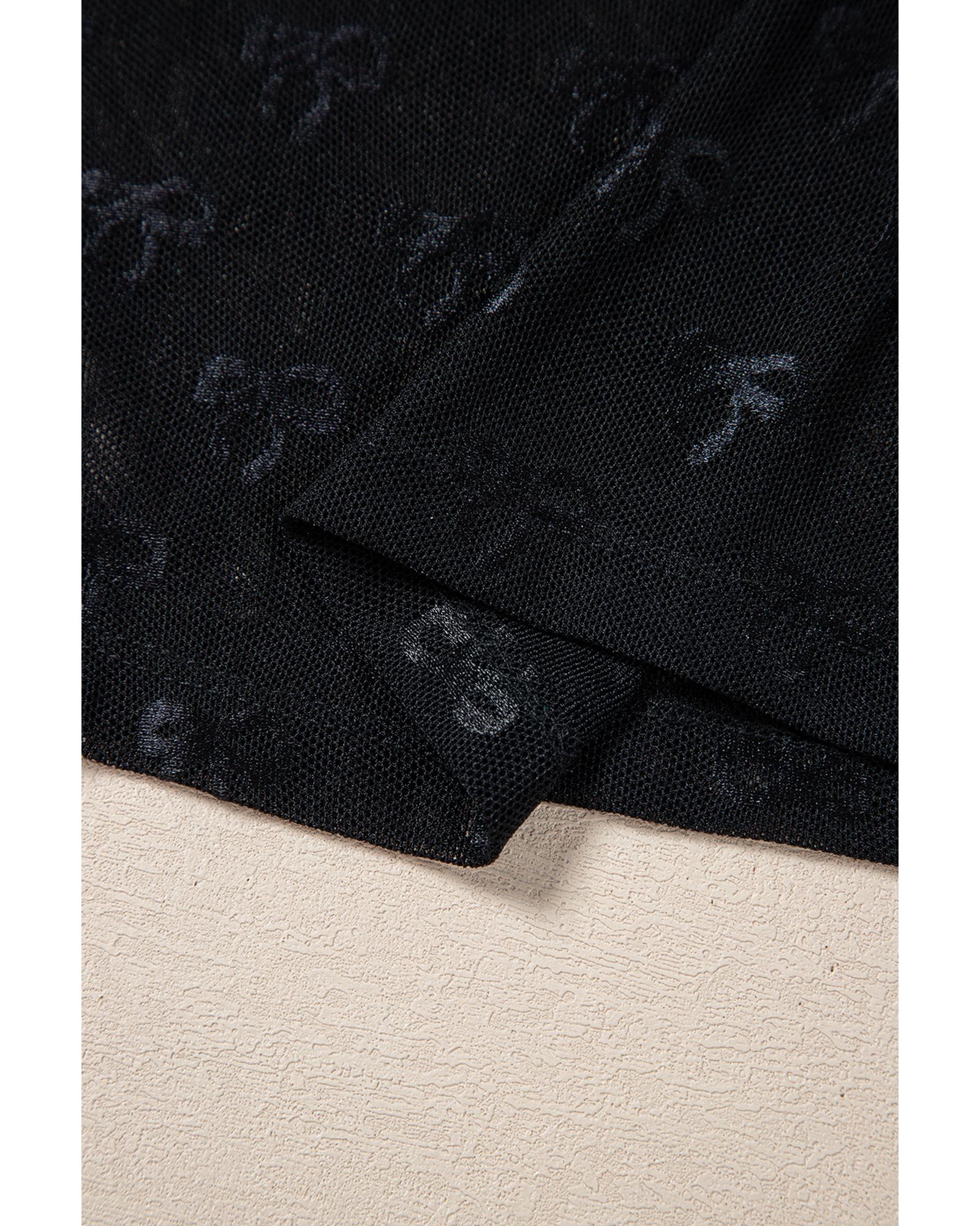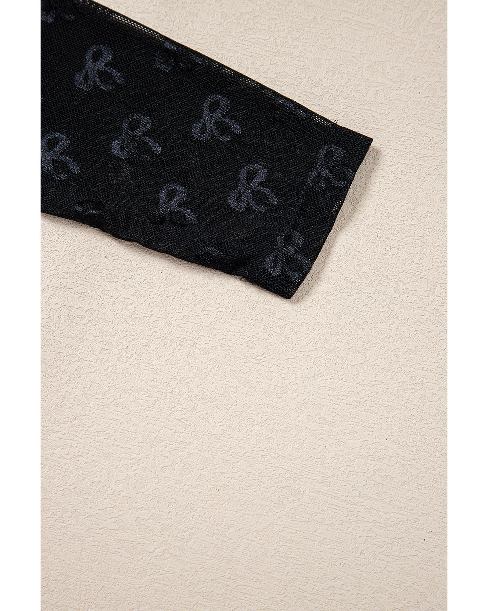 - Black mesh long sleeve top with bow pattern