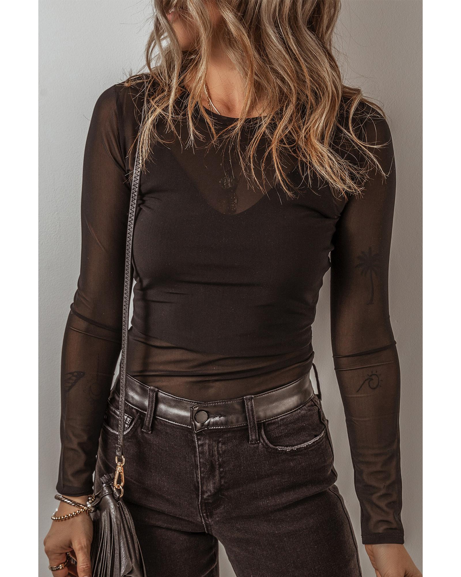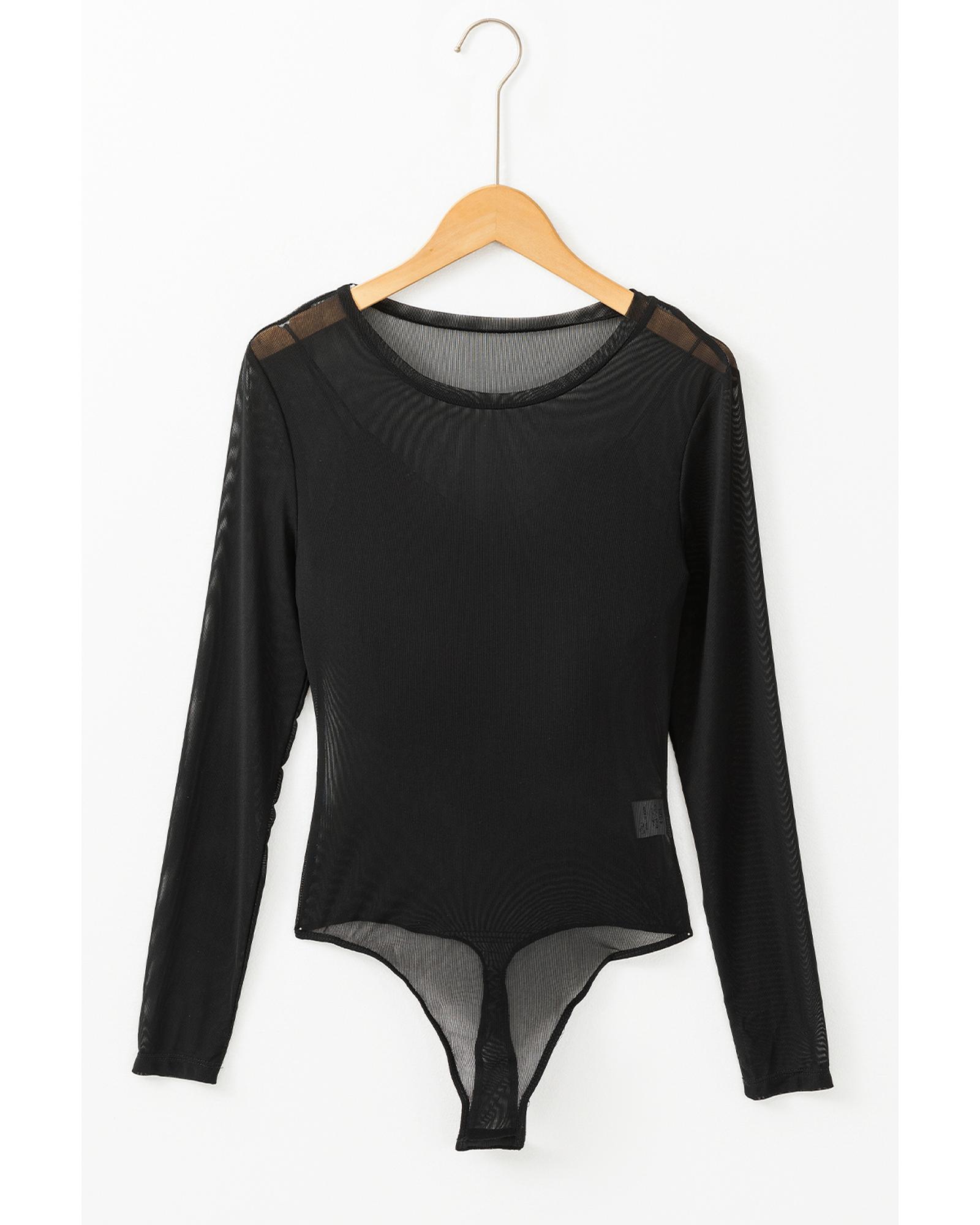 This black mesh long sleeve bodysuit features a slim fit design that accentuates your curves while providing all-day comfort. Made from breathable fabric, it is suitable for various occasions and offers high elasticity for a comfortable and flexible fit.