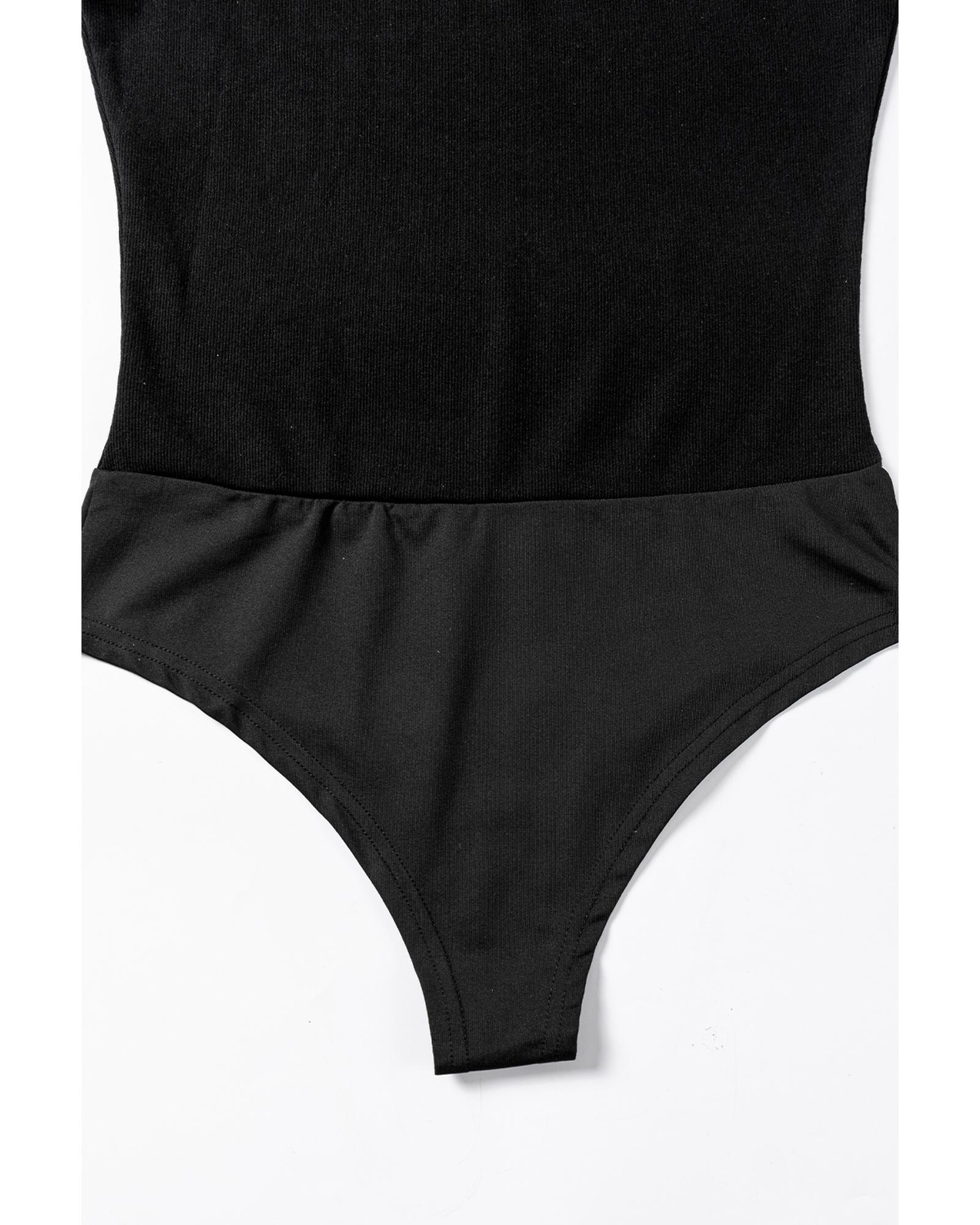 Black Mesh Patchwork Sleeveless Bodysuit – XL
