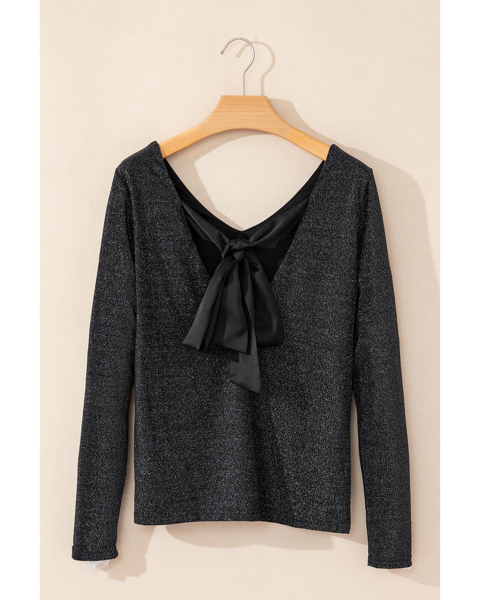 This stylish top features a trendy fitted design with a striking metallic sheen, perfect for any occasion. The open back and sweet bowknot add a unique touch, making it a versatile piece for layering throughout the year.