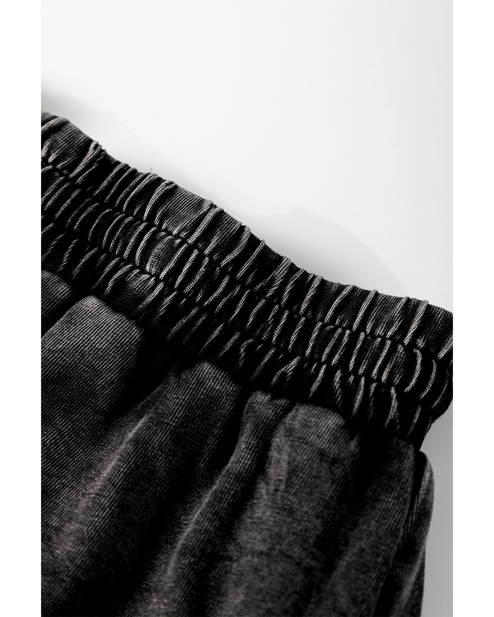 Black Mineral Wash French Terry High Waist Casual Shorts – XL
