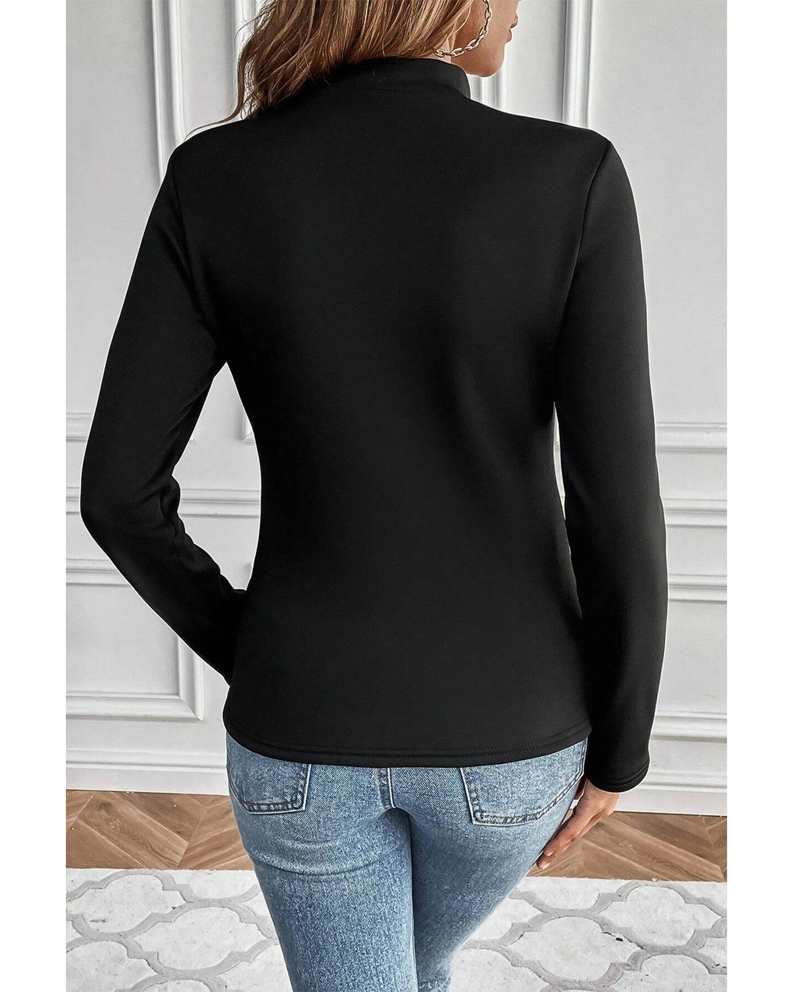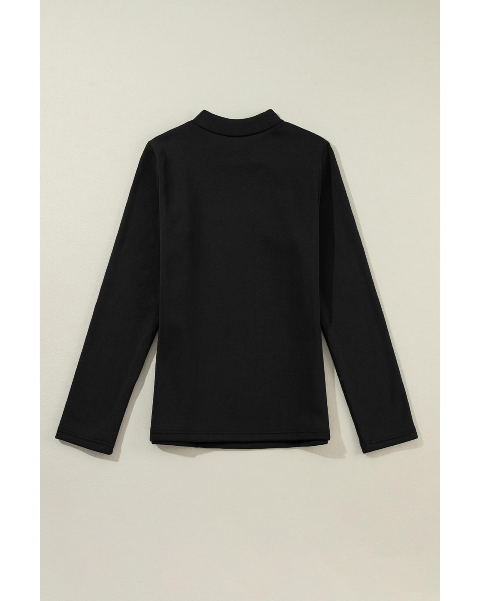 Black Mock Neck Thermal Lined Long Sleeve Tee – M