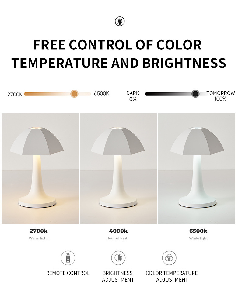This Nordic umbrella mushroom table lamp offers a stylish and functional lighting solution for various spaces. Its unique umbrella-shaped shade provides a soft, ambient glow, making it suitable for living rooms, bedrooms, or bars. Crafted from durable materials, it features stepless dimming and adjustable color temperatures to create the perfect atmosphere.