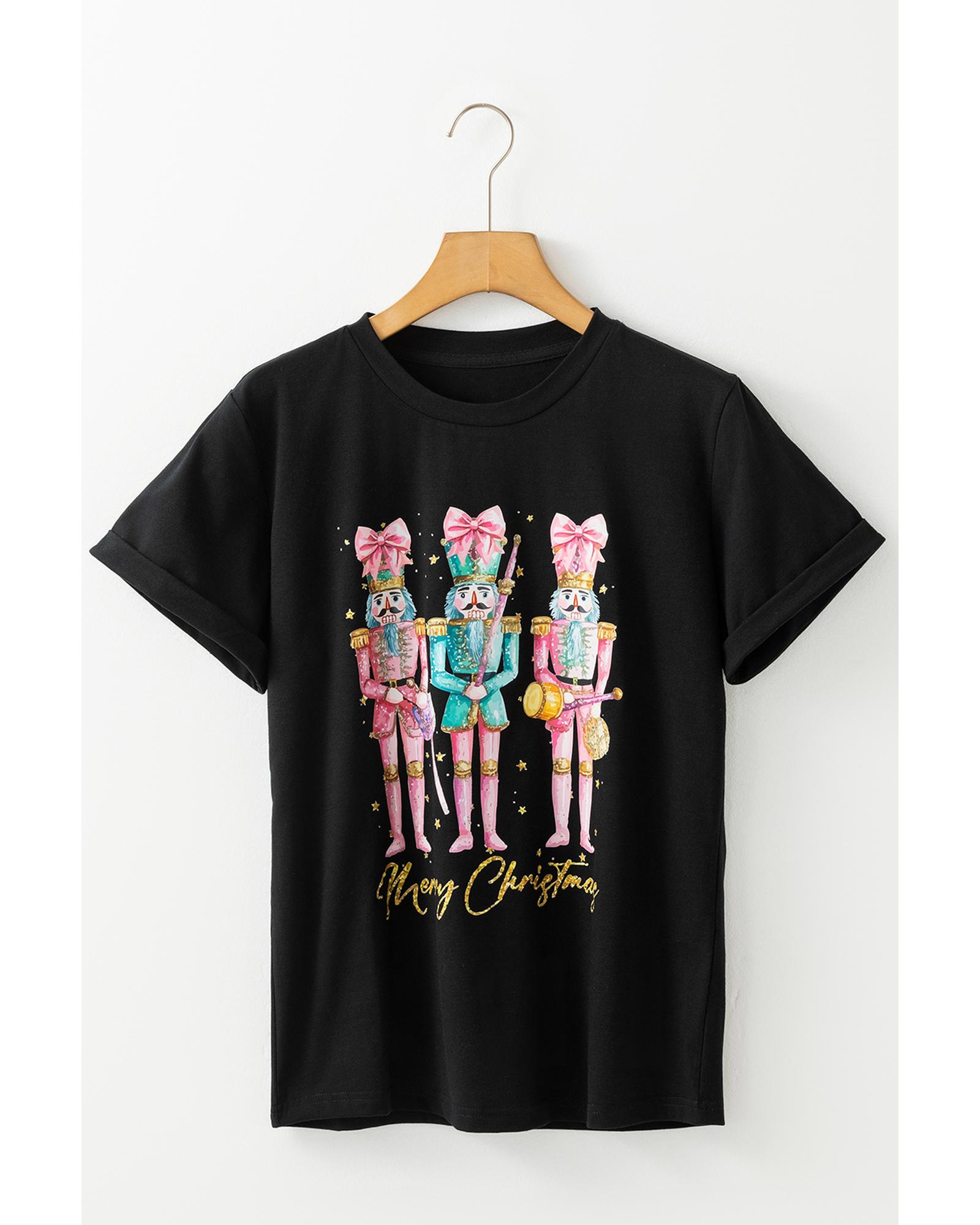 Black Nutcracker Merry Christmas Printed Crewneck T Shirt – S