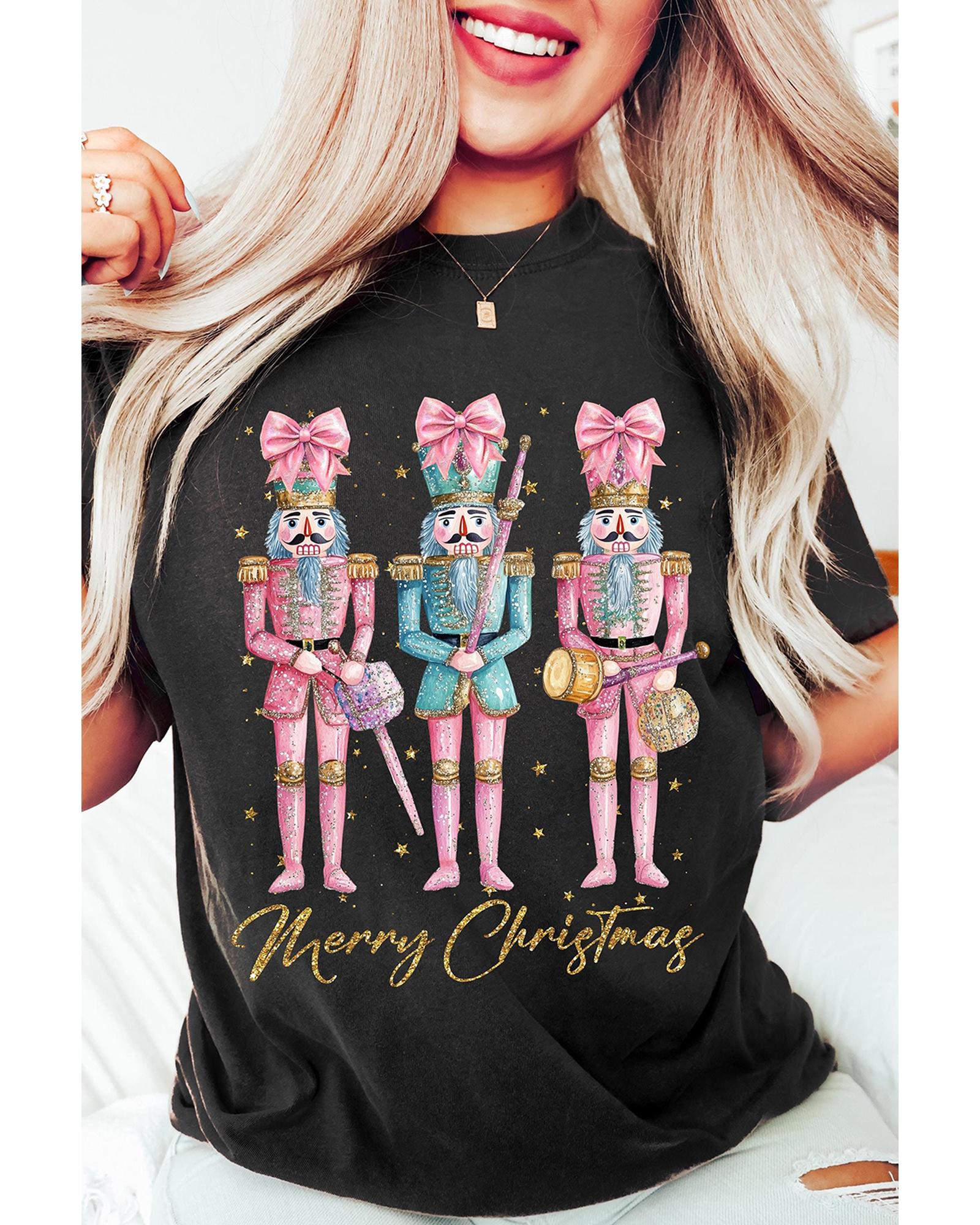 Black Nutcracker Merry Christmas Printed Crewneck T Shirt – XL