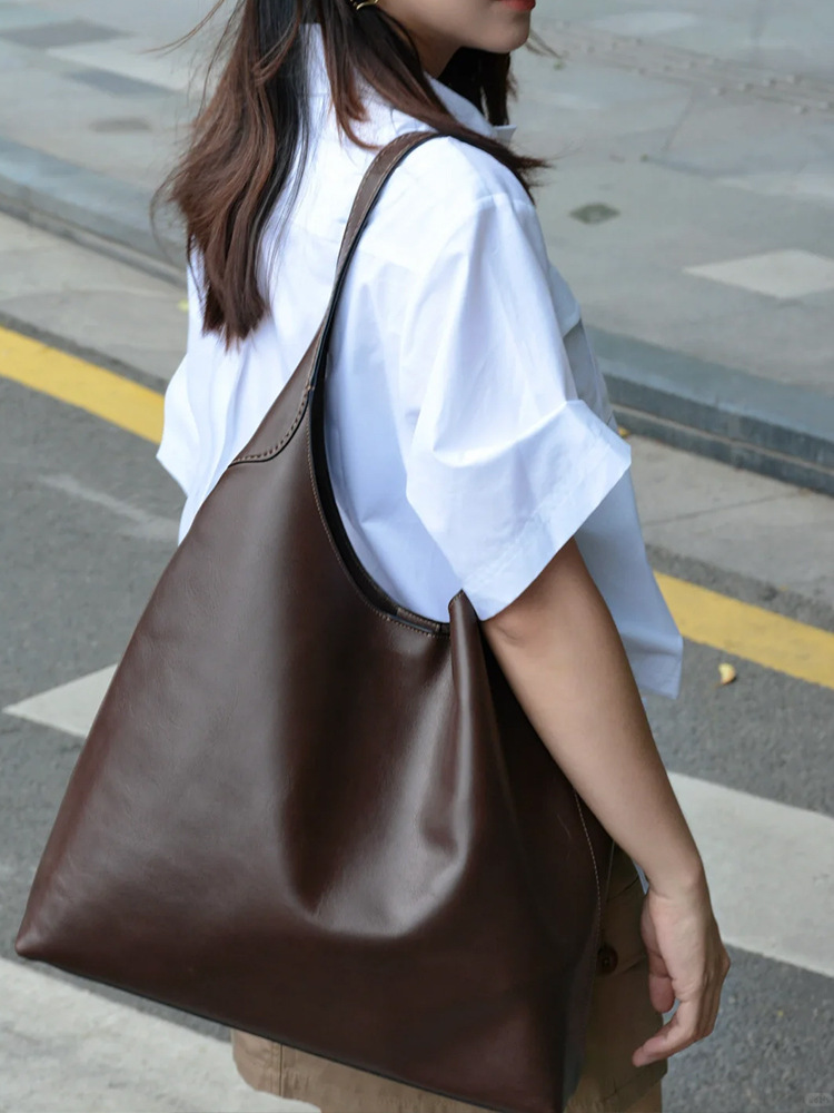 This shoulder bag features a sleek oil-wax leather-inspired design, combining elegance and practicality for modern women. Its minimalist style makes it suitable for various occasions, from casual outings to evening events. Crafted with high-quality materials, it offers both style and durability.