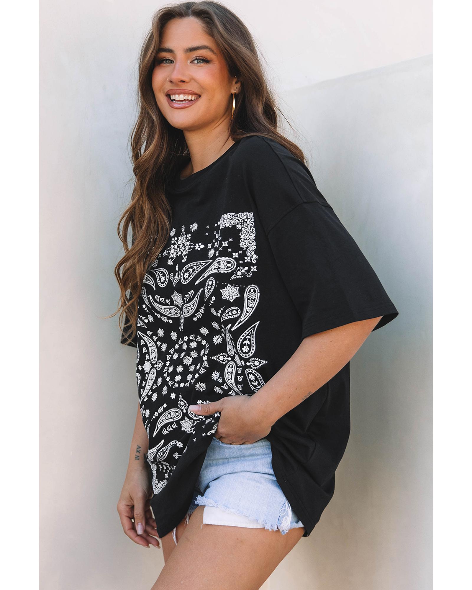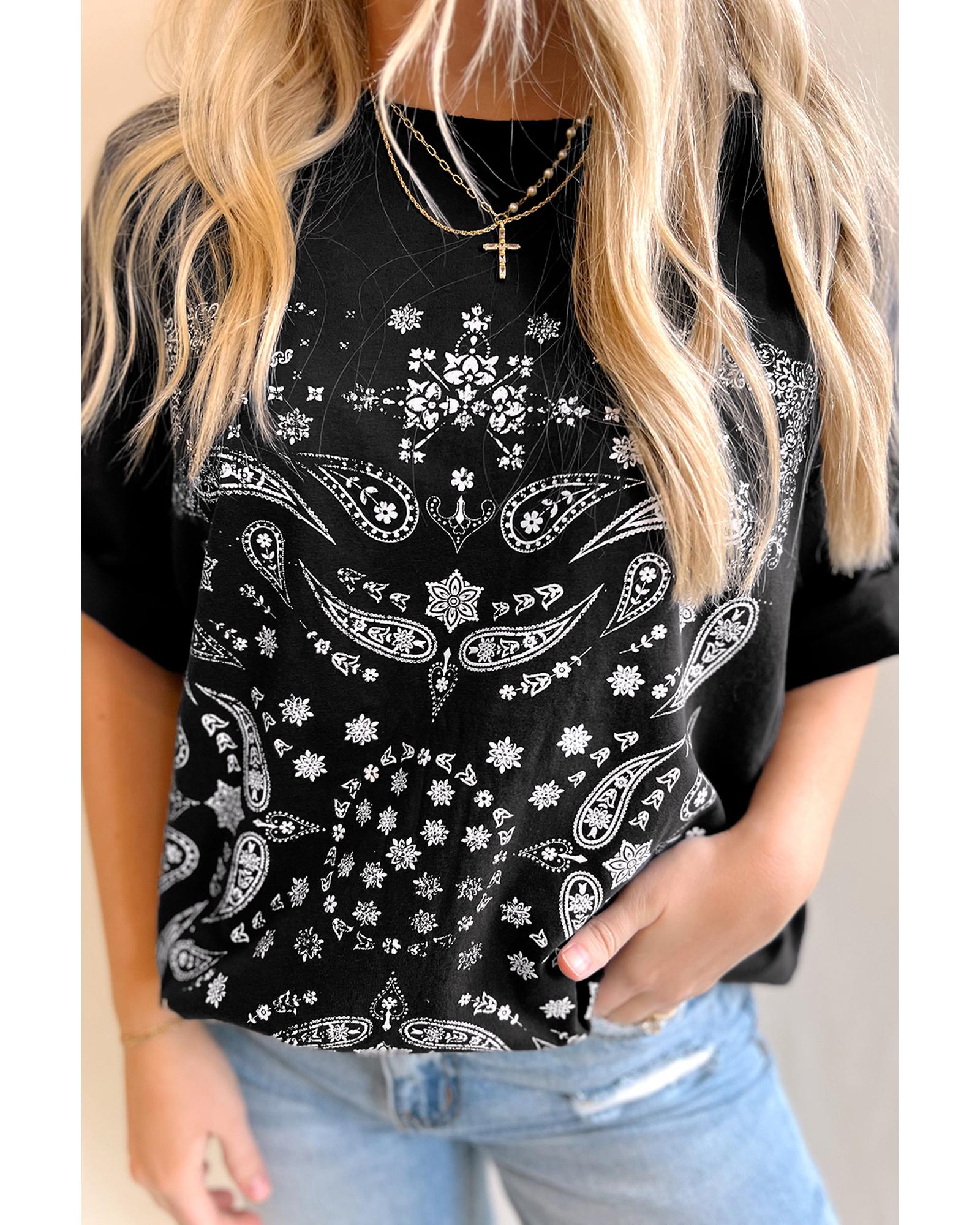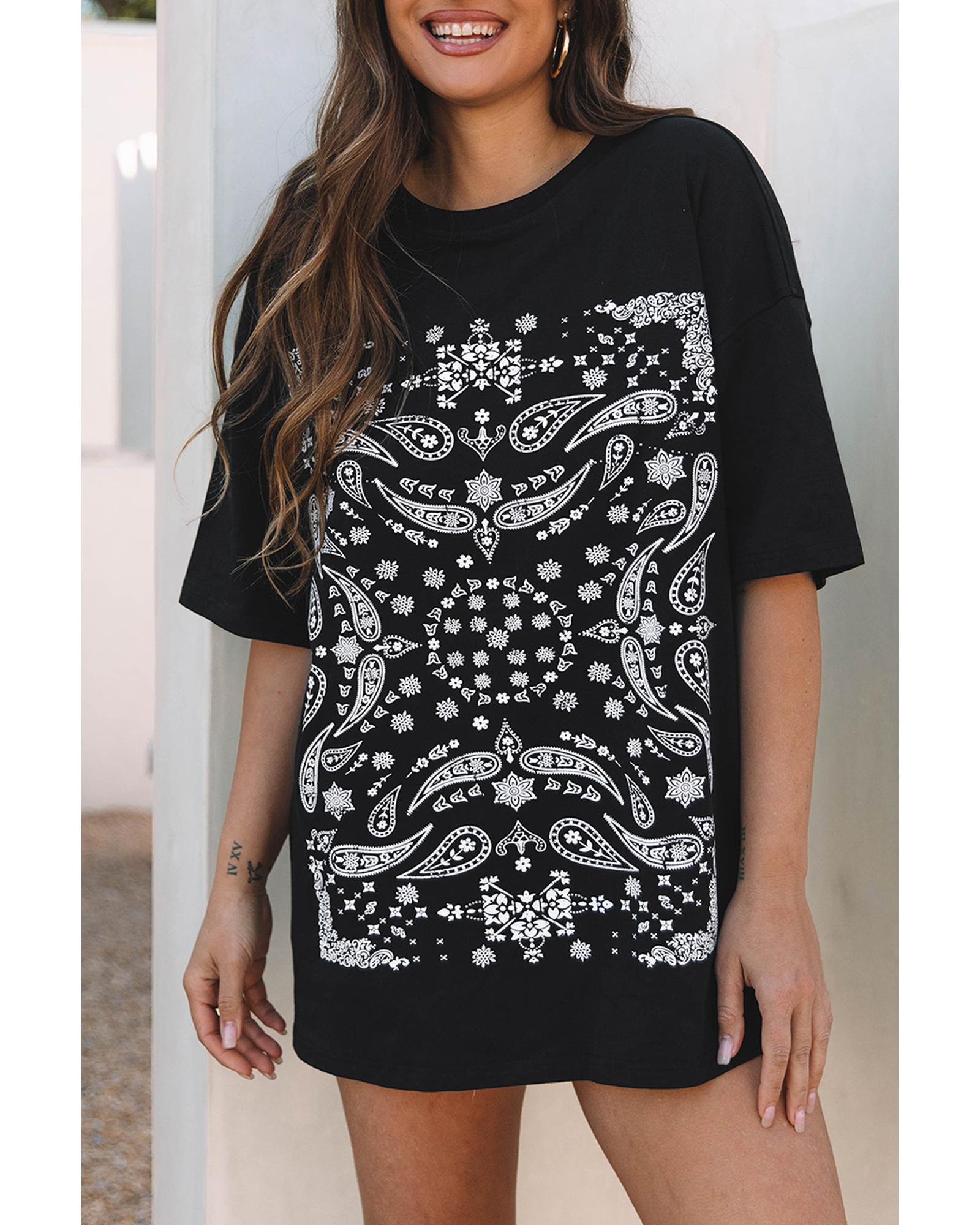 Black Paisley Print Crew Neck Loose Fit Tunic Tee – XL