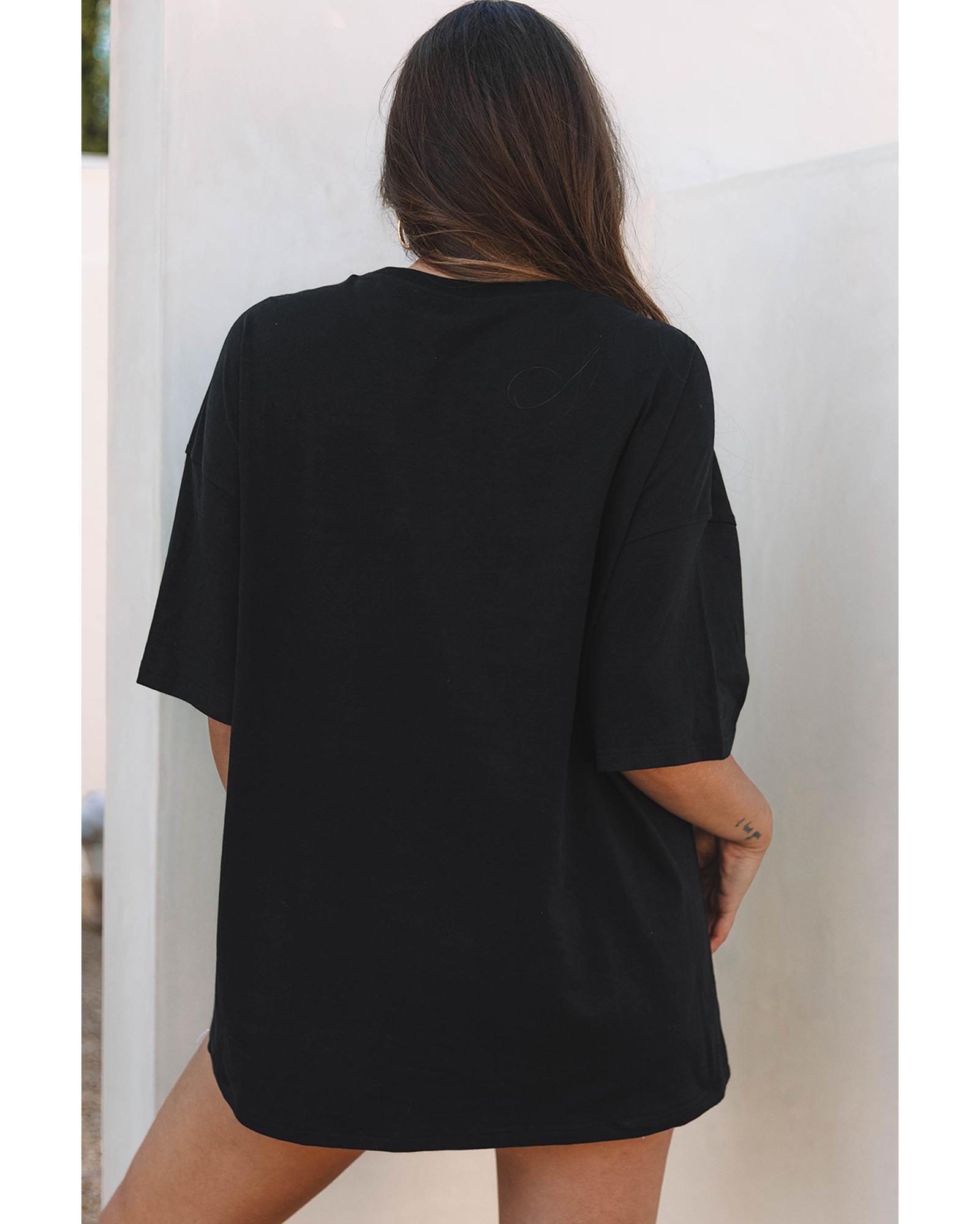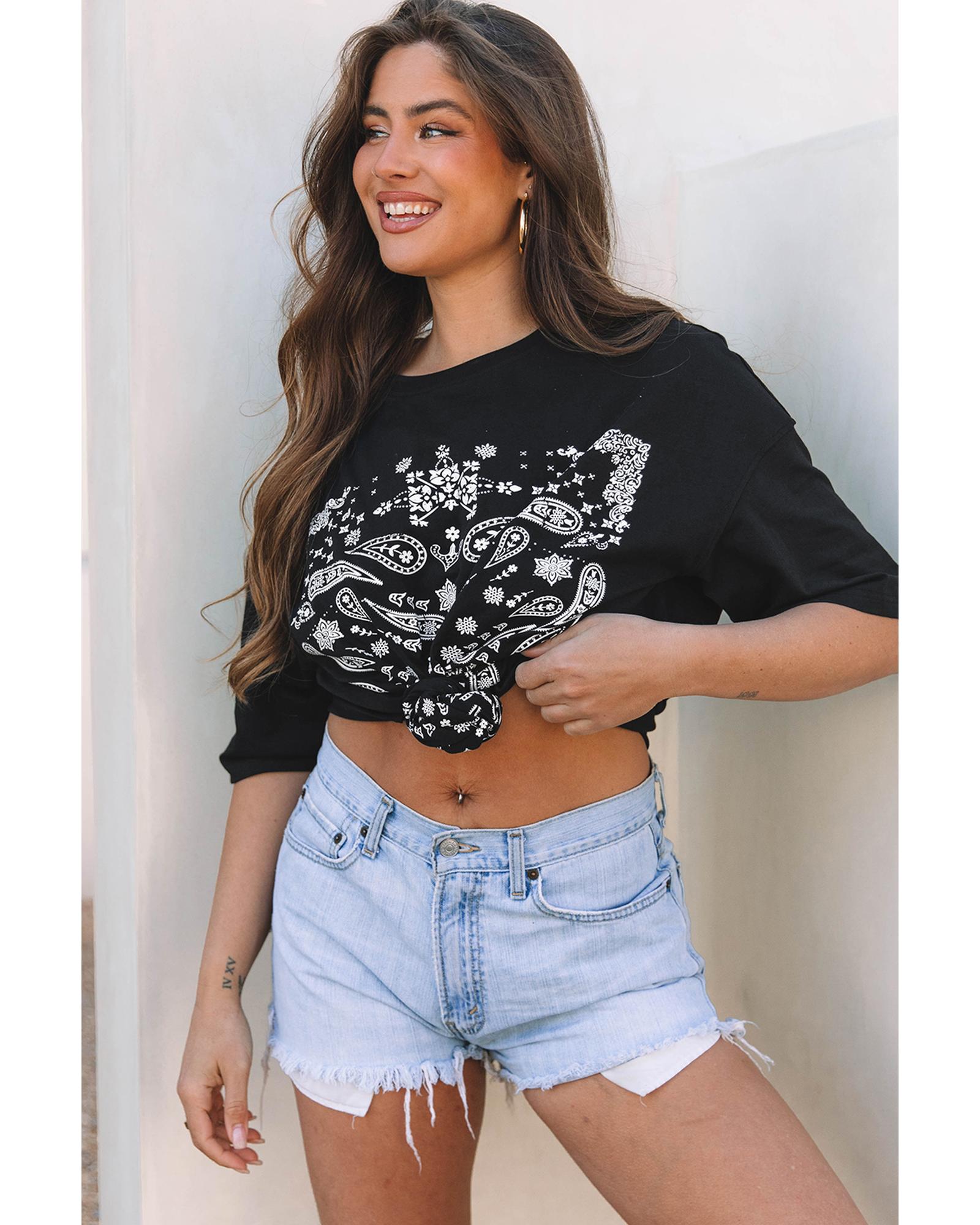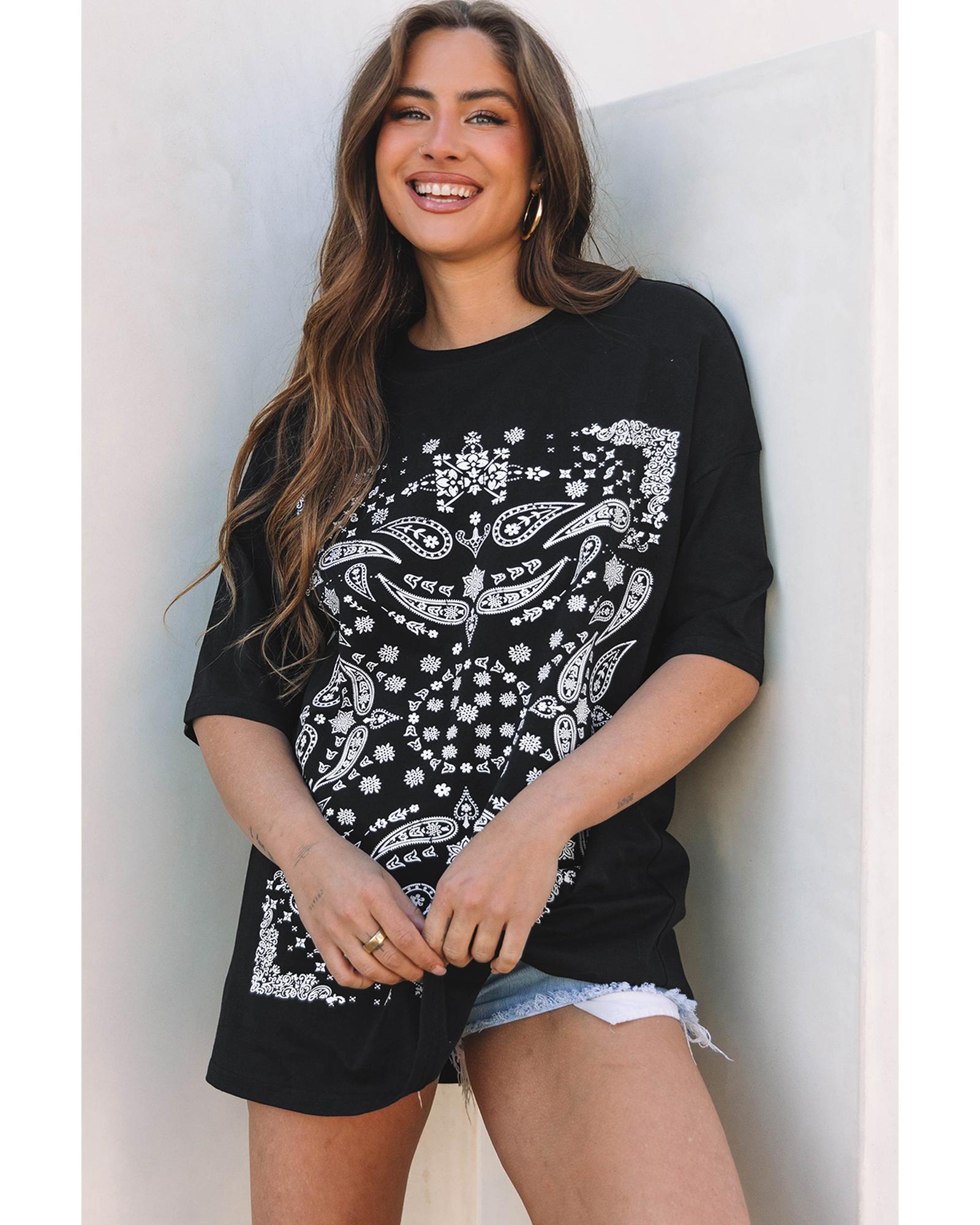 Black Paisley Print Crew Neck Loose Fit Tunic Tee – XL