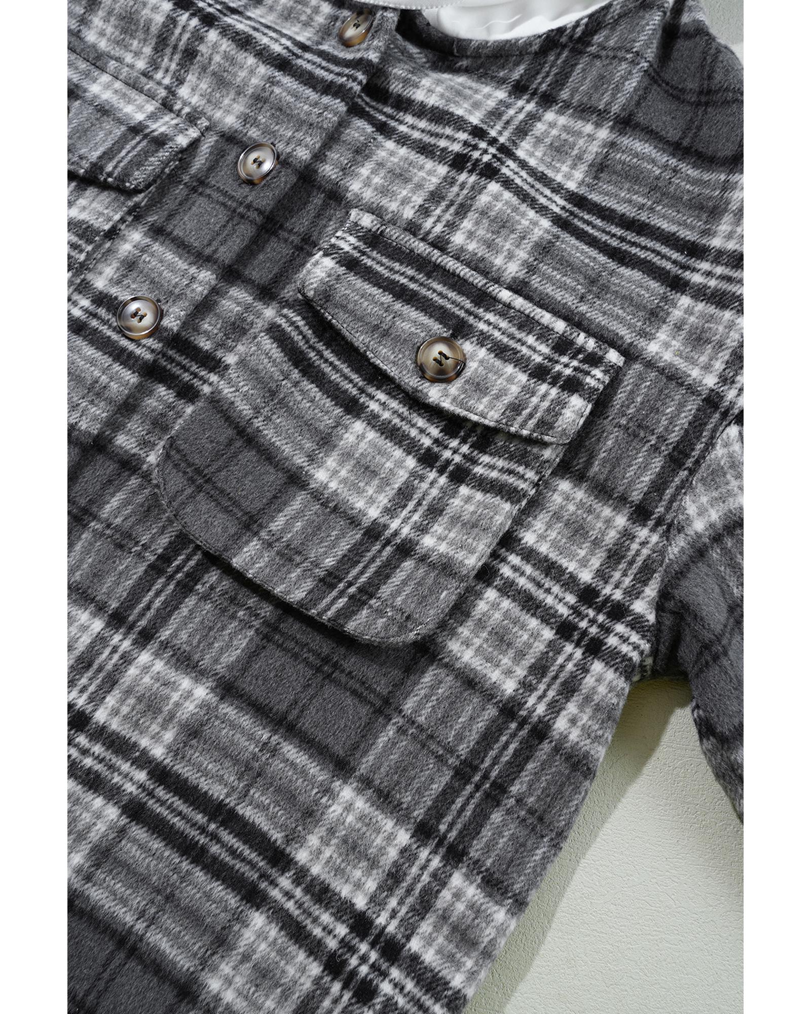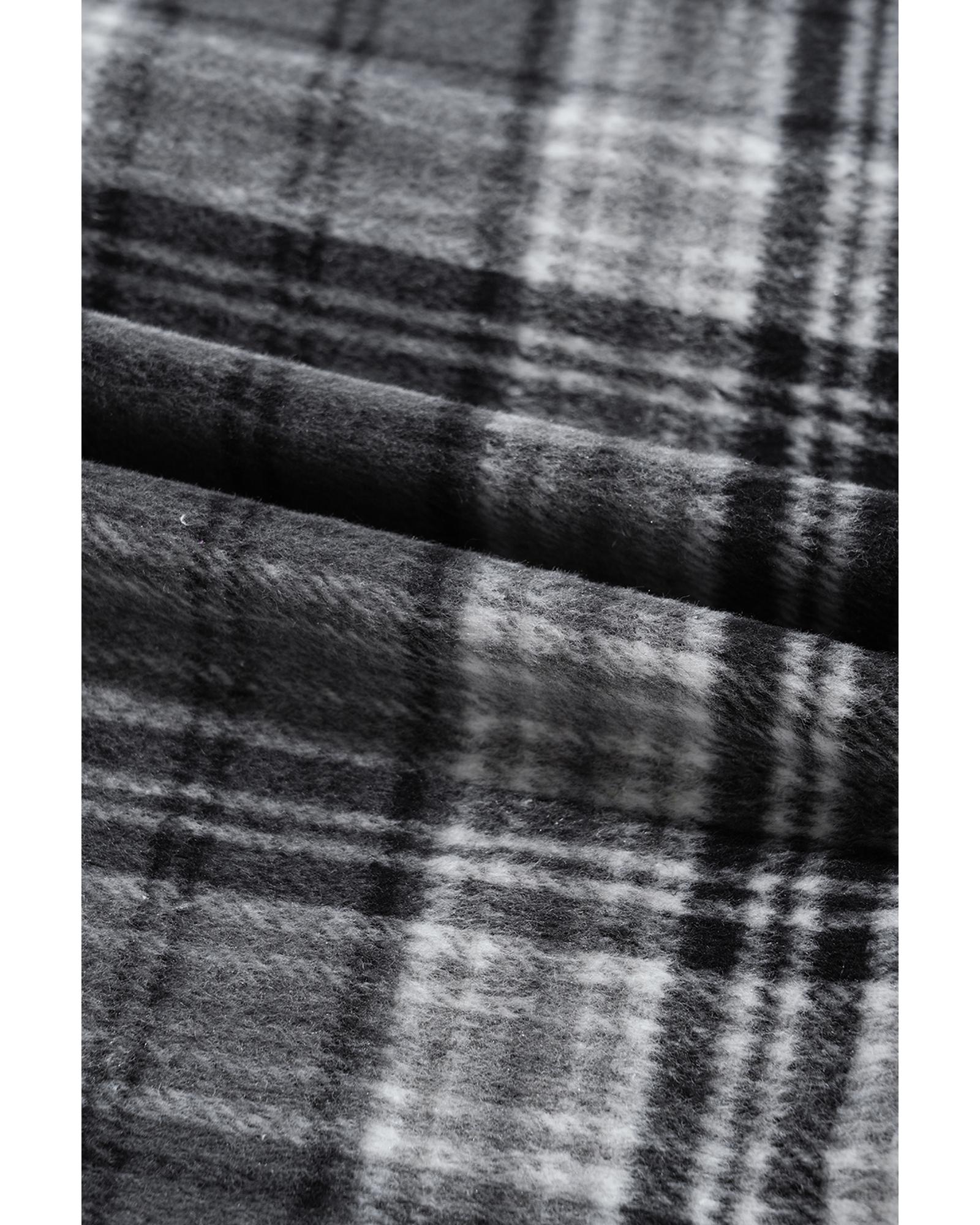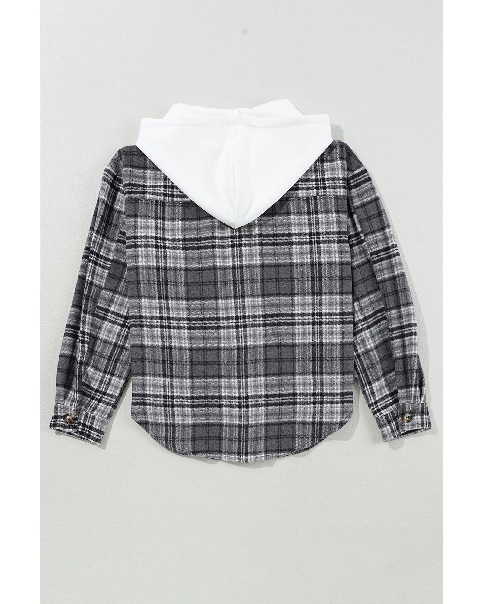 This black plaid print shacket combines a trendy design with practical features, making it a versatile addition to your wardrobe. Its loose fit ensures comfort, while the contrast hood adds a modern touch. The flap pockets provide convenience for everyday wear, making it suitable for layering across multiple seasons.