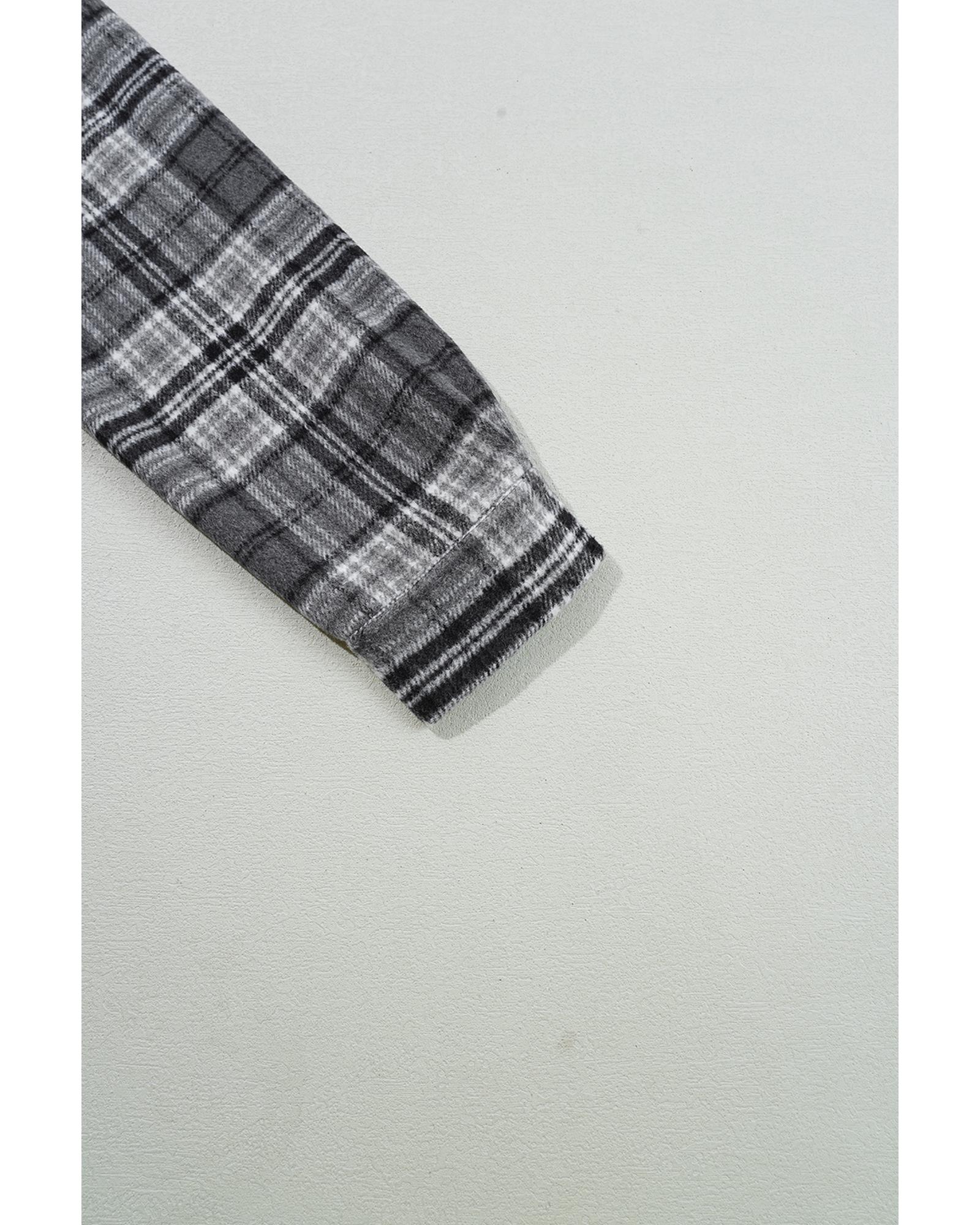 Black Plaid Print Flap Pockets Contrast Hooded Loose Shacket – XL