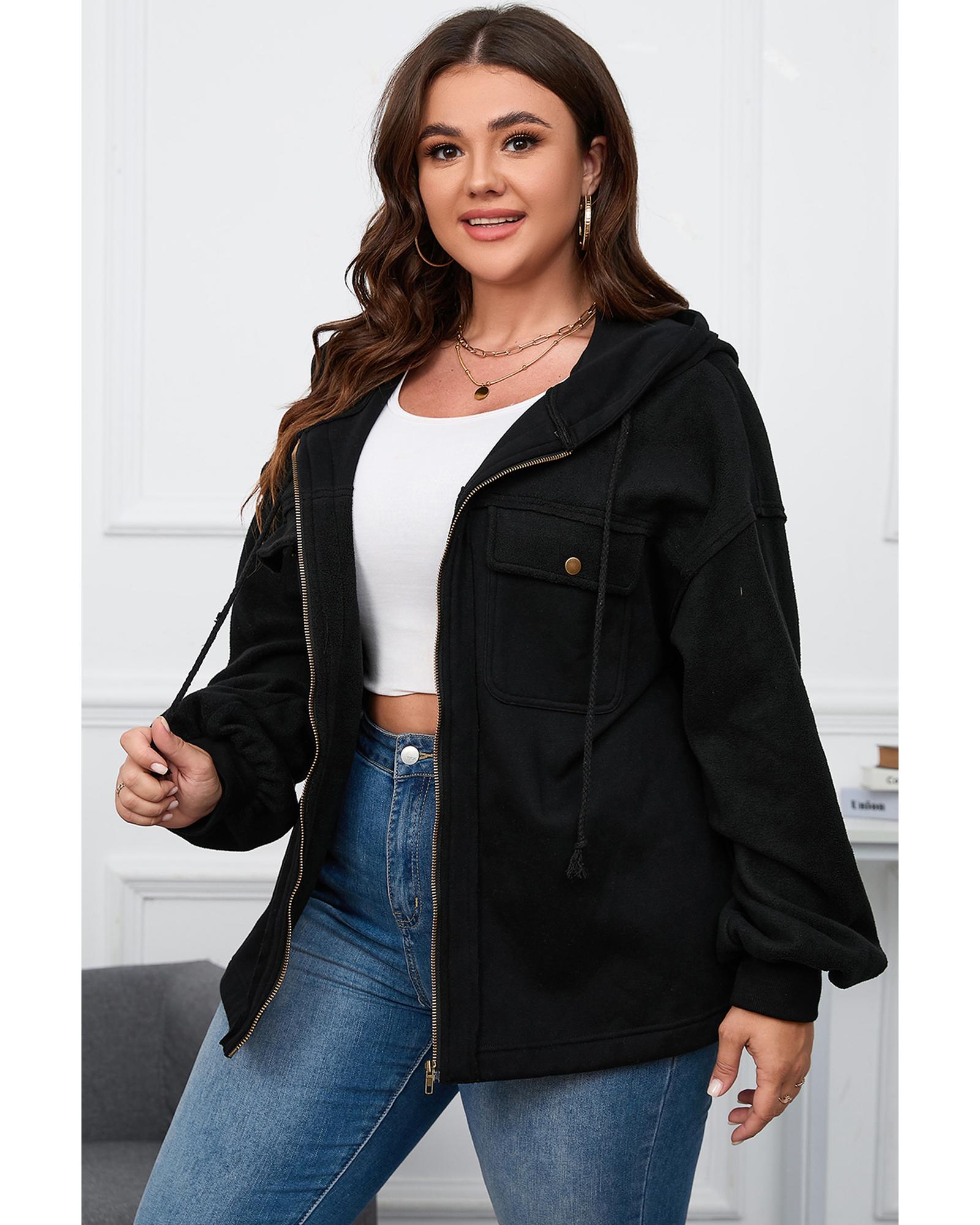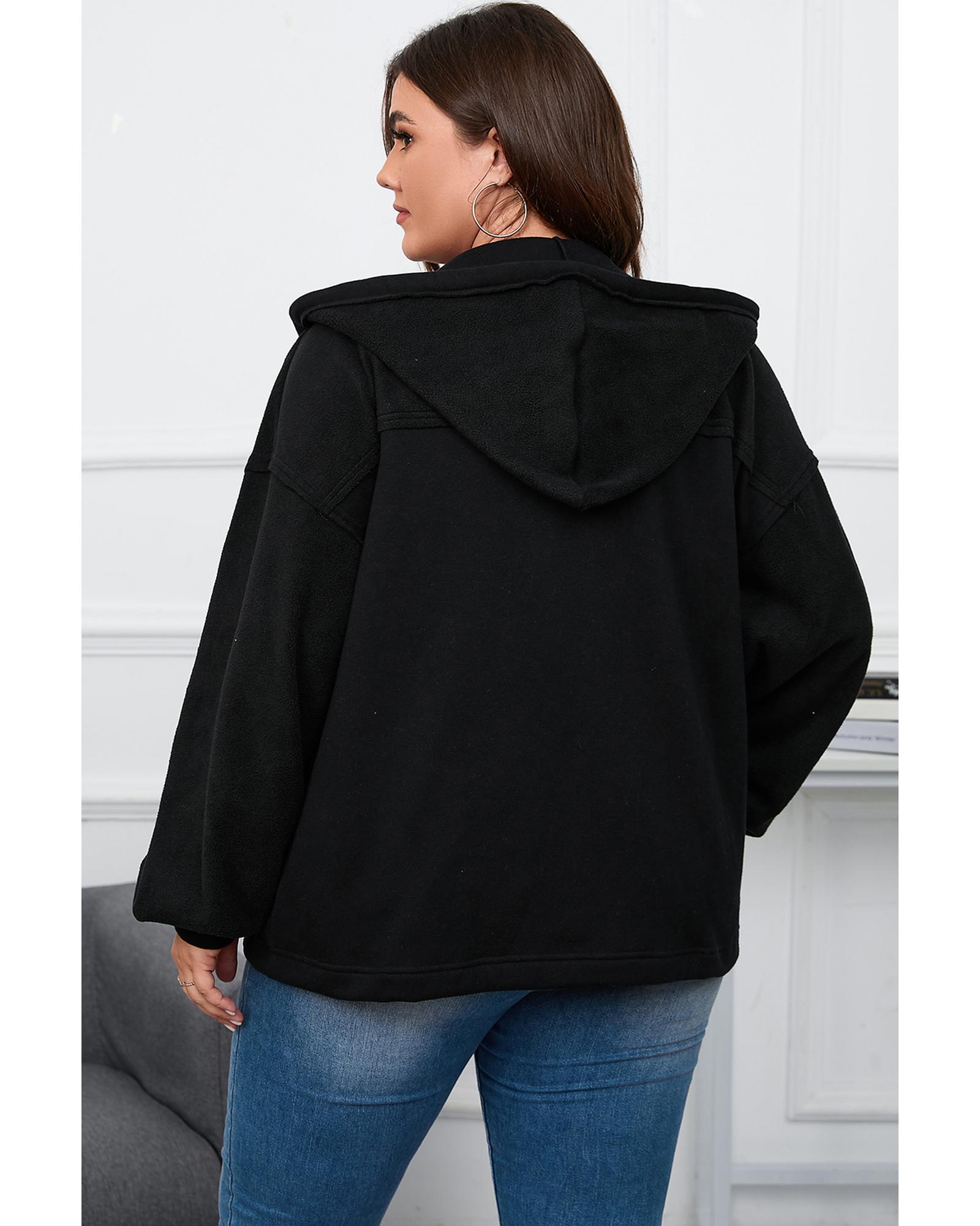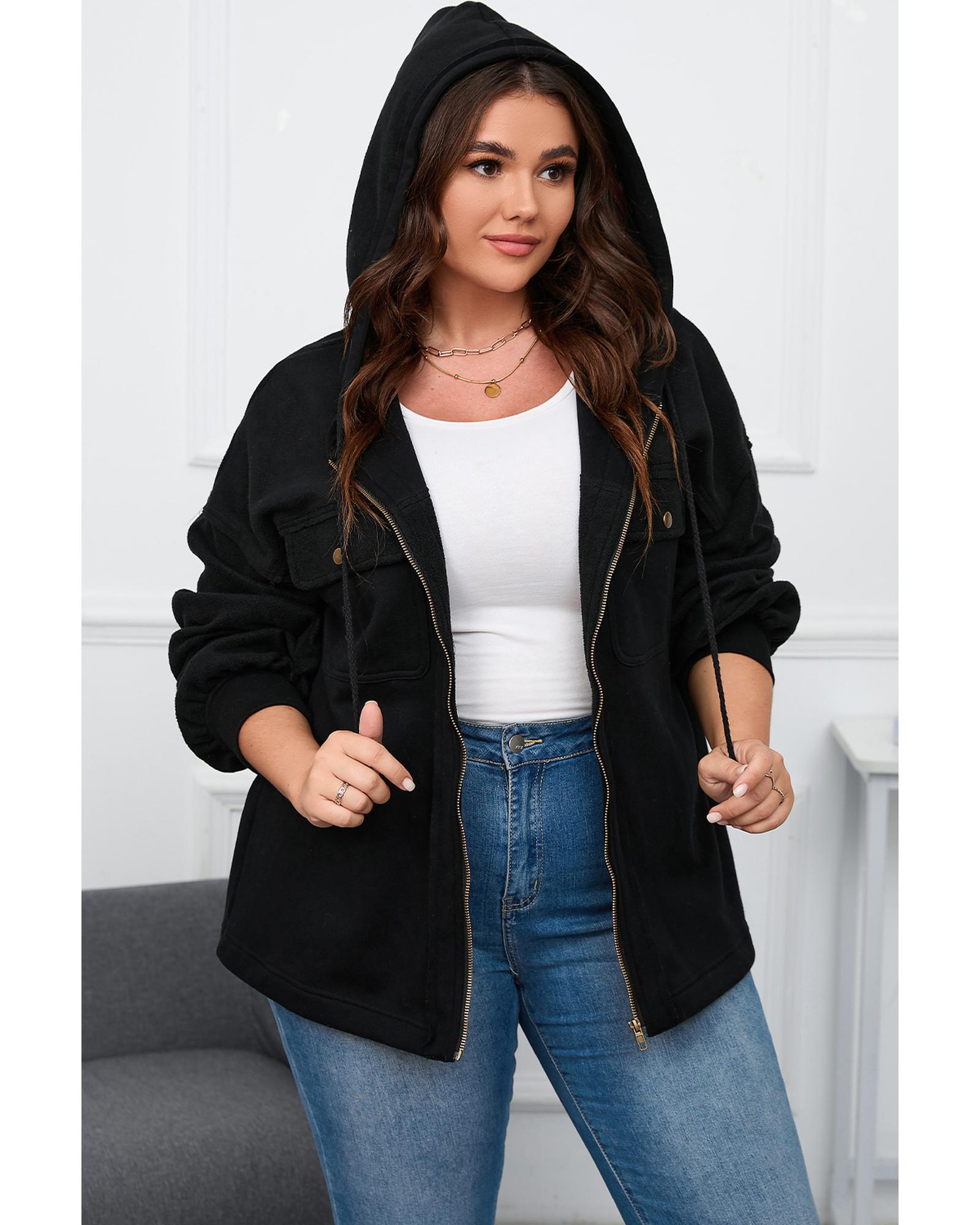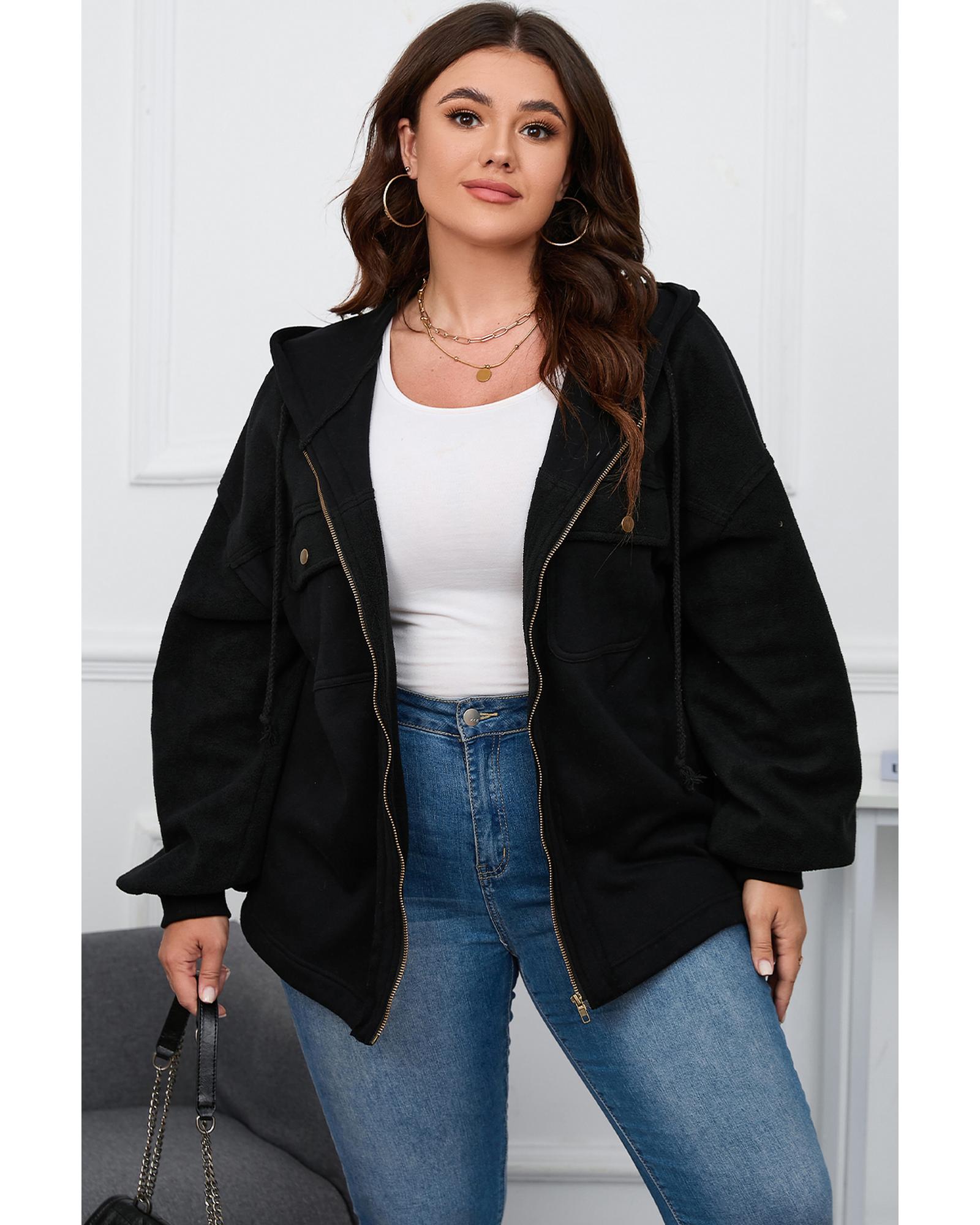 Black Plus Size Bishop Sleeve Zip Up Hooded Jacket – 3X