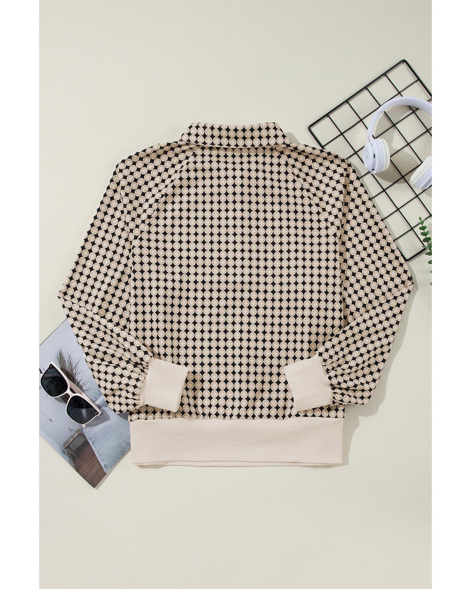 Brown Plus Size Printed Splicing Sleeve Ribbed Trim Sweater - 3X Original price was: $70.99.Current price is: $37.99.