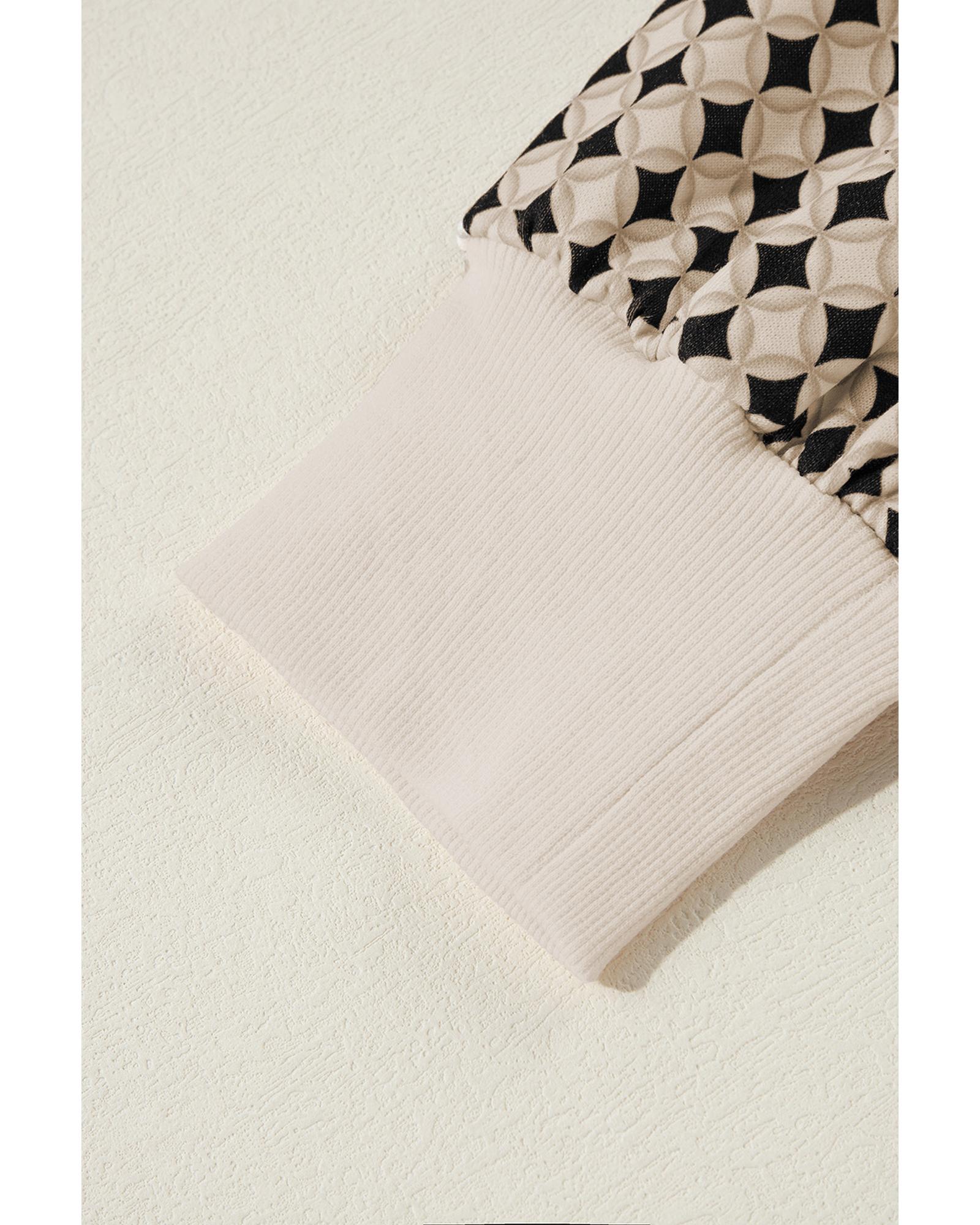Brown Plus Size Printed Splicing Sleeve Ribbed Trim Sweater - 3X