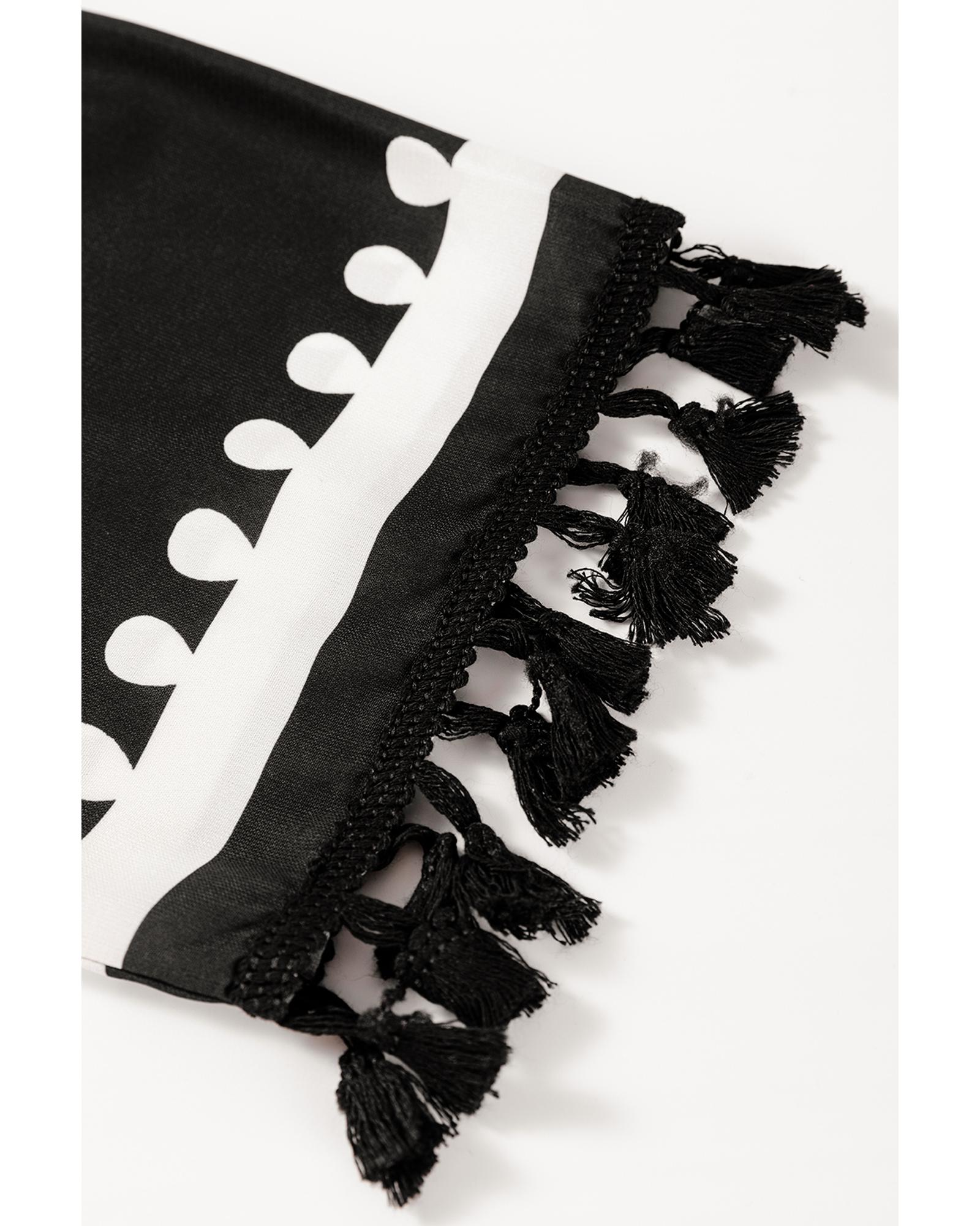 Black Plus Size Western Floral Print Fringed V Neck Dress – 4X