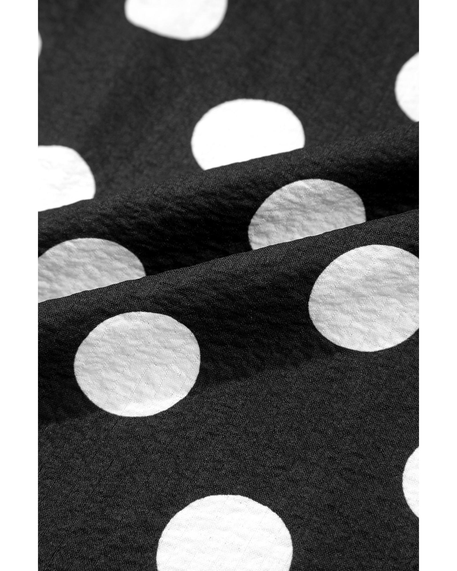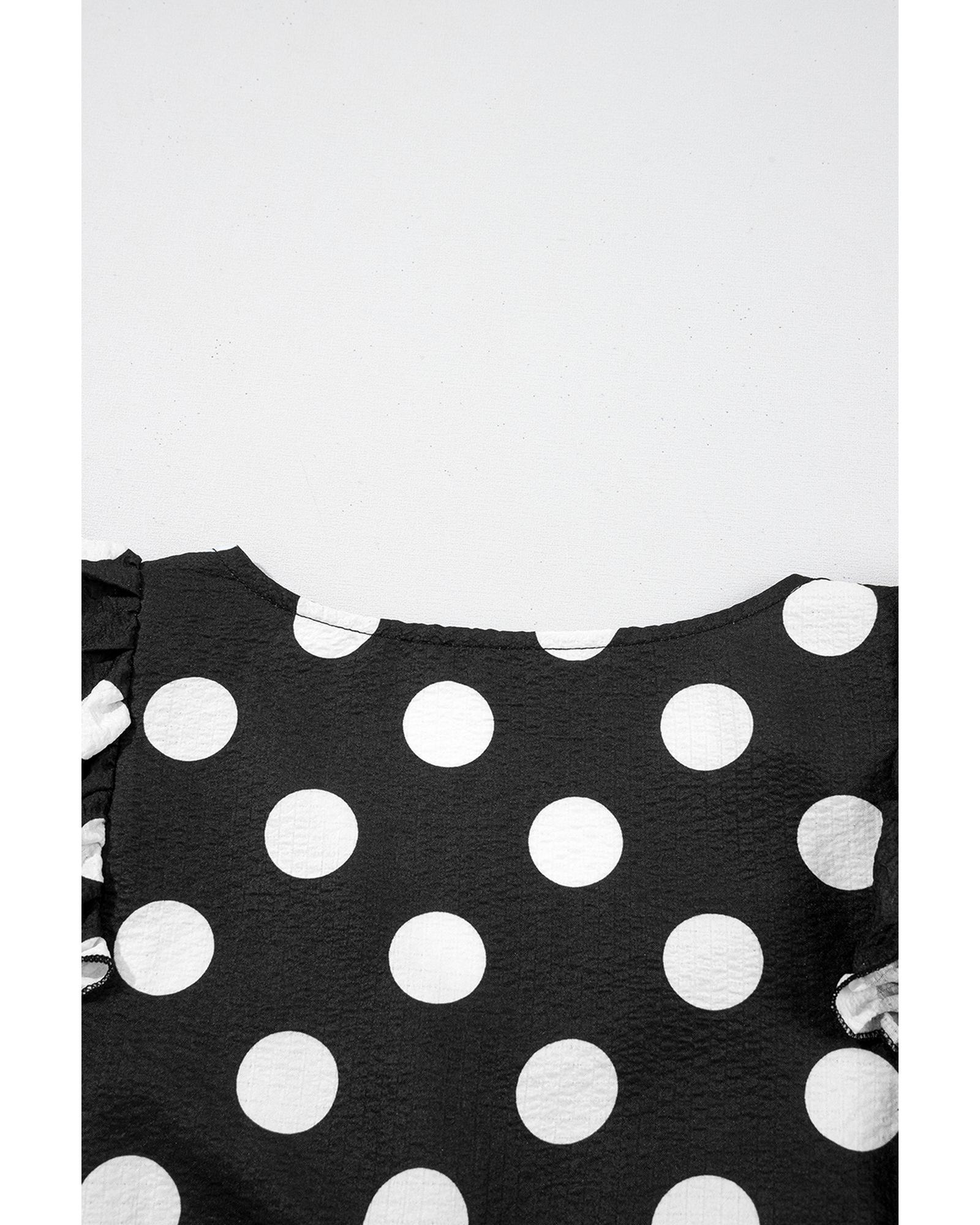 Black Polka Dot Print Ruffled Sleeve V Neck Blouse – M