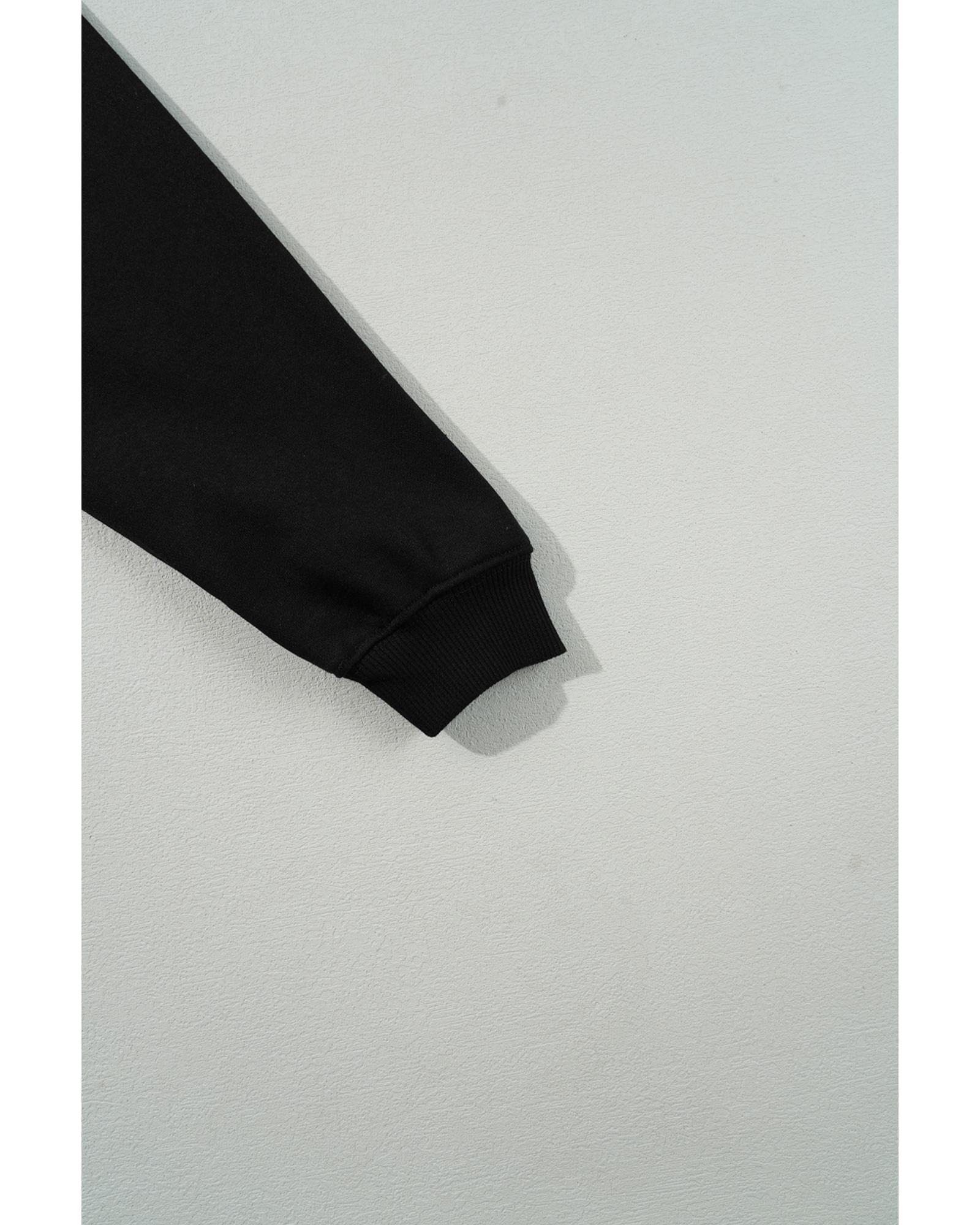 Black Zipped Neck Pullover Drop Shoulder Sweatshirt - L