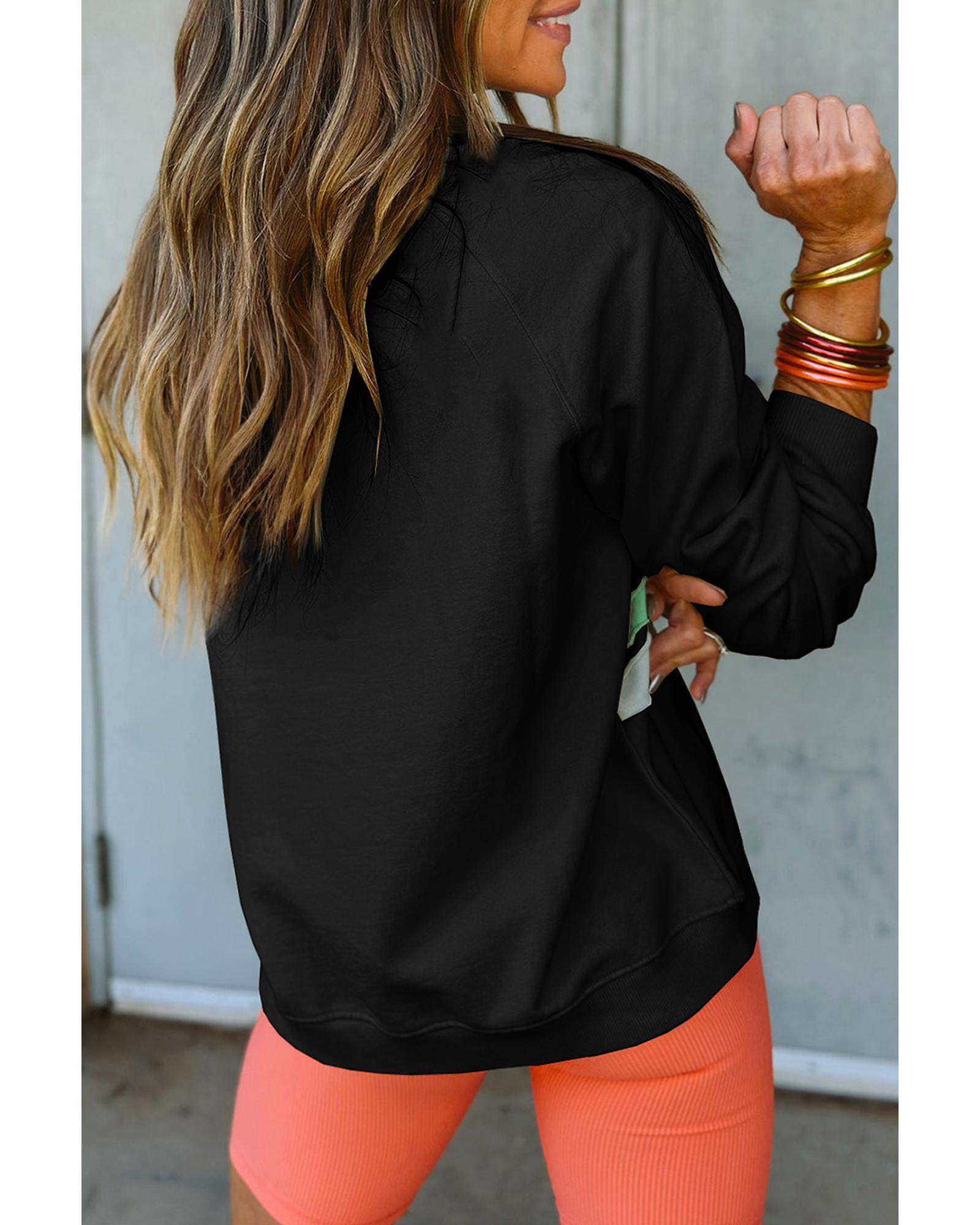 Black Rainbow Raglan Sleeve Crew Neck Plus Size Sweatshirt – 3X