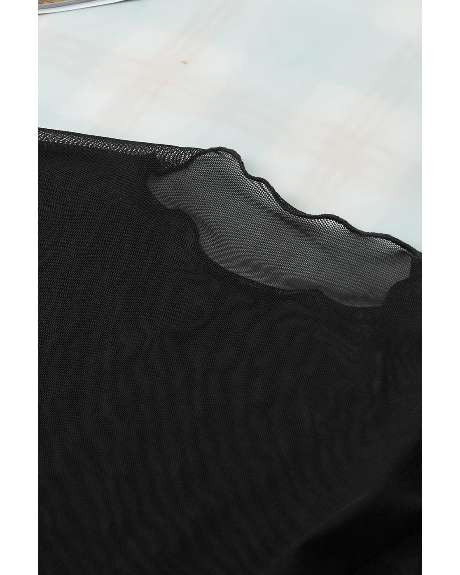 Black Rhinestone Sheer Mesh Slim Fit Long Sleeve Top – L