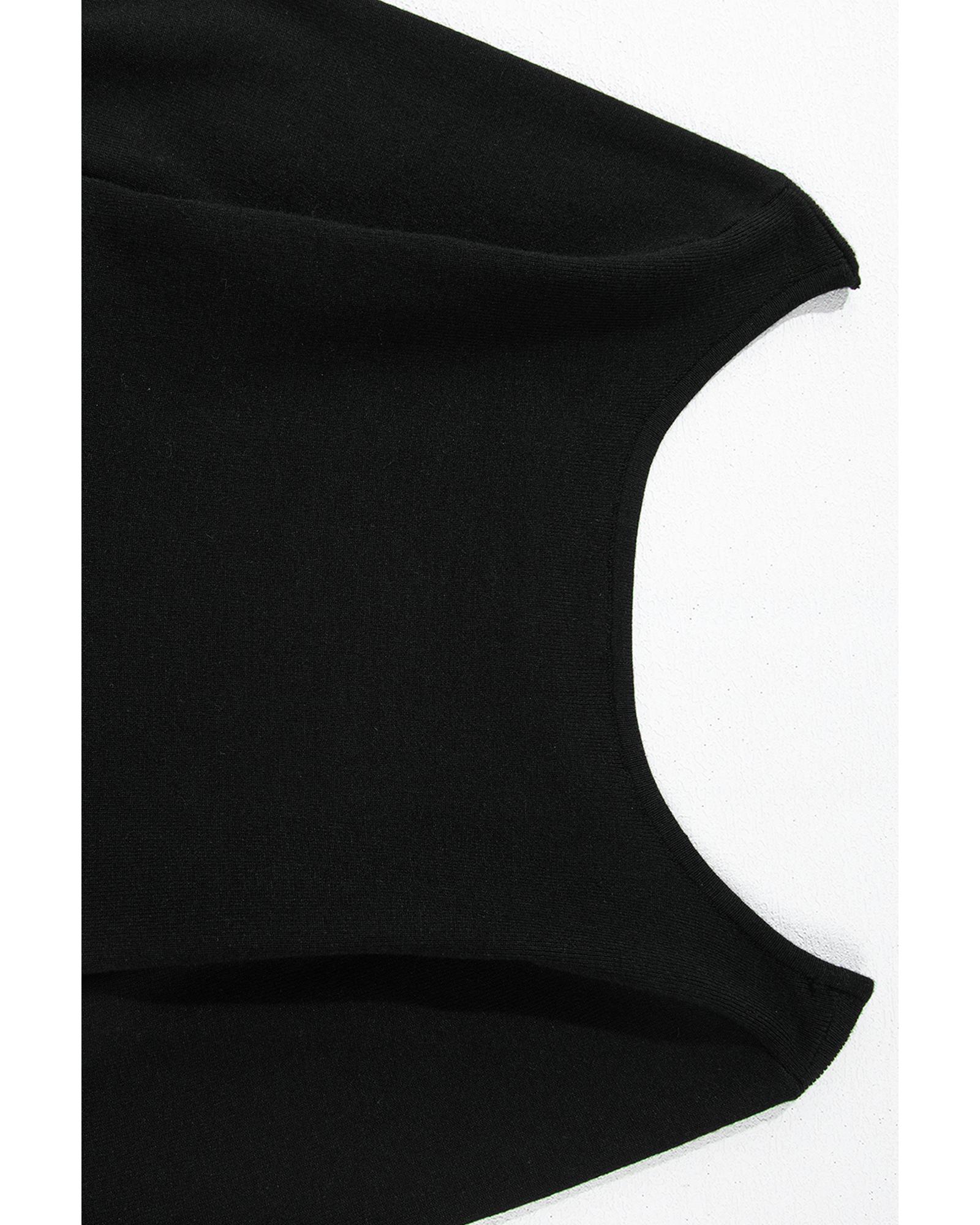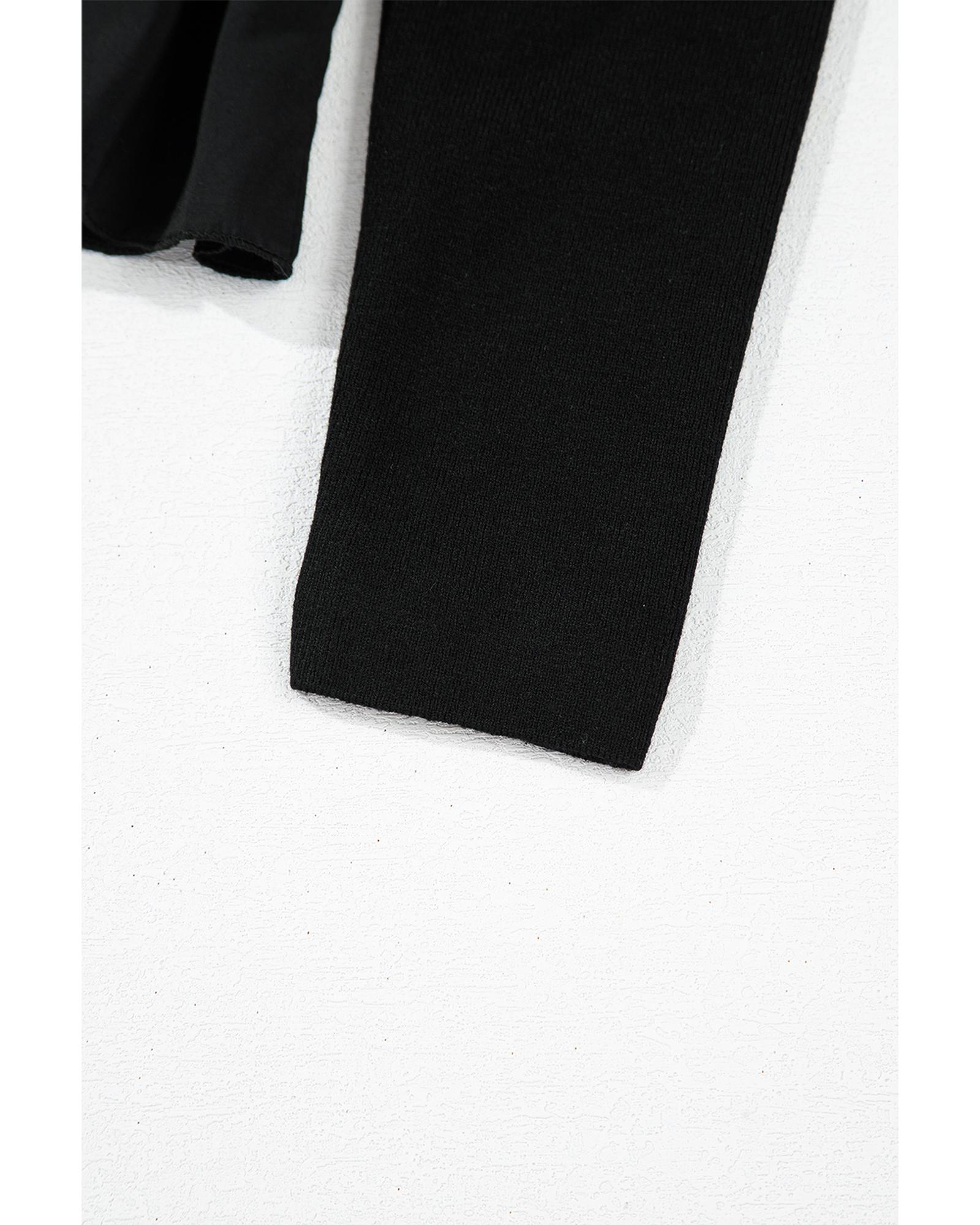 Black Ribbed Knit Long Sleeve Scoop Neck Peplum Patchwork Top – M