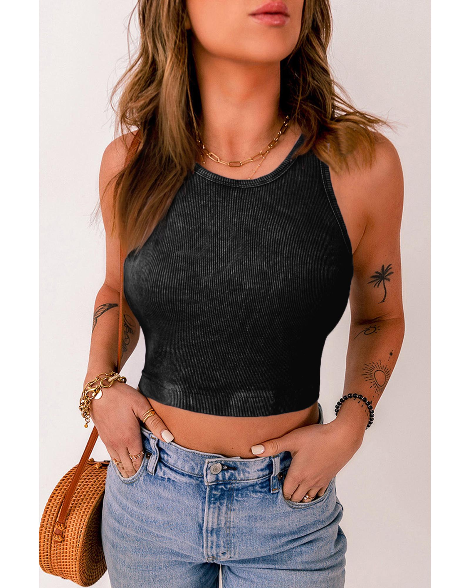 Black Ribbed Mineral Wash Racerback Cropped Tank Top – M