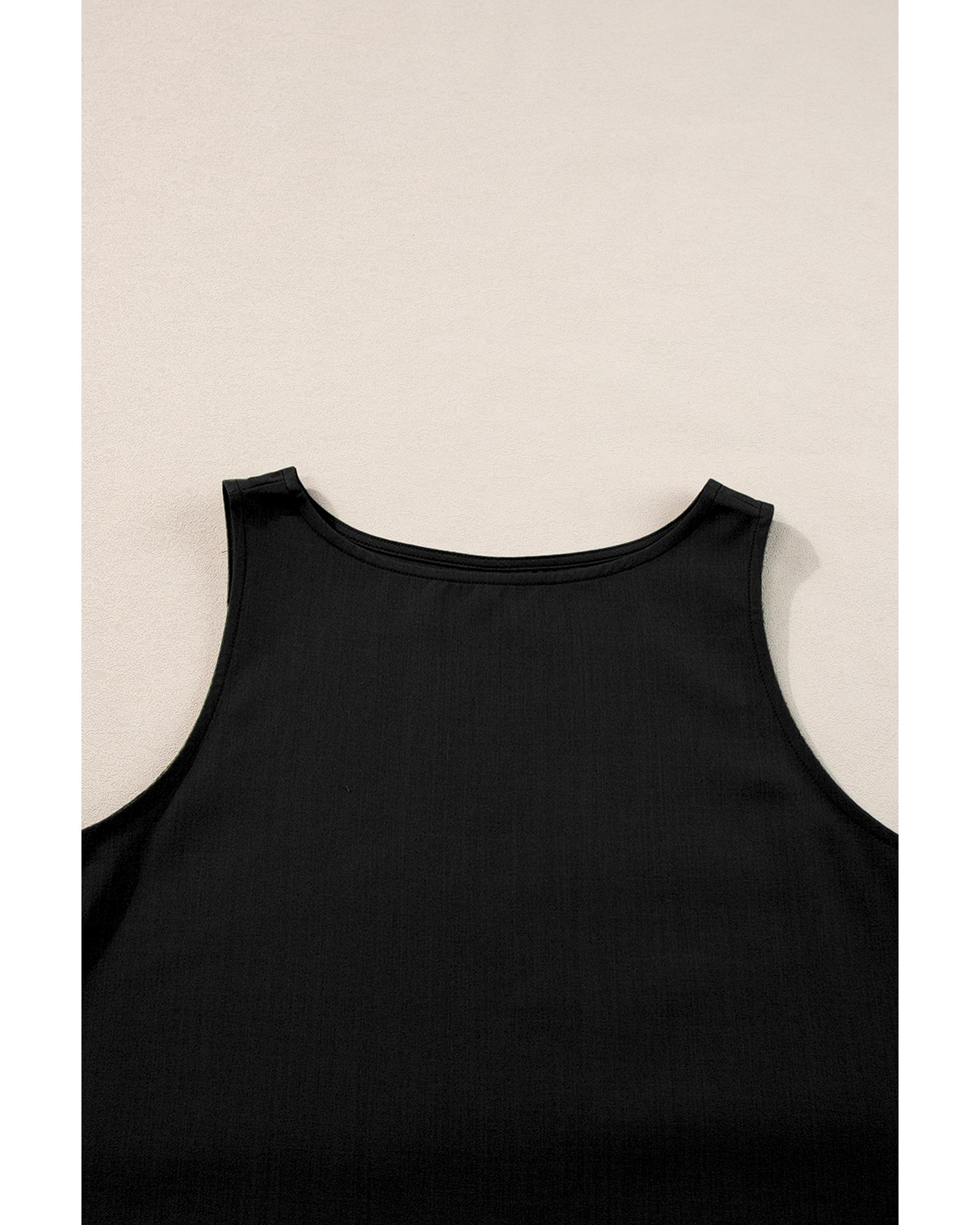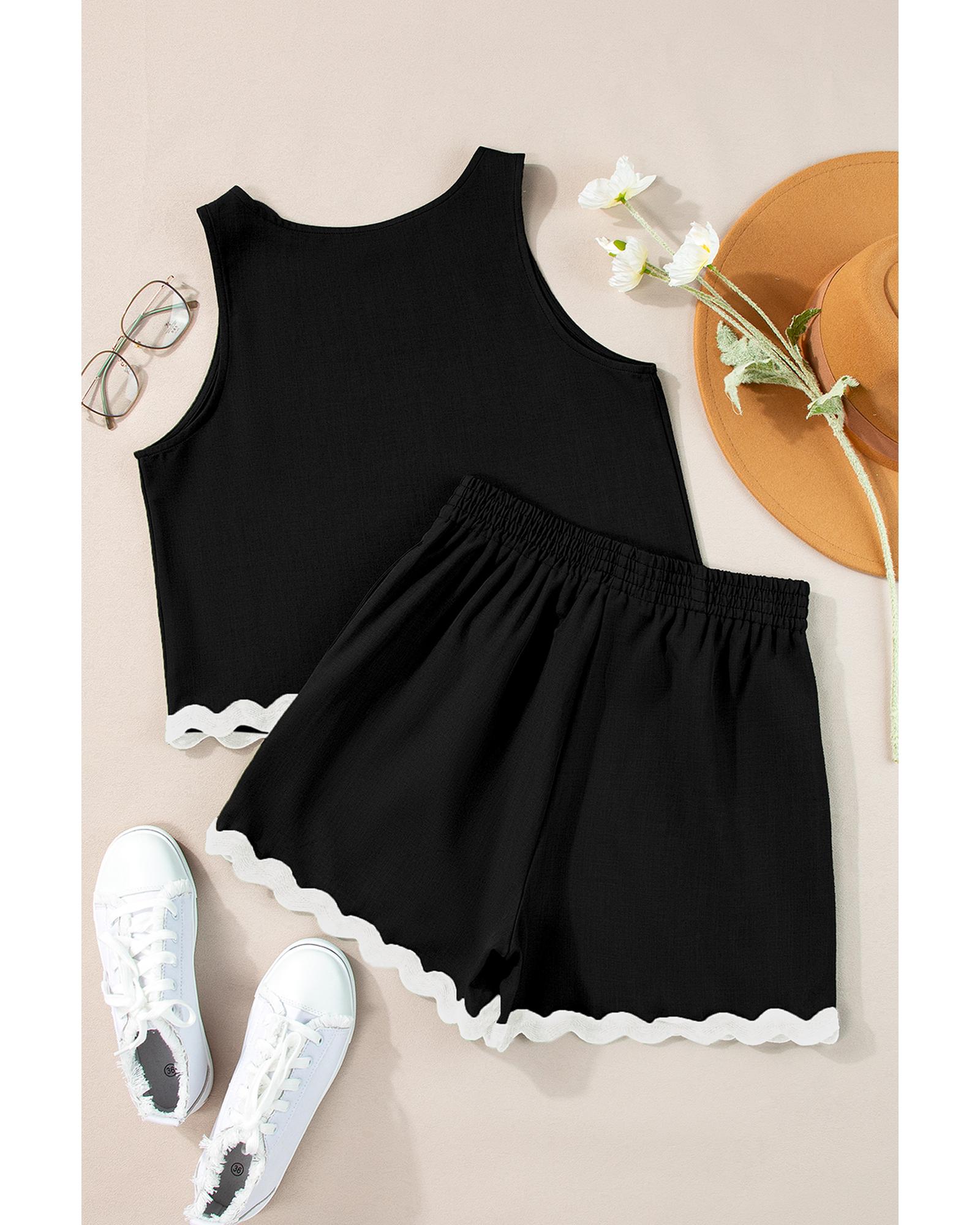 Black Ricrac Trim Tank Top Elastic Waist Shorts Set – S
